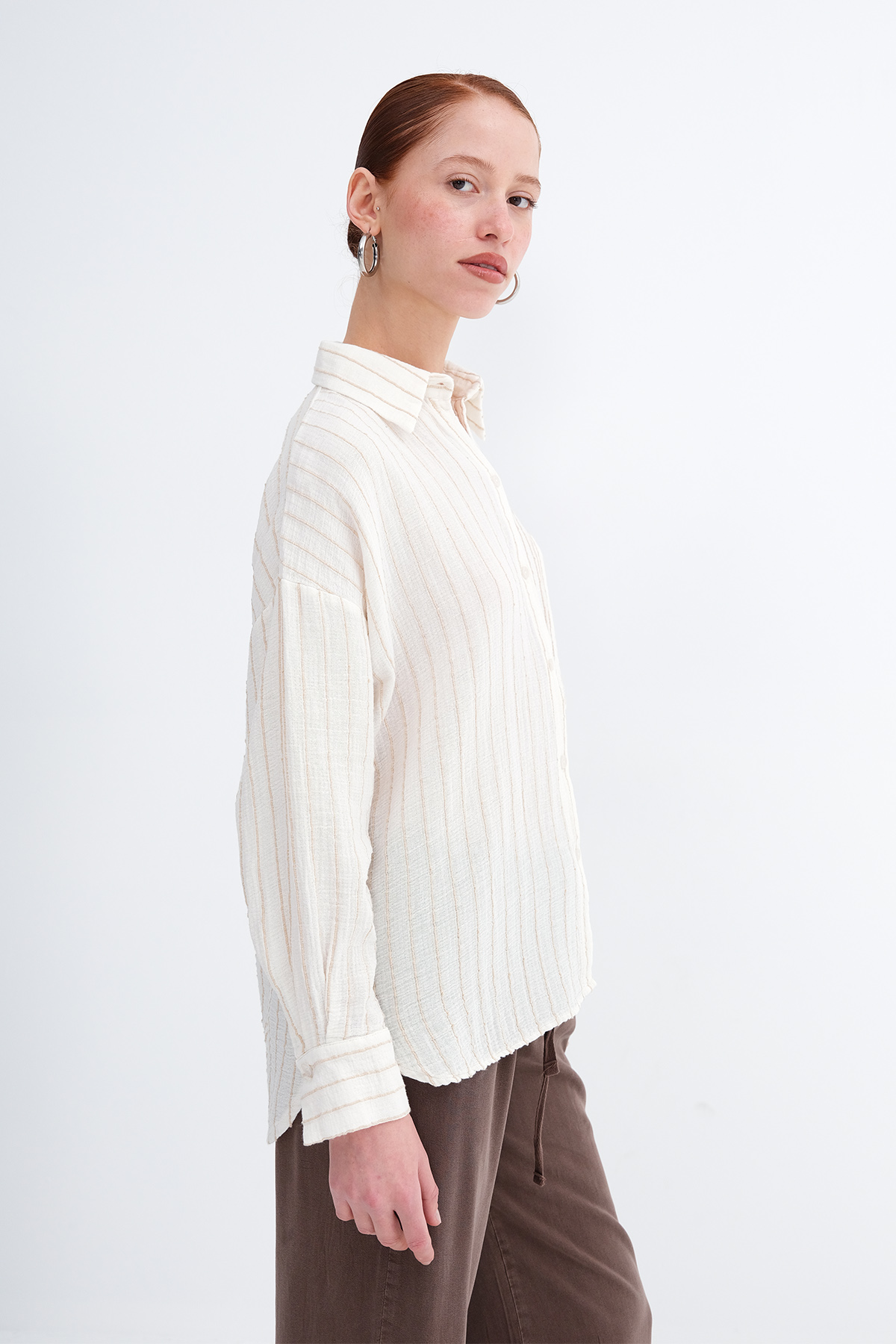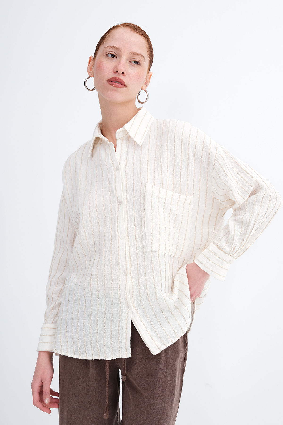 * Gömlek yaka, uzun kollu,