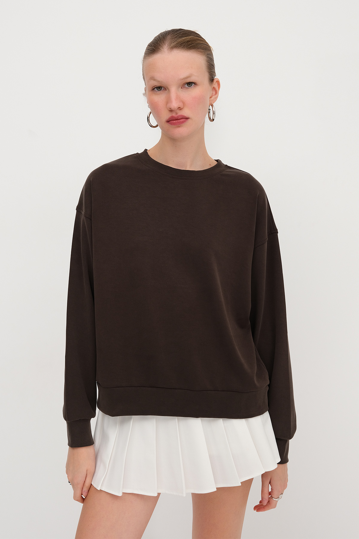 * Bisiklet yaka, uzun kollu, düşük omuz, düz renk,