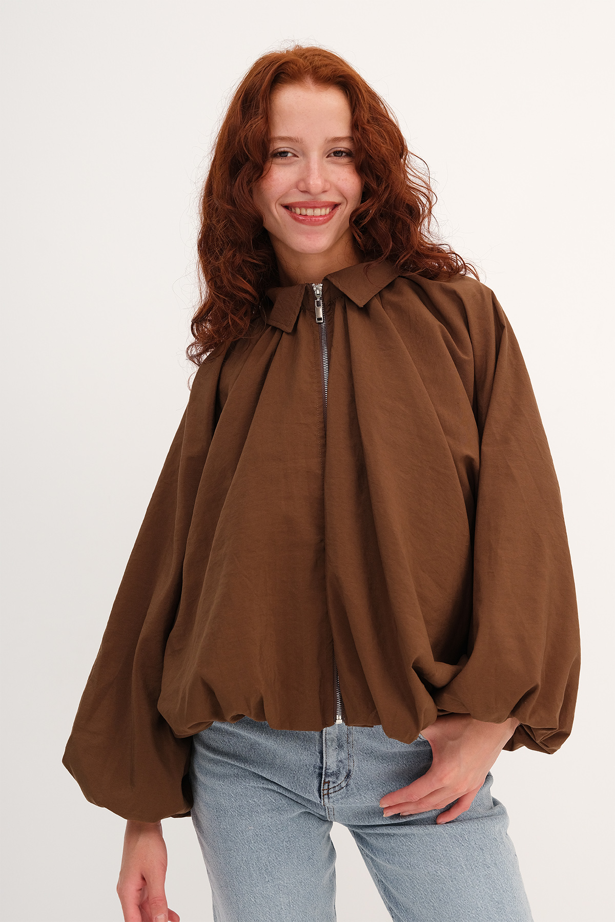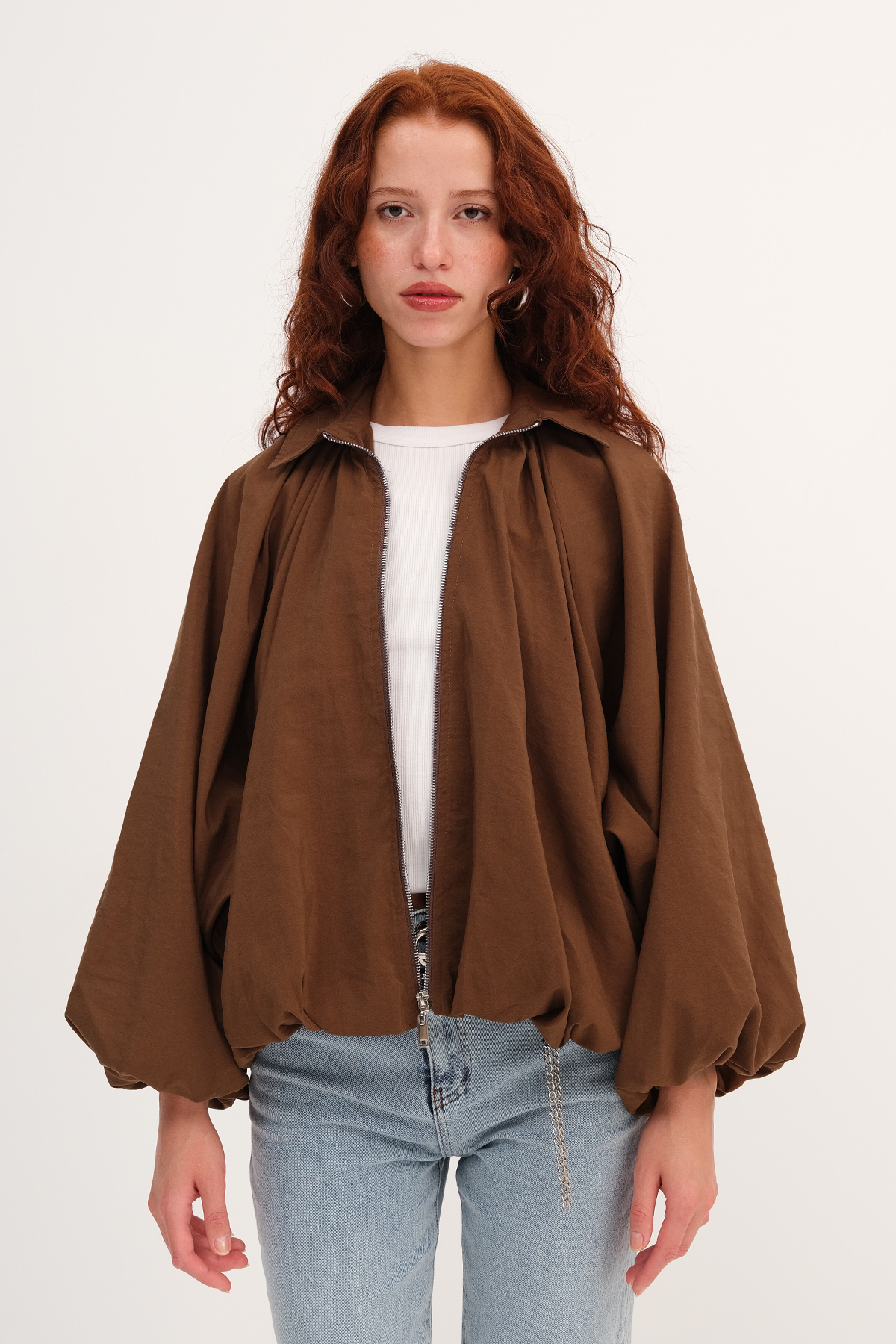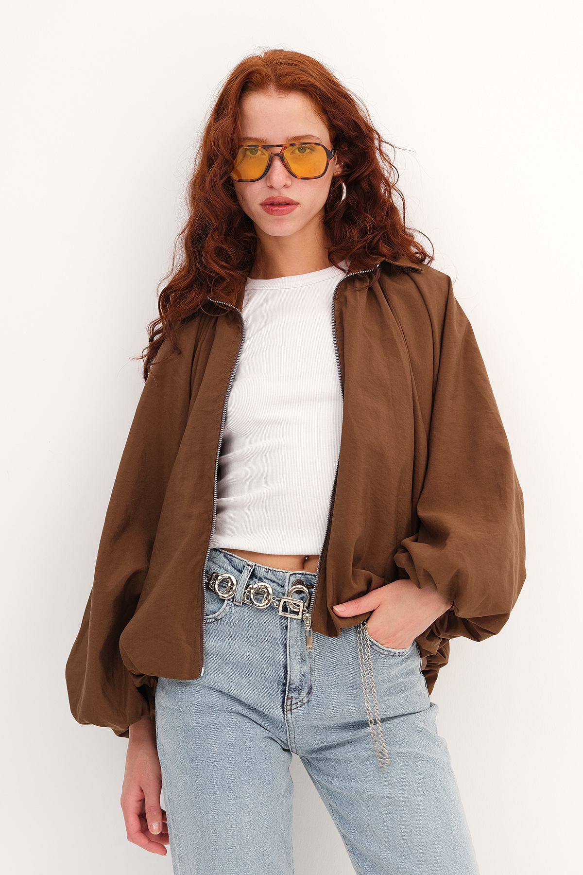 * Polo yaka, uzun kollu,* Düz renk, cepli,* Oversize kalıp, astarlı,* Büzgülü ince bomber ceket,* Ürün içeriği: %100 Polyester* Manken üzerindeki ürün standart bedendir.* Numune beden ölçüleri: Boy: 63 cm Kol boyu: 68 cm (1-3 cm değişiklik gösterebilir)* Kol boyu omuzdan ölçülmüştür.* Ürün çekimlerinde renkler, ışık farklılığından dolayı değişkenlik gösterebilir.