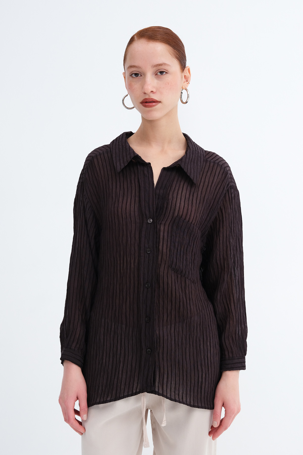 * Gömlek yaka, uzun kollu,