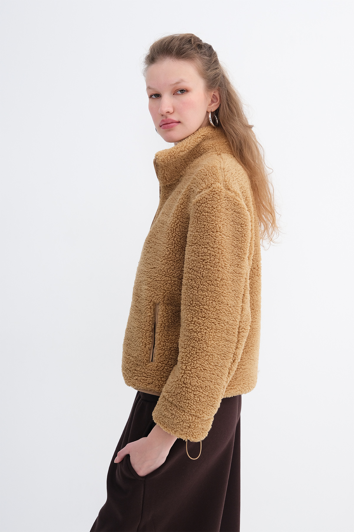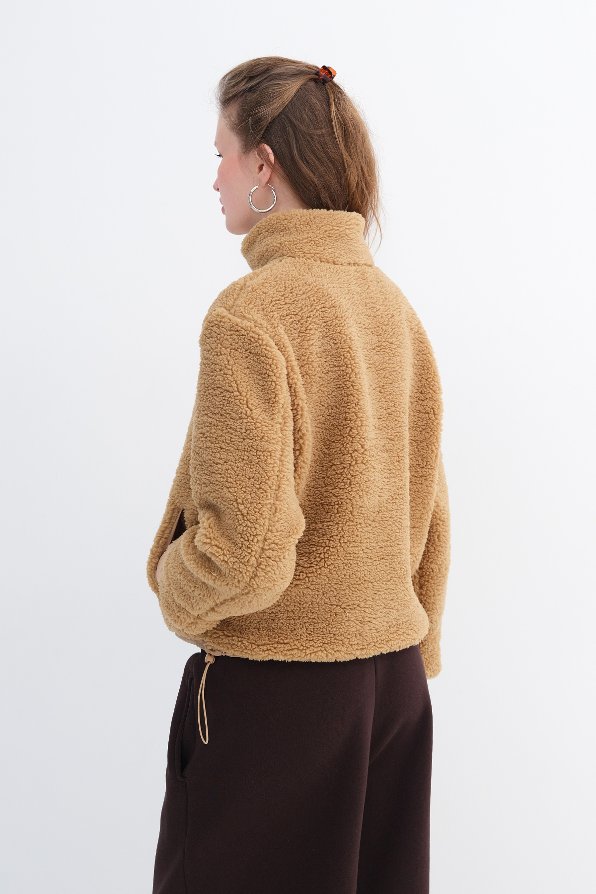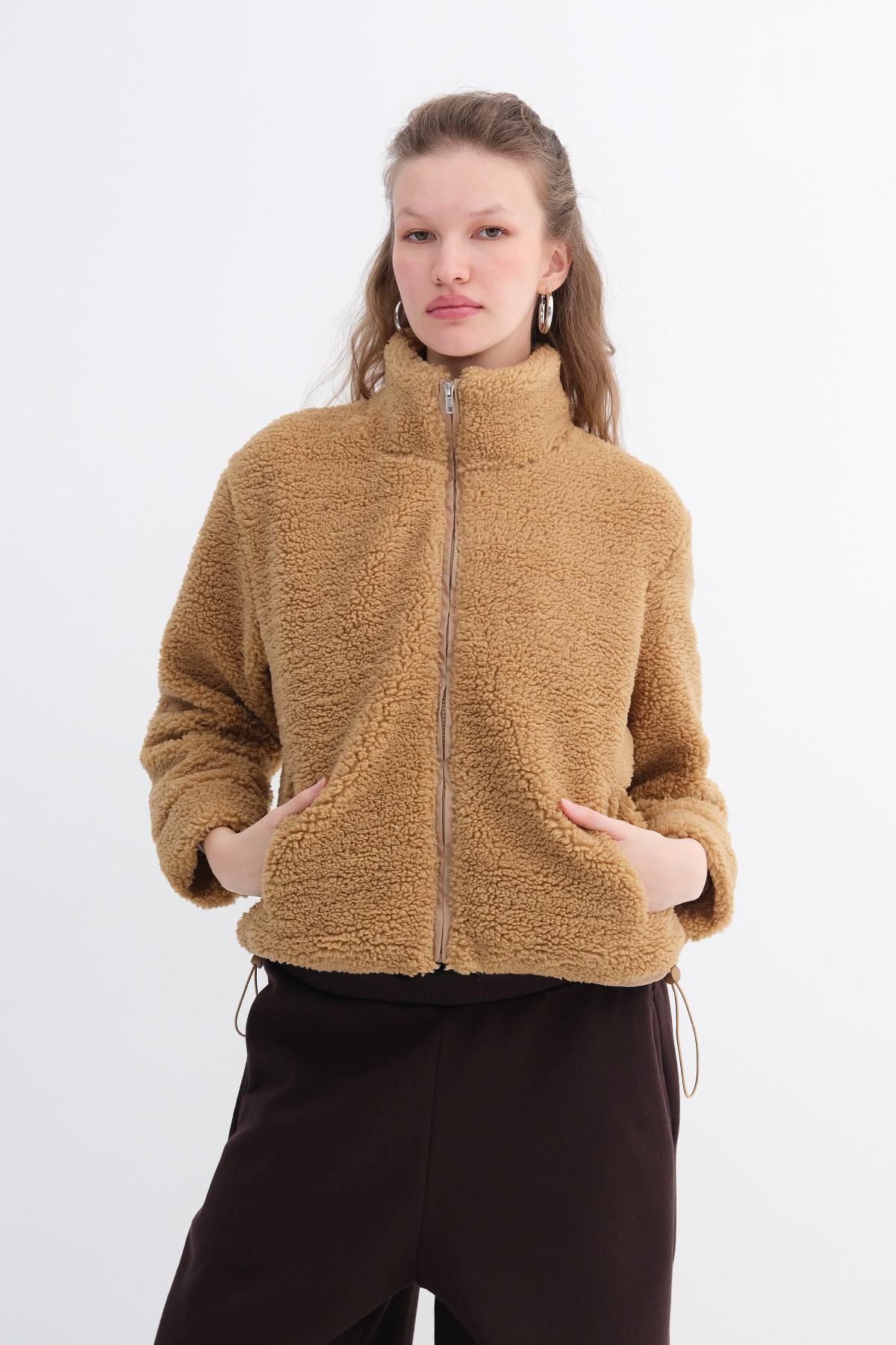 * Etek ucu ayarlanabilir askılı, peluş mont,