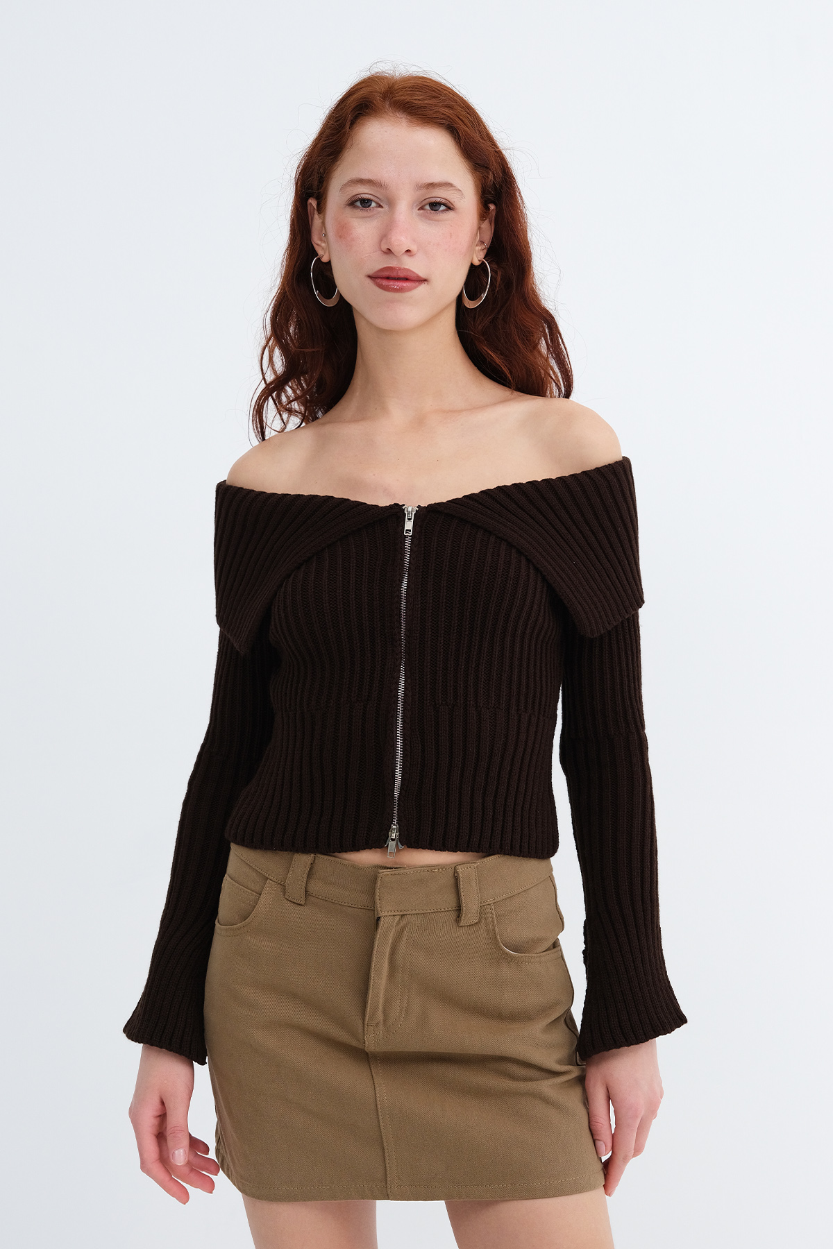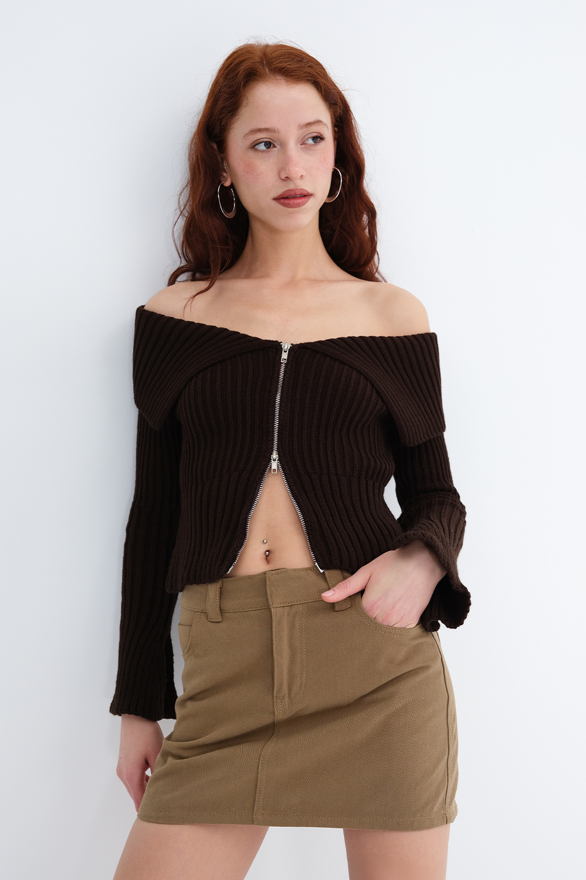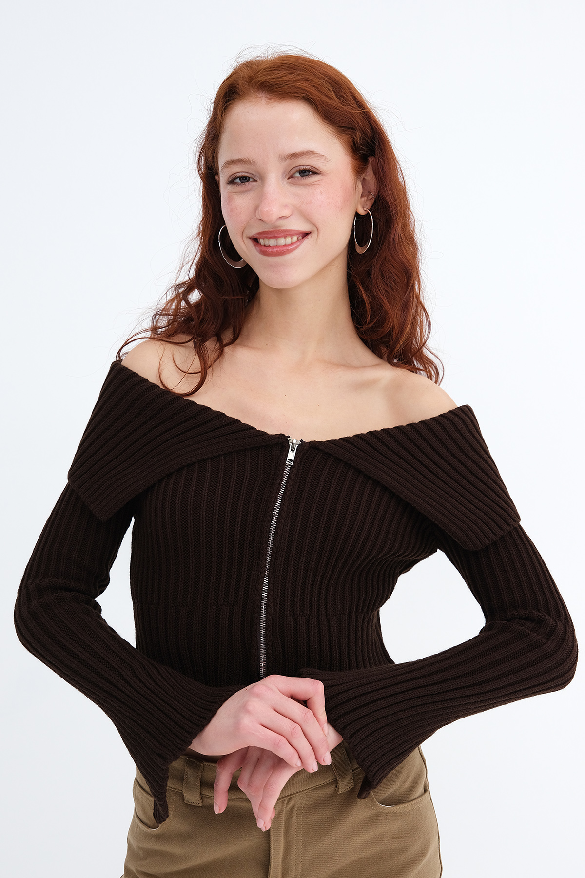* Fermuarlı , vücudu saran, triko hırka,