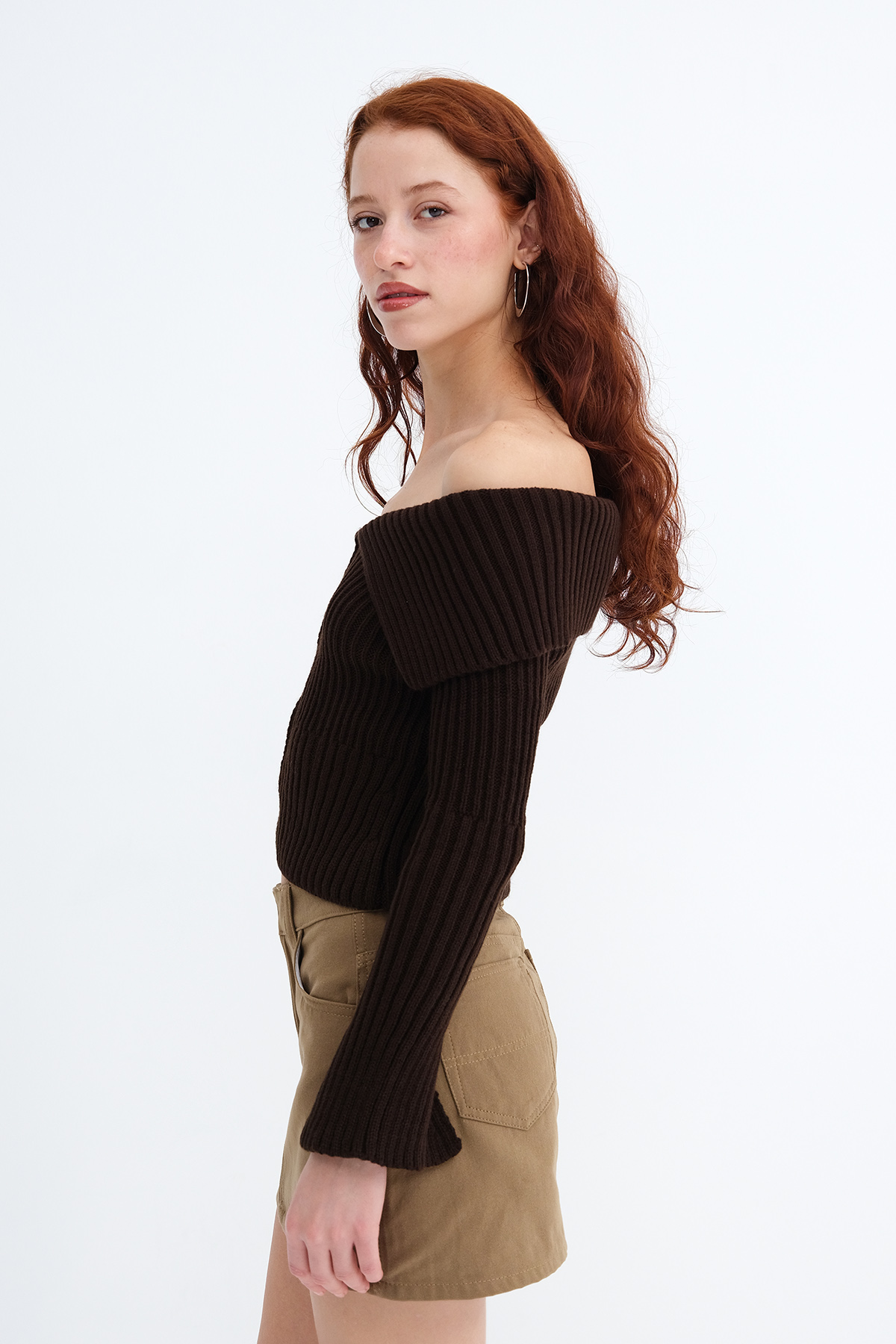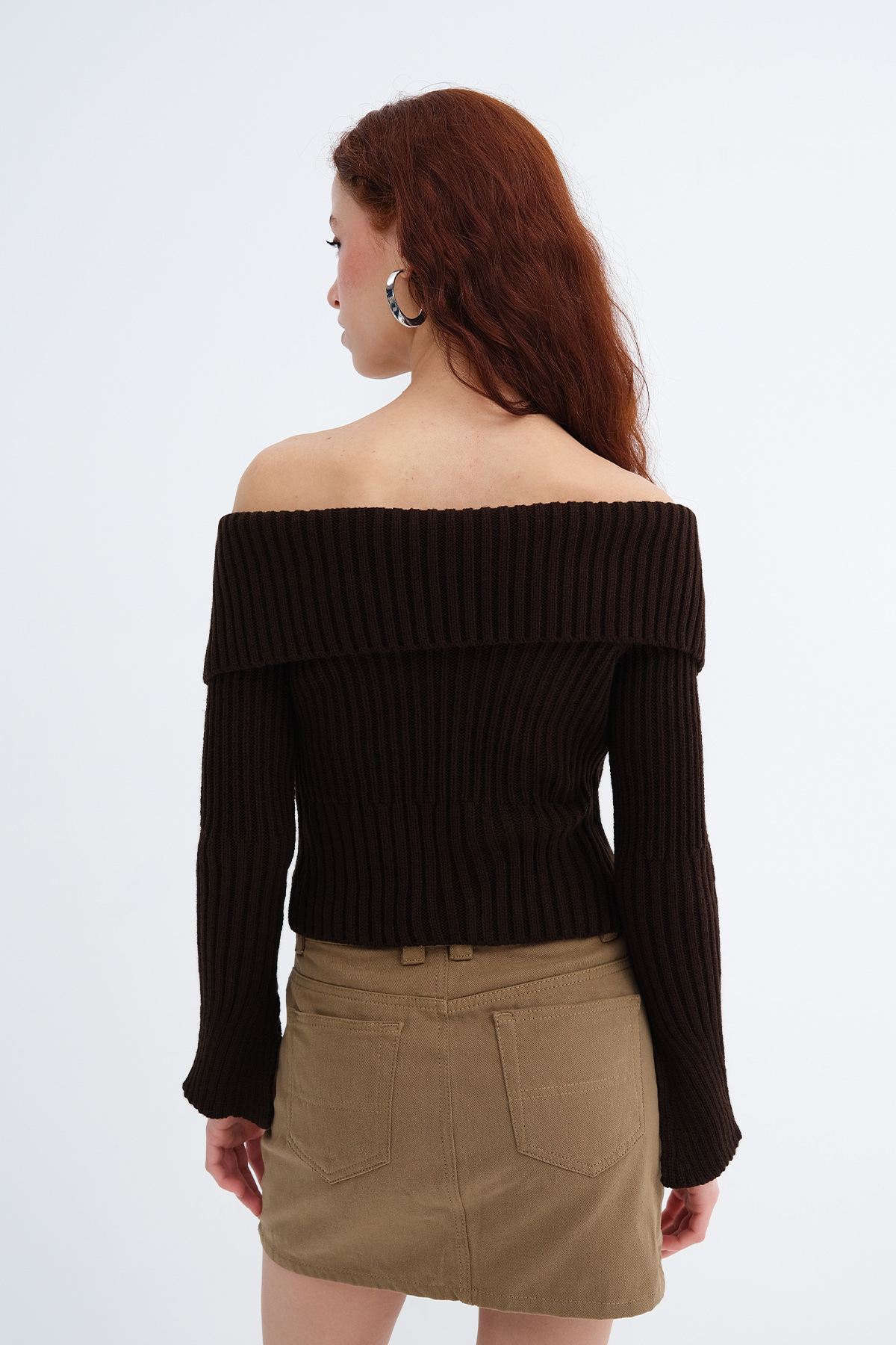 * Kayık yaka, uzun kollu,