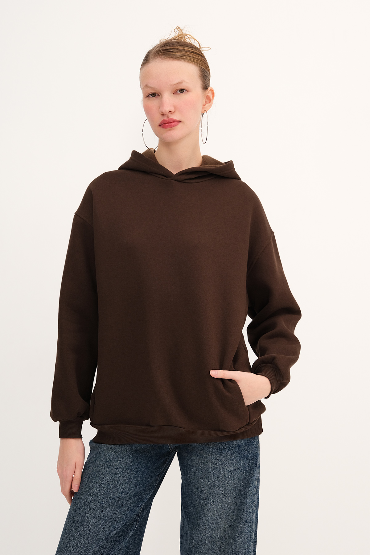 * Kapüşonlu, kapüşonu tek katlı,* Uzun kollu, düşük omuz,* Düz renk, kanguru cepli,* Şardonlu, rahat kalıp sweatshirt,* Ürün içeriği:%55 Pamuk %45 Polyester,* Manken üzerindeki ürün 36/S bedendir.* Numune Beden Ölçüleri: Boy: 65 cm Göğüs: 100 cm Kol Boyu: 50 cm (1-3 cm arasında değişiklik gösterebilir)* Ürün çekimlerinde renkler, ışık farklılıklarından dolayı değişkenlik gösterebilir.