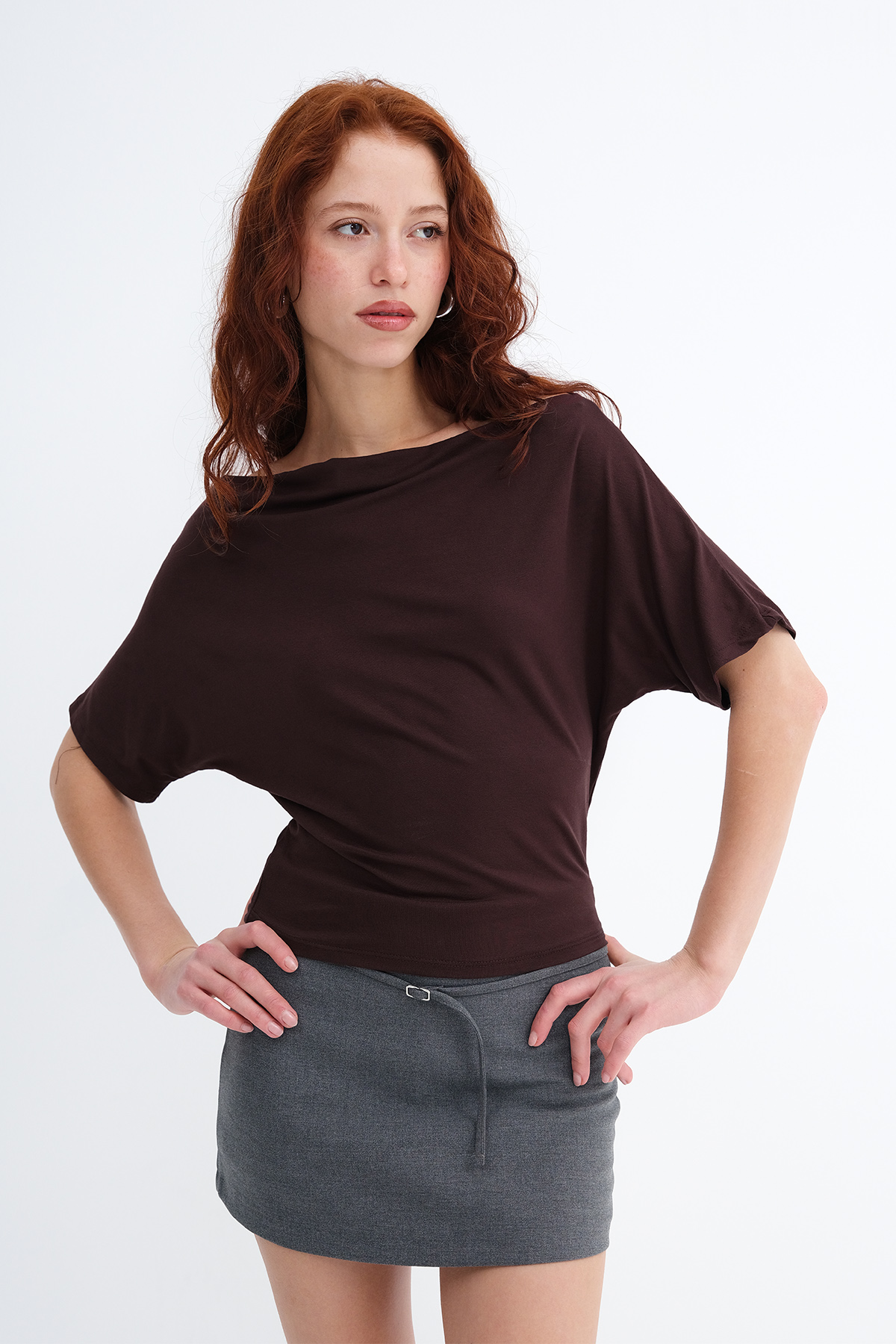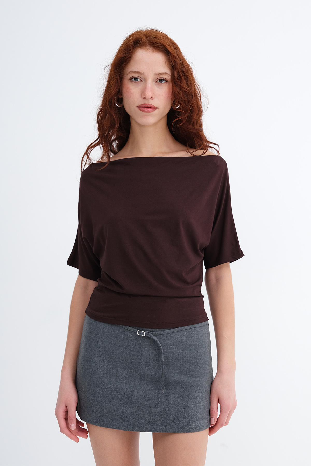 * Kayık yaka, kısa kollu,