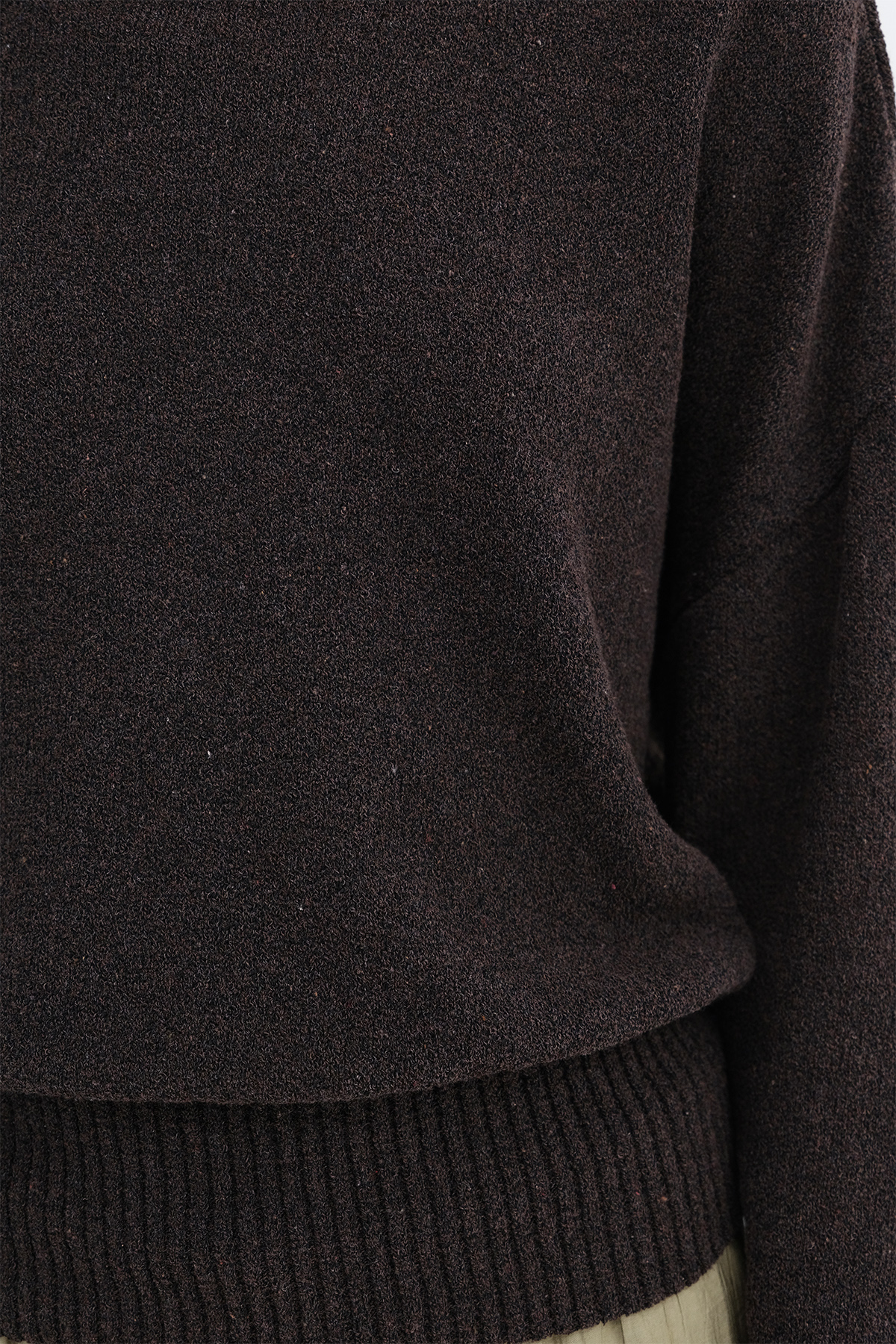 * Düz renk, bel kısmı lastikli triko kazak,