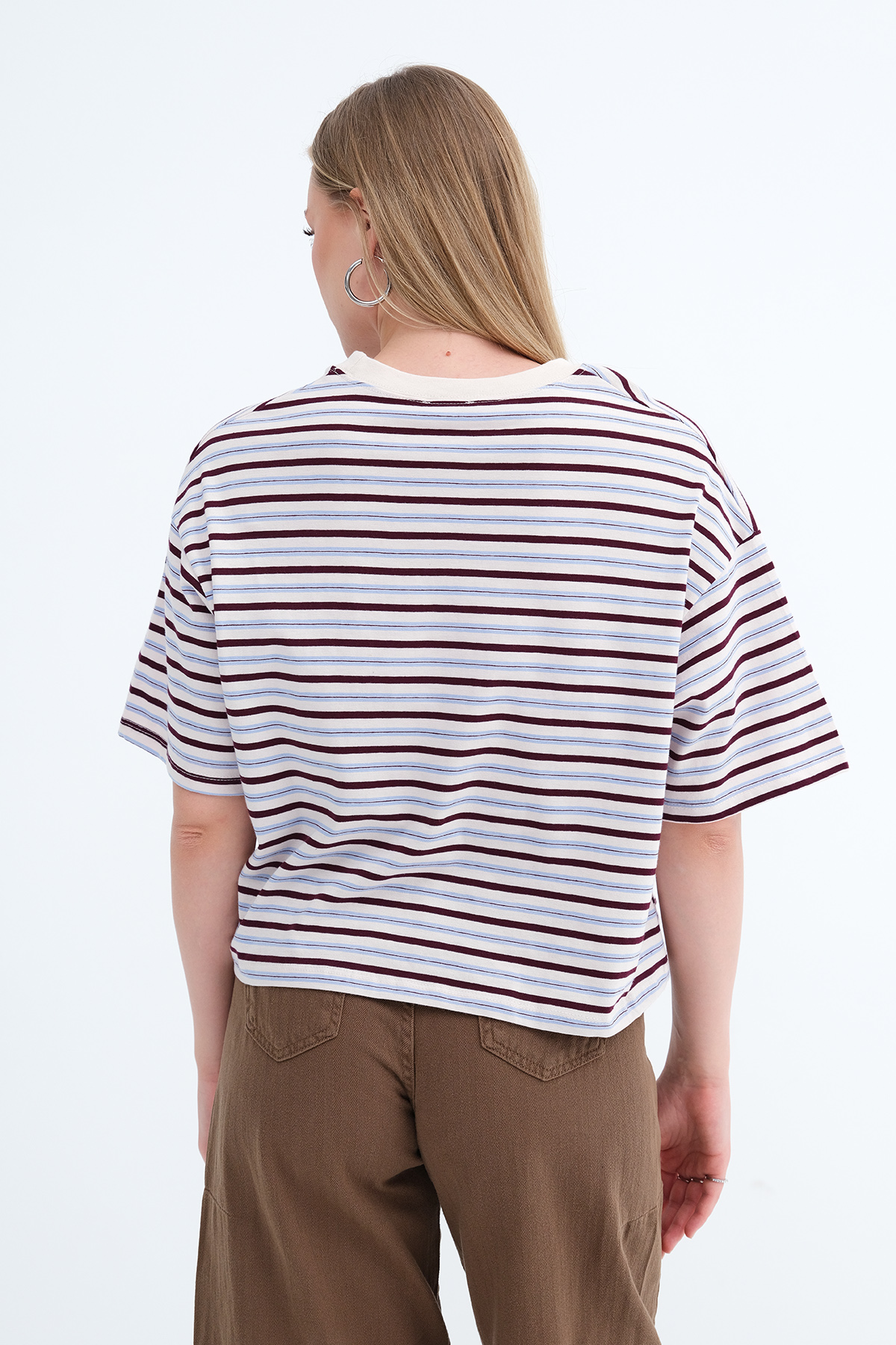 * Çizgili, rahat kalıp t-shirt,