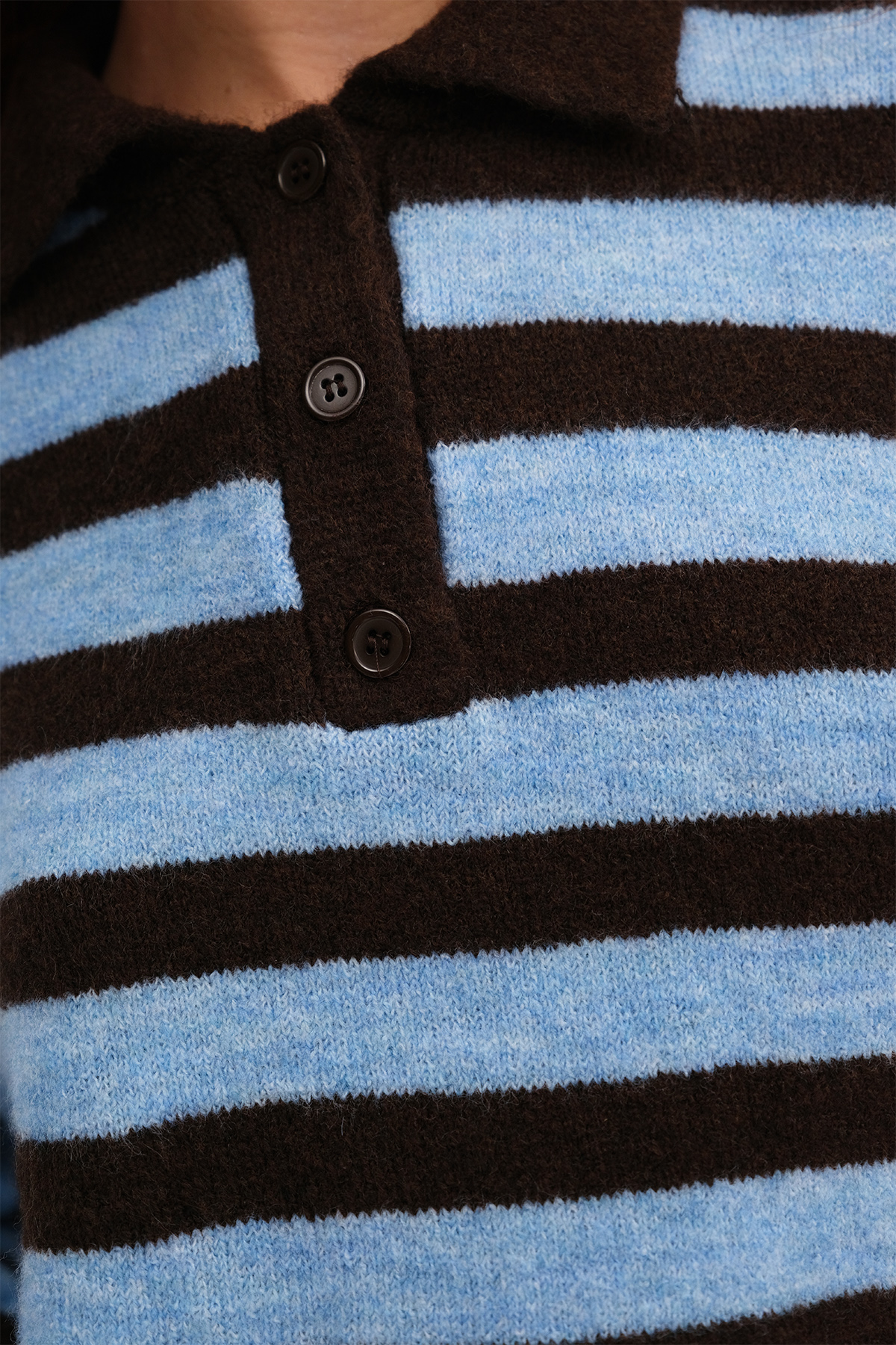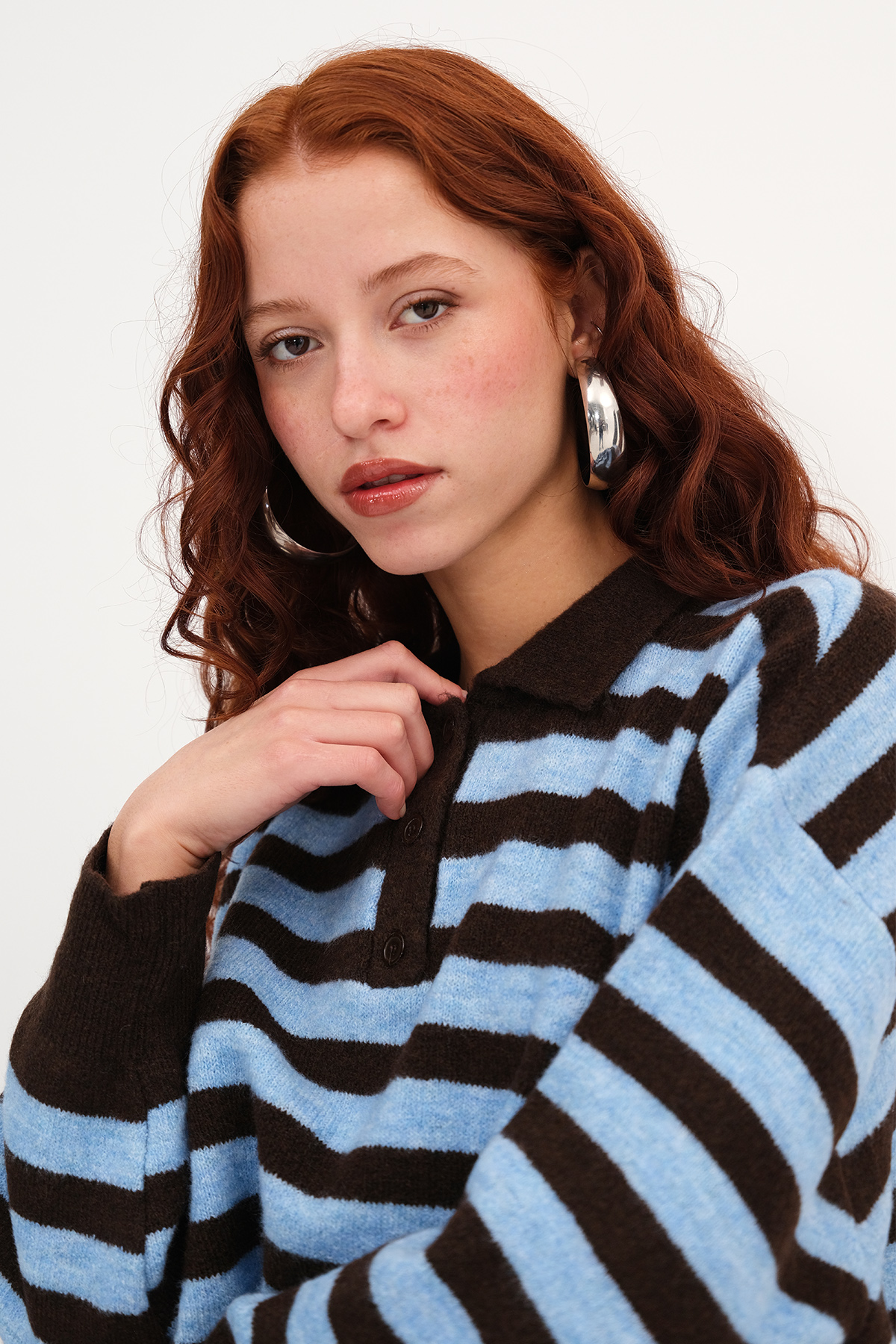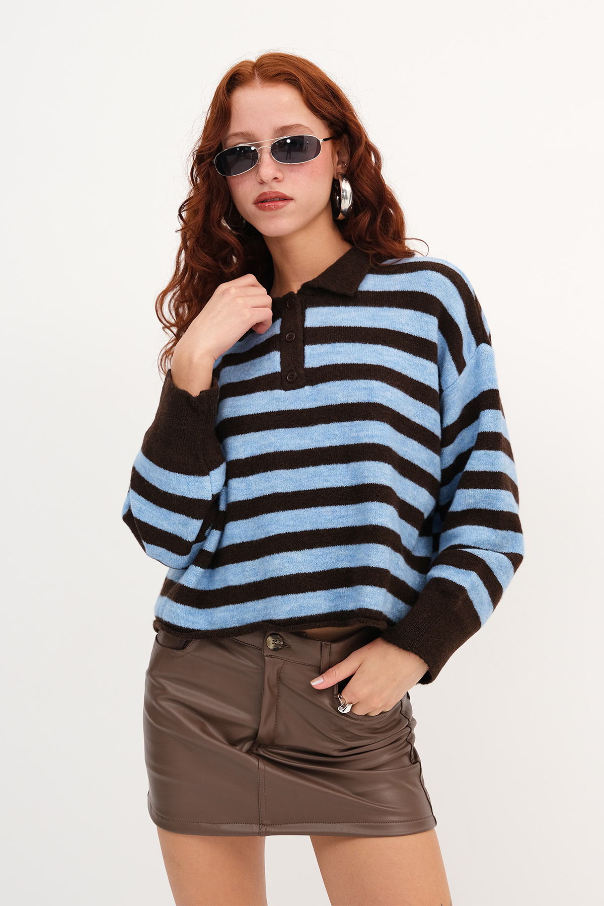 * Polo yaka, uzun kollu,* Düğmeli, çizgili,* Rahat kalıp, triko kazak,* Ürün içeriği:%49 Akrilik %32 Polyester %16 Naylon %3 Elastan,* Manken üzerindeki ürün standart bedendir.* Numune Beden Ölçüleri: Boy: 44 cm Göğüs: 110 cm Kol Boyu: 46 cm (1-3 cm arasında değişiklik gösterebilir)* Ürün çekimlerinde renkler, ışık farklılığından dolayı değişkenlik gösterebilir.