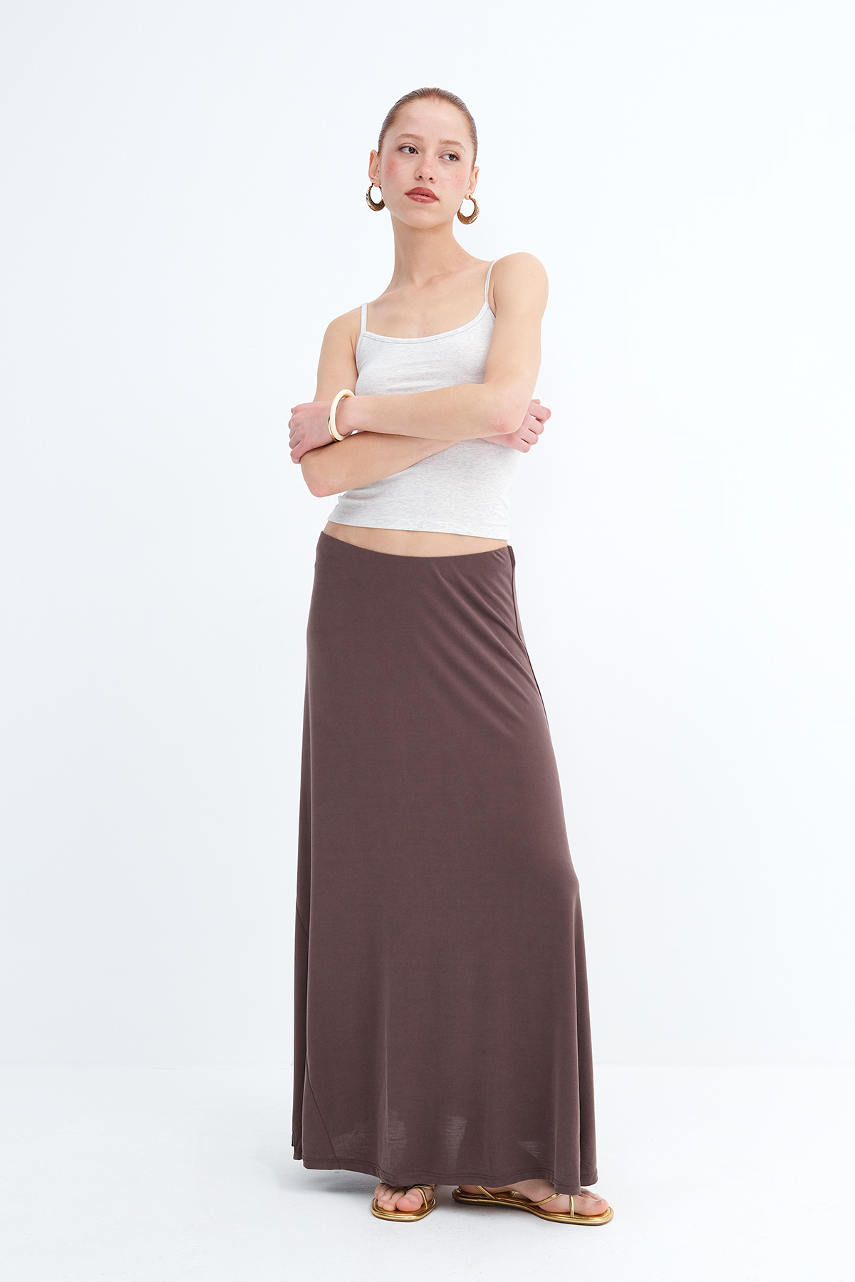 * Astarsız, düz renk, uzun etek,