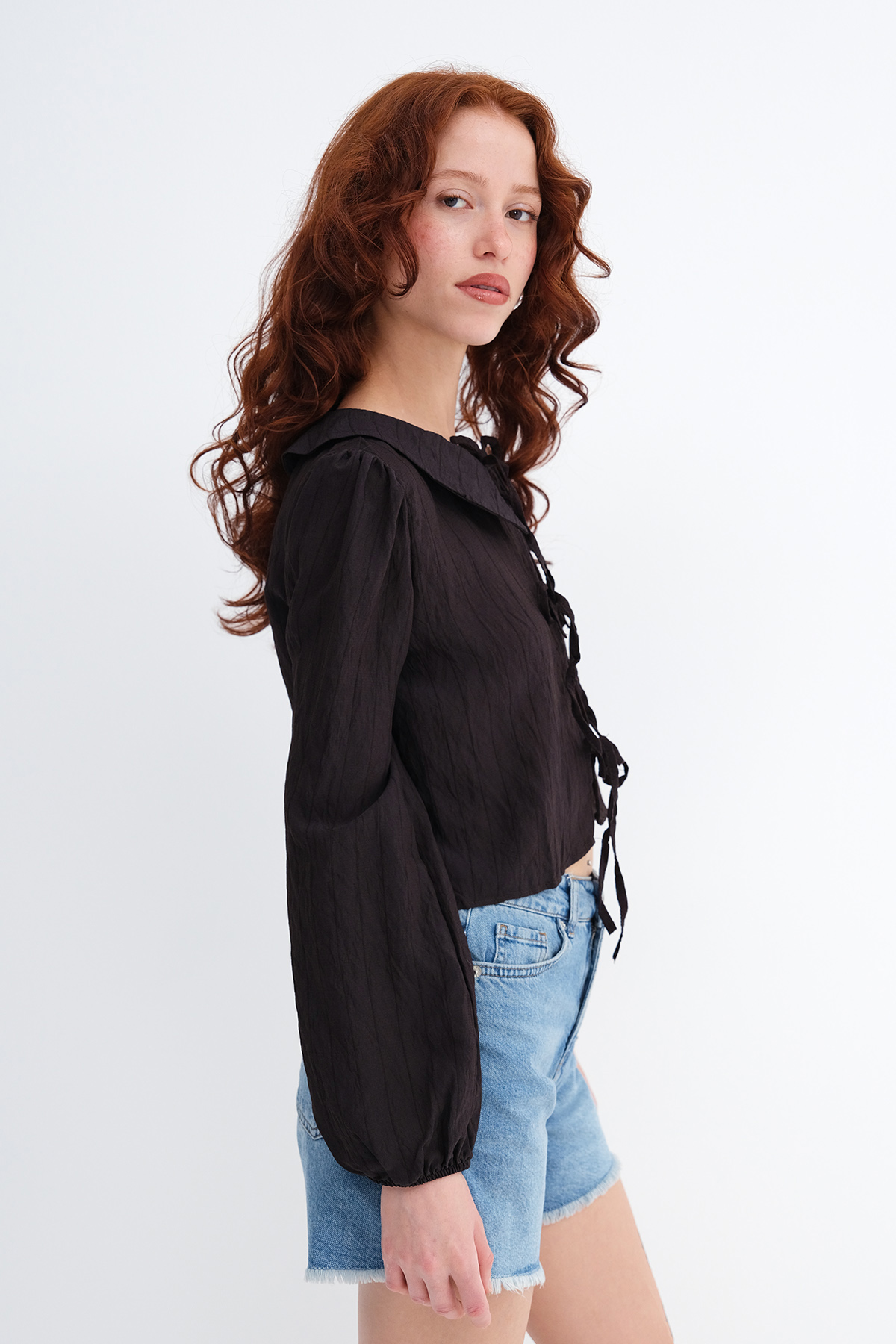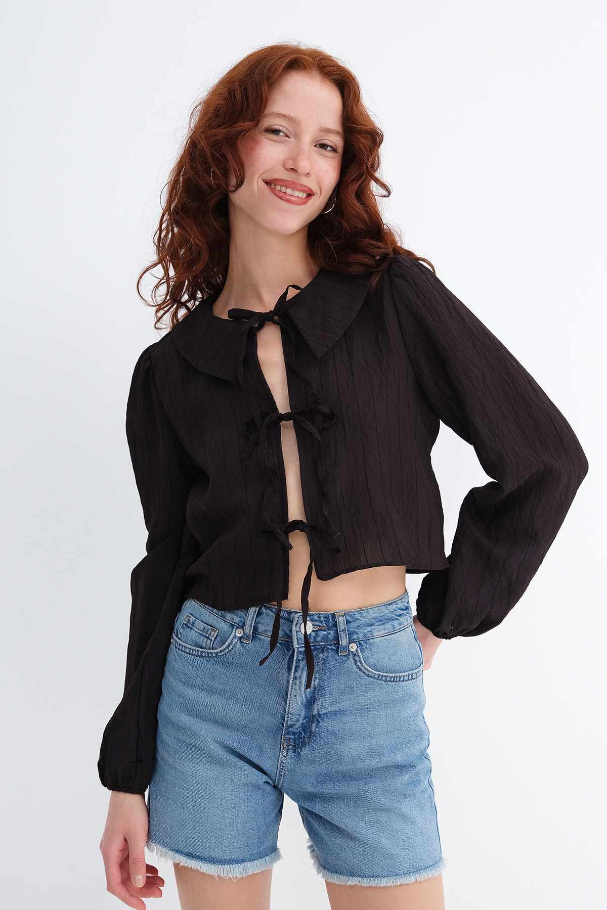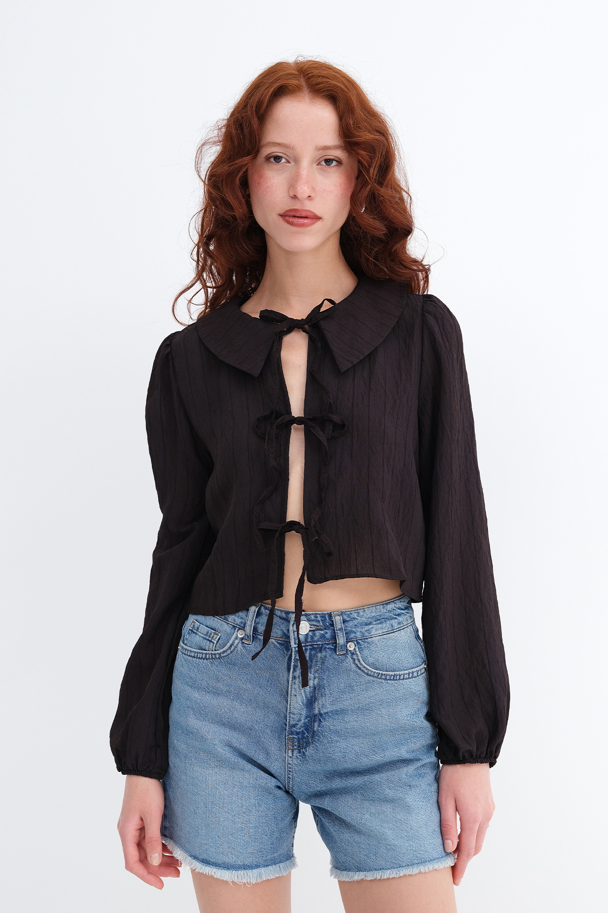 * Bebe yaka, uzun kollu,