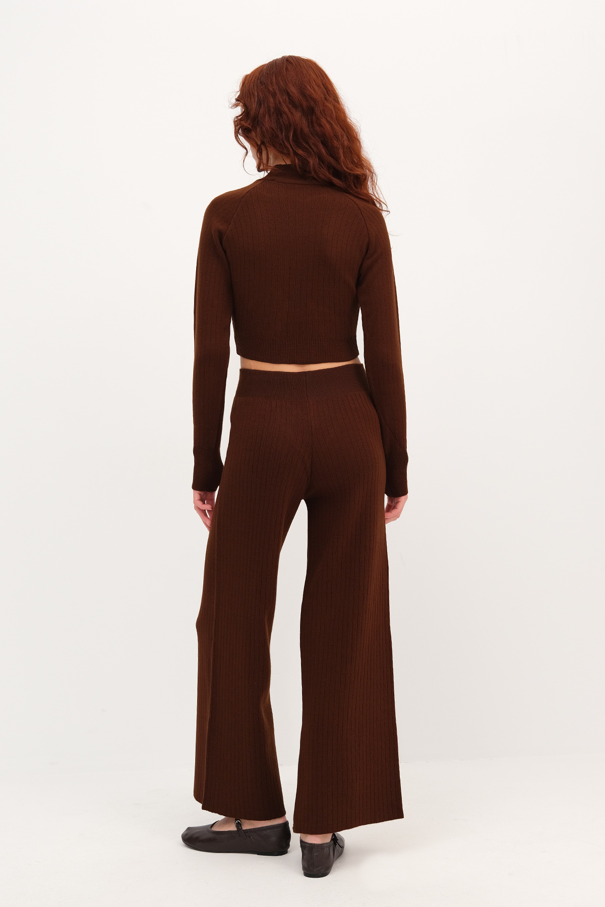 * Dik yaka, uzun kollu,* Manşetleri ve etek ucu lastik örgülü,* Baş parmak geçrimeli,* Düz renk,* Beli lastikli, yüksek bel,* Wide leg pantolon,* Ürün içeriği: %100 Akrilik* Manken üzerindeki ürün standart bedendir.* Numune Beden Ölçüleri: Üst boy: 41 cm Göğüs: 60 cm Kol Boyu: 70 cm* Alt Boy: 103 cm Bel: 60 cm Basen: 90 cm İç bacak: 75 cm (1-3 cm arasında değişiklik gösterebilir)* Ürün çekimlerinde renkler, ışık farklılığından dolayı değişkenlik gösterebilir.