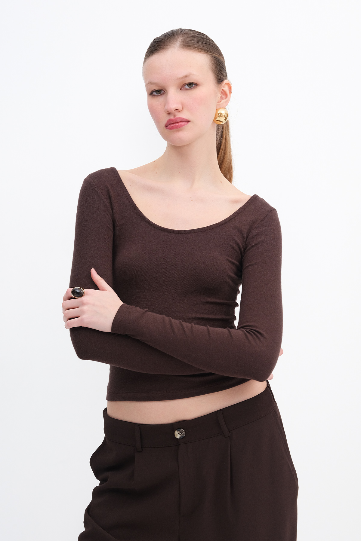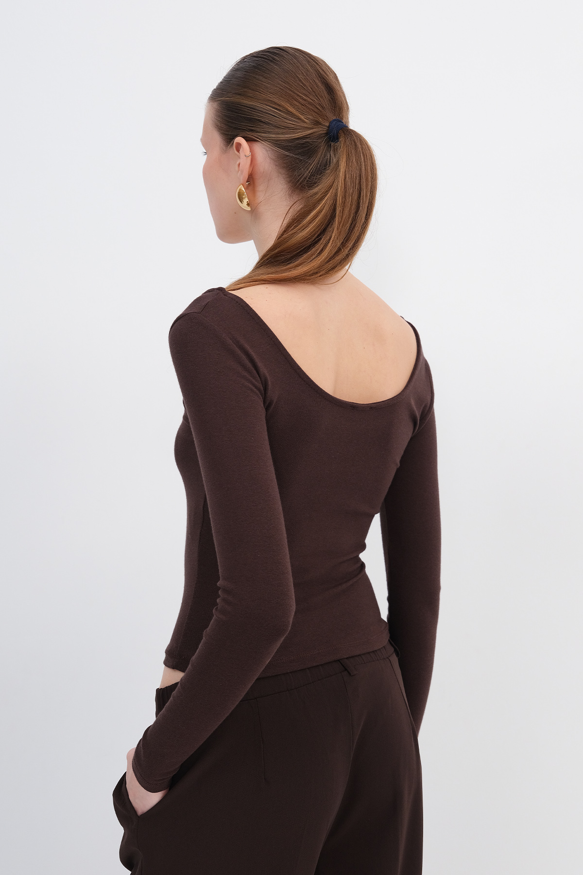 * U yaka, basic, uzun kollu,