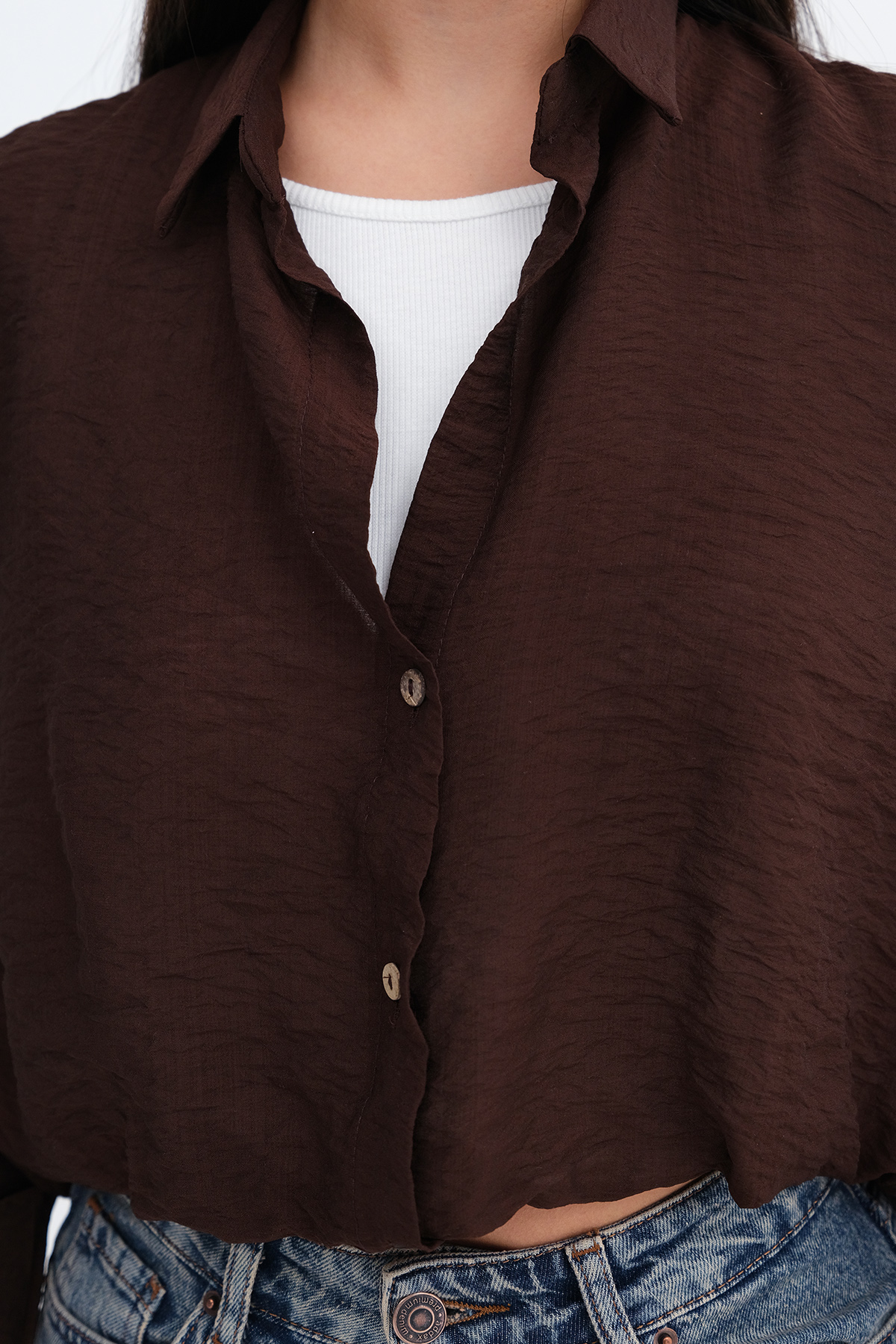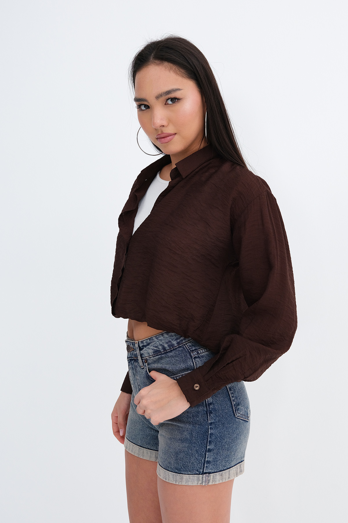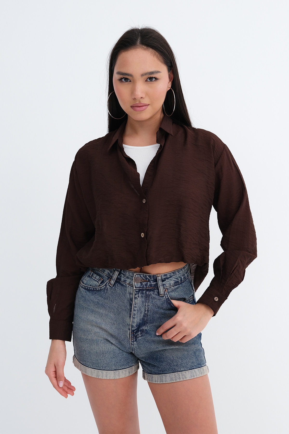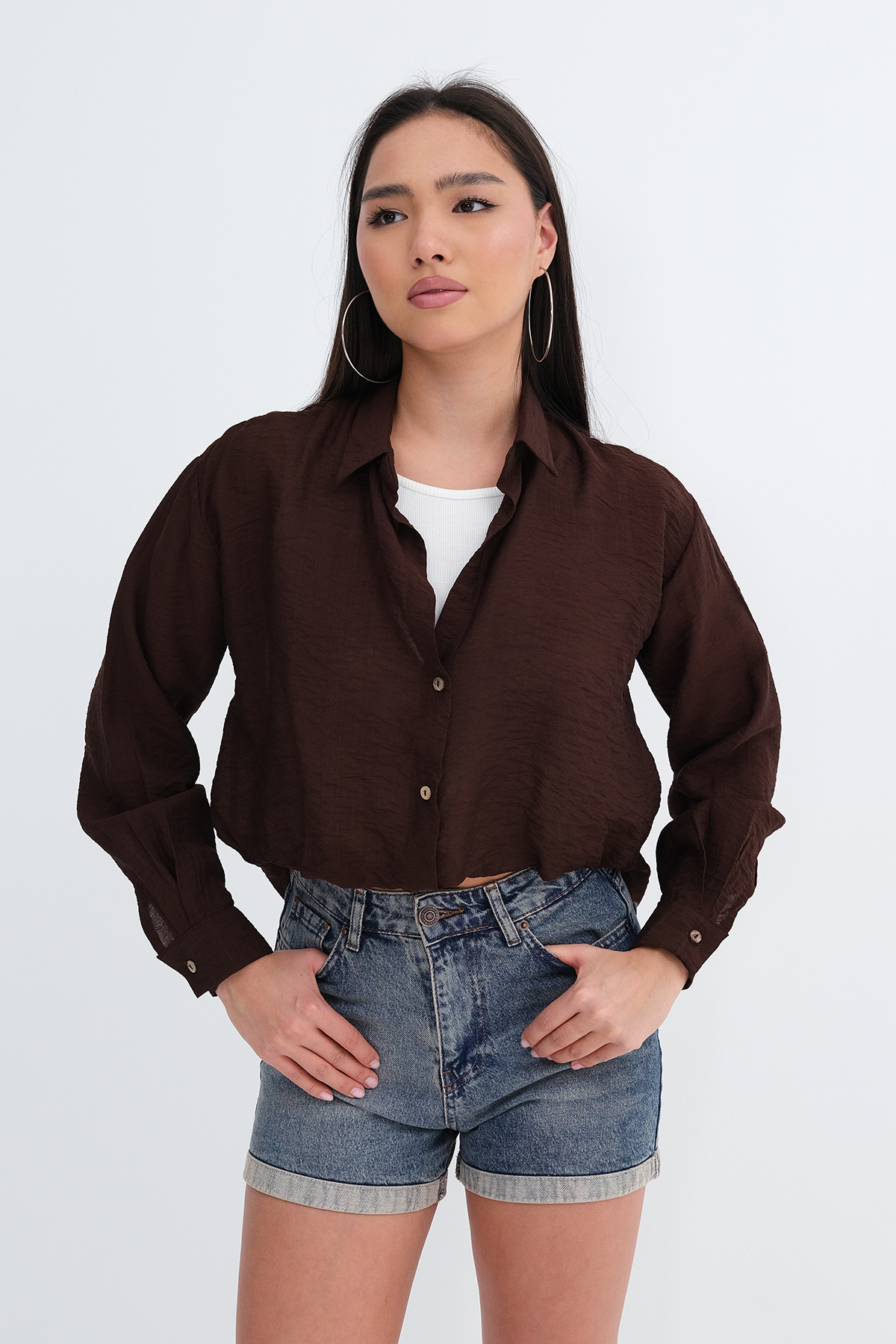 * Gömlek yaka, uzun kollu, düşük omuz,