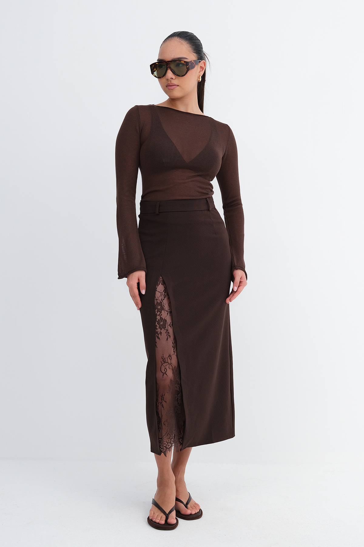 * Düz renk, midi etek,