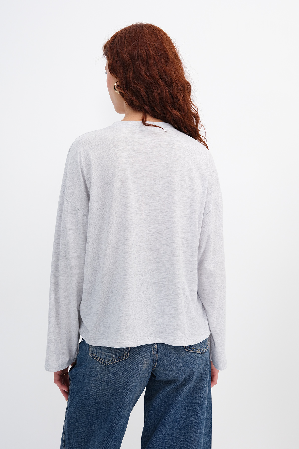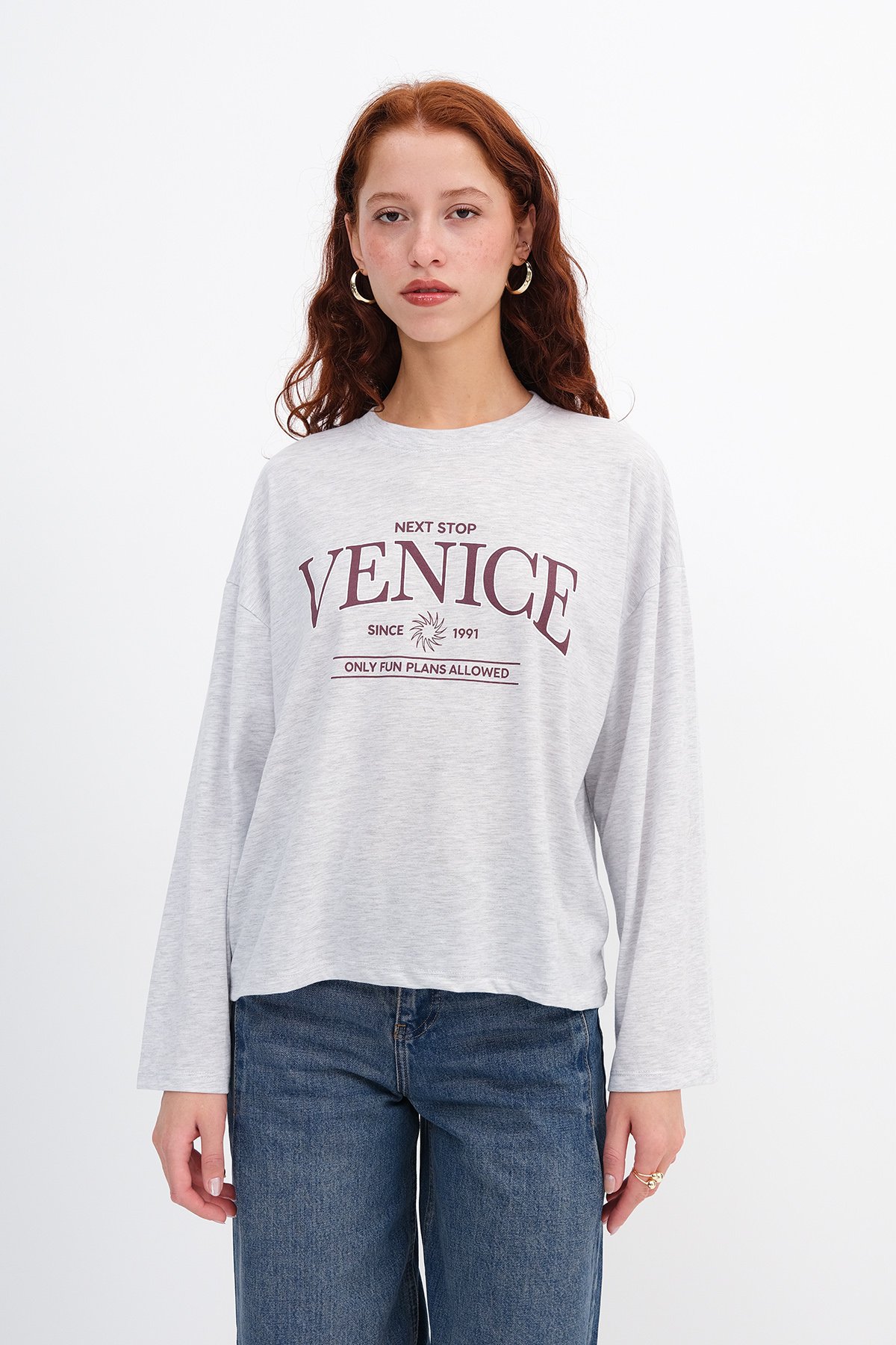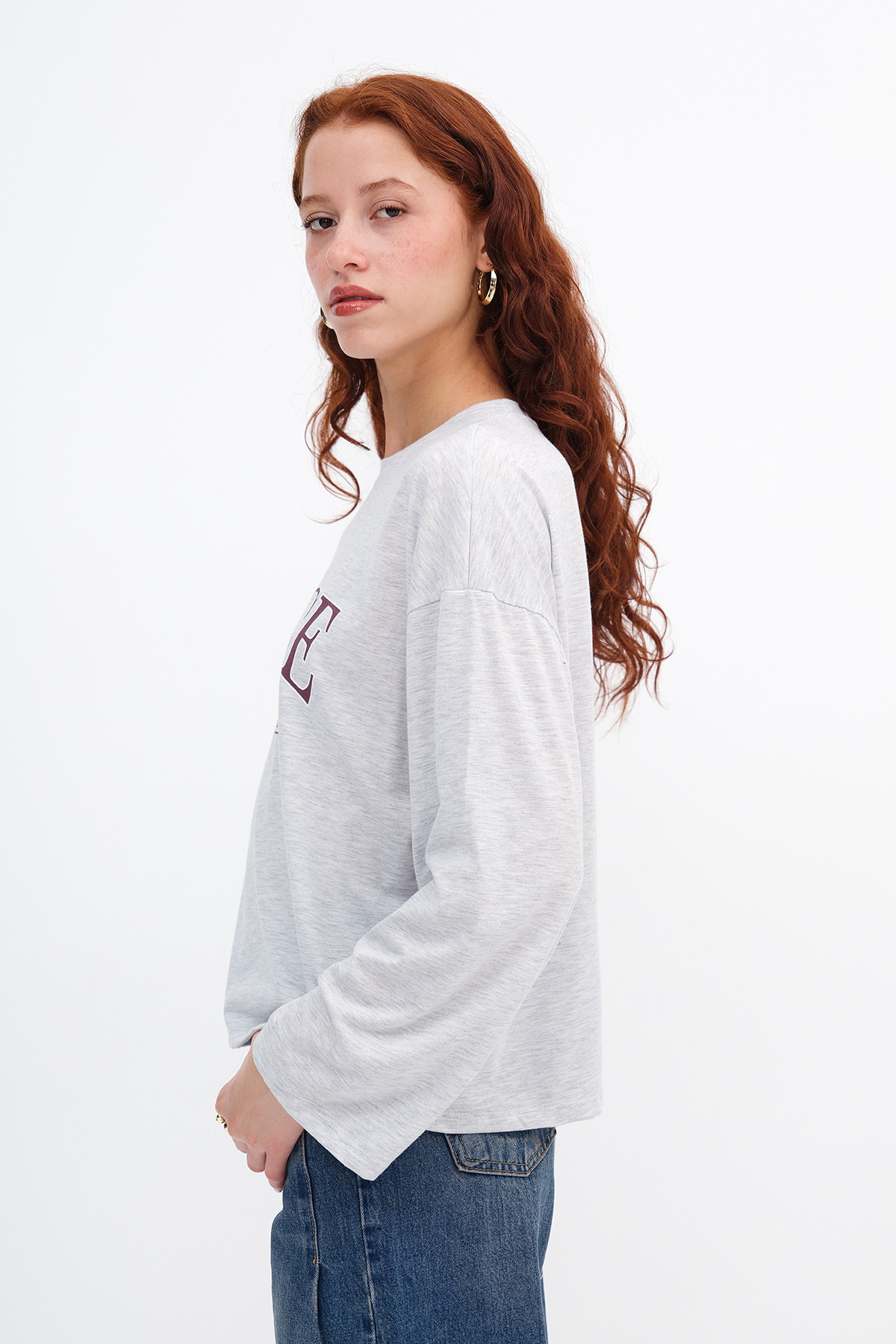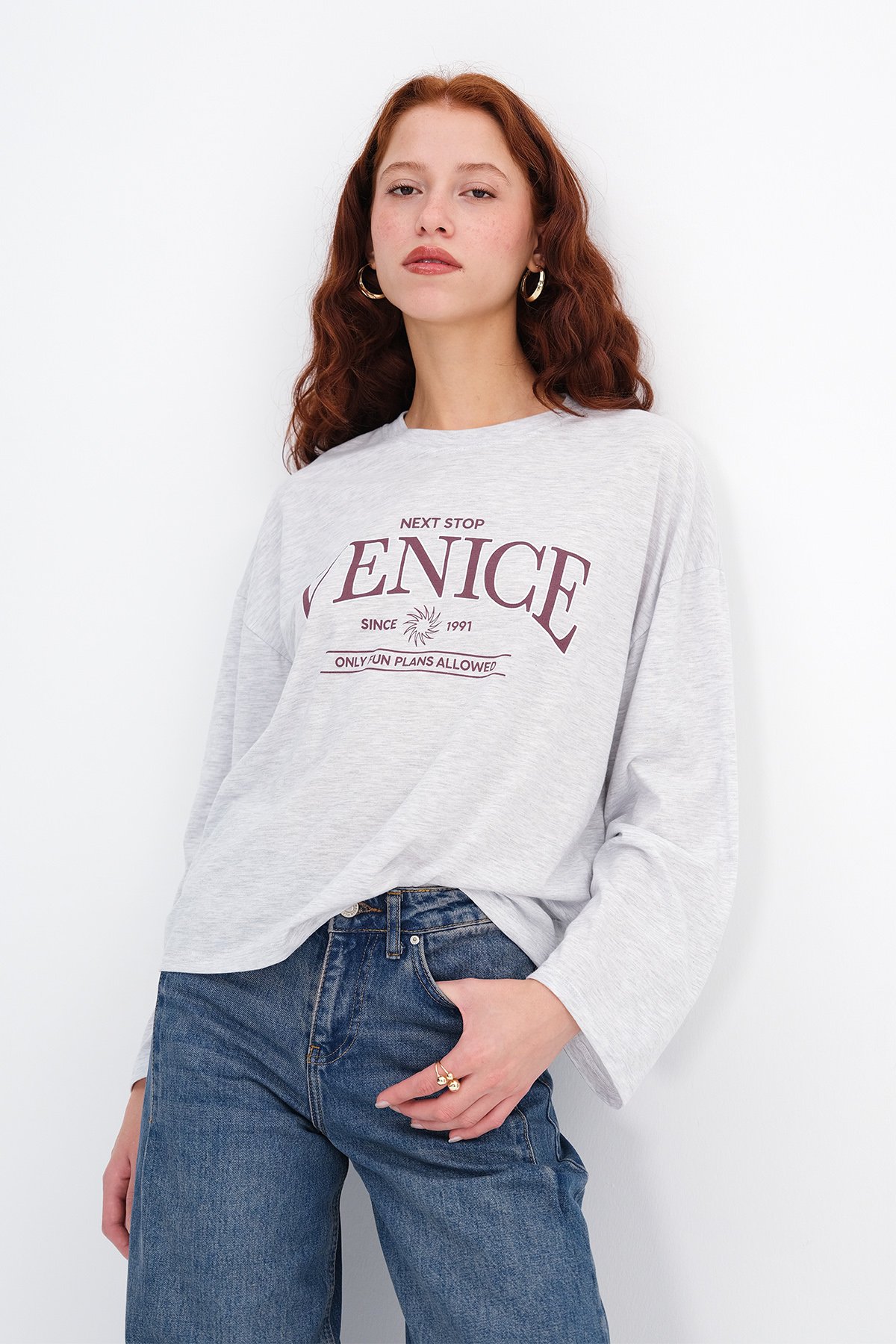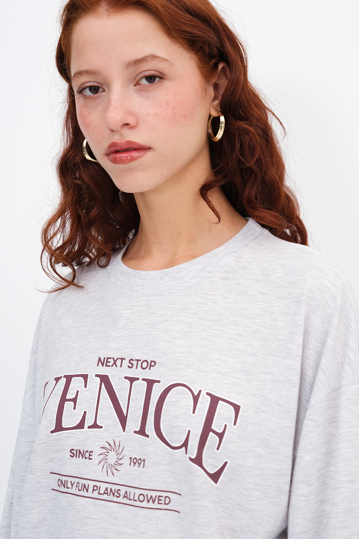 * Düşük omuz, rahat kalıp, baskılı t-shirt,