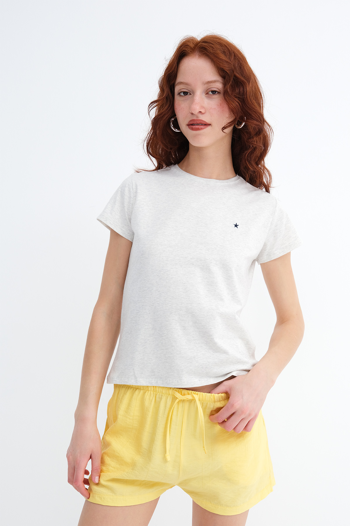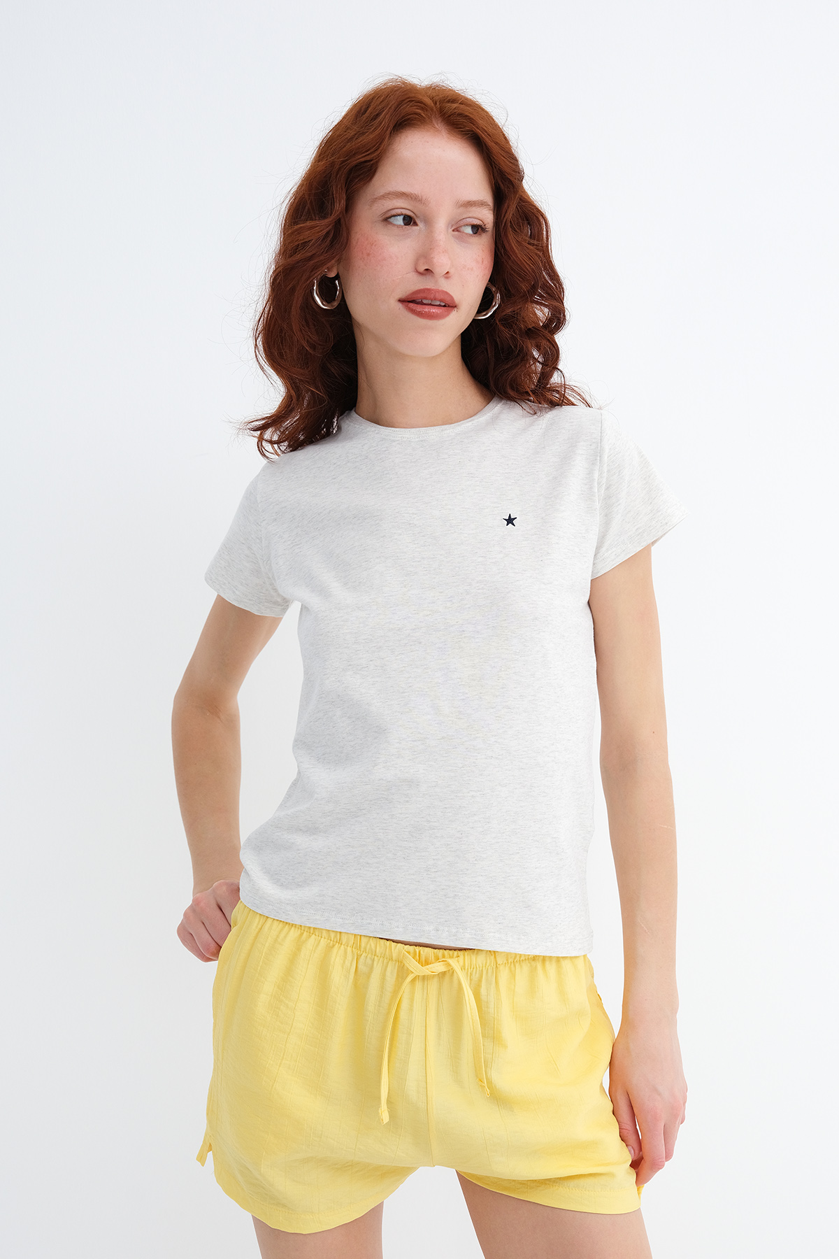 * Yıldız nakışlı t-shirt,