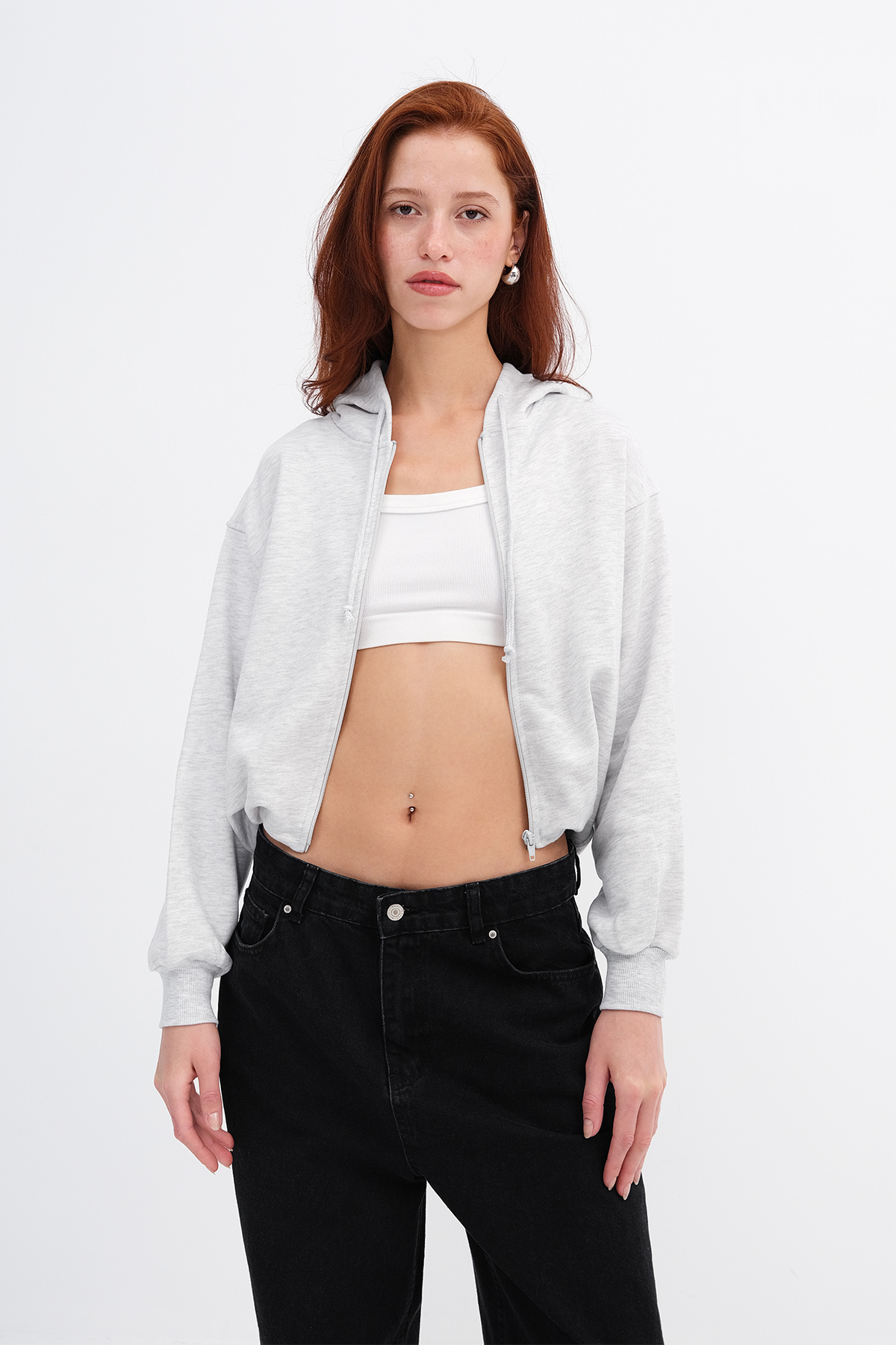 * Fermuarlı, etek ucu lastikli, şardonsuz hırka,