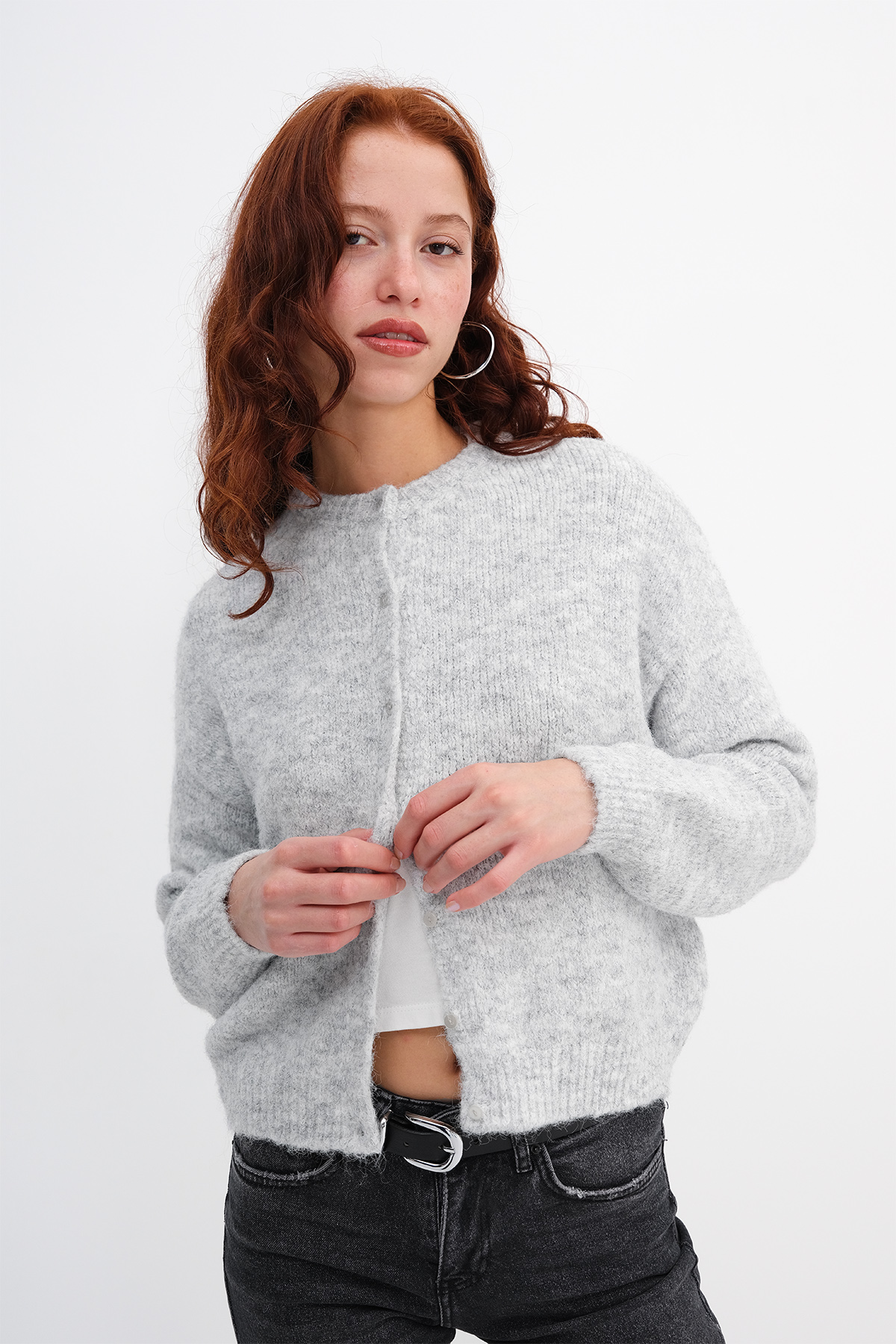 * Yumuşak dokulu, düğmeli, triko hırka,