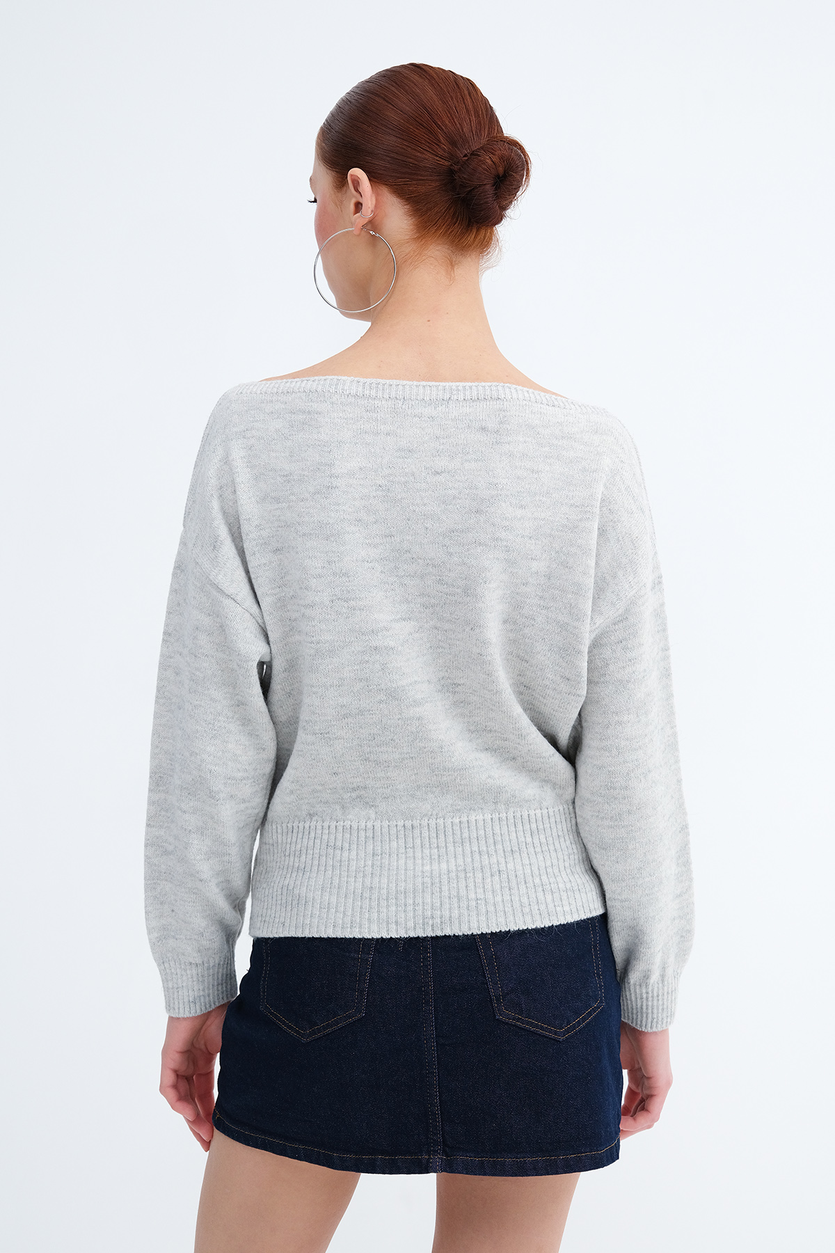 * Kayık yaka, uzun kollu, düşük omuz,