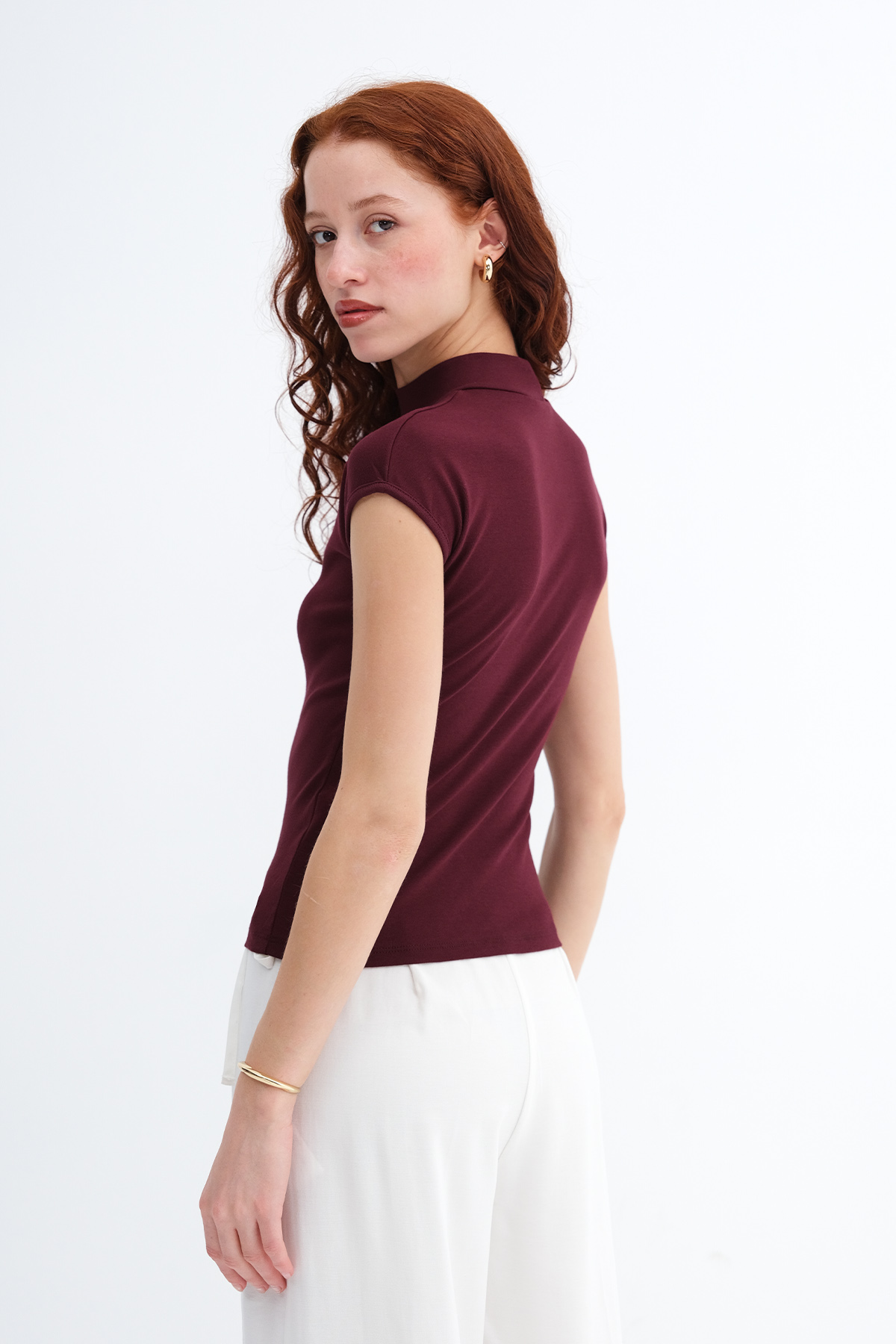 * Dik yaka, kısa kollu,