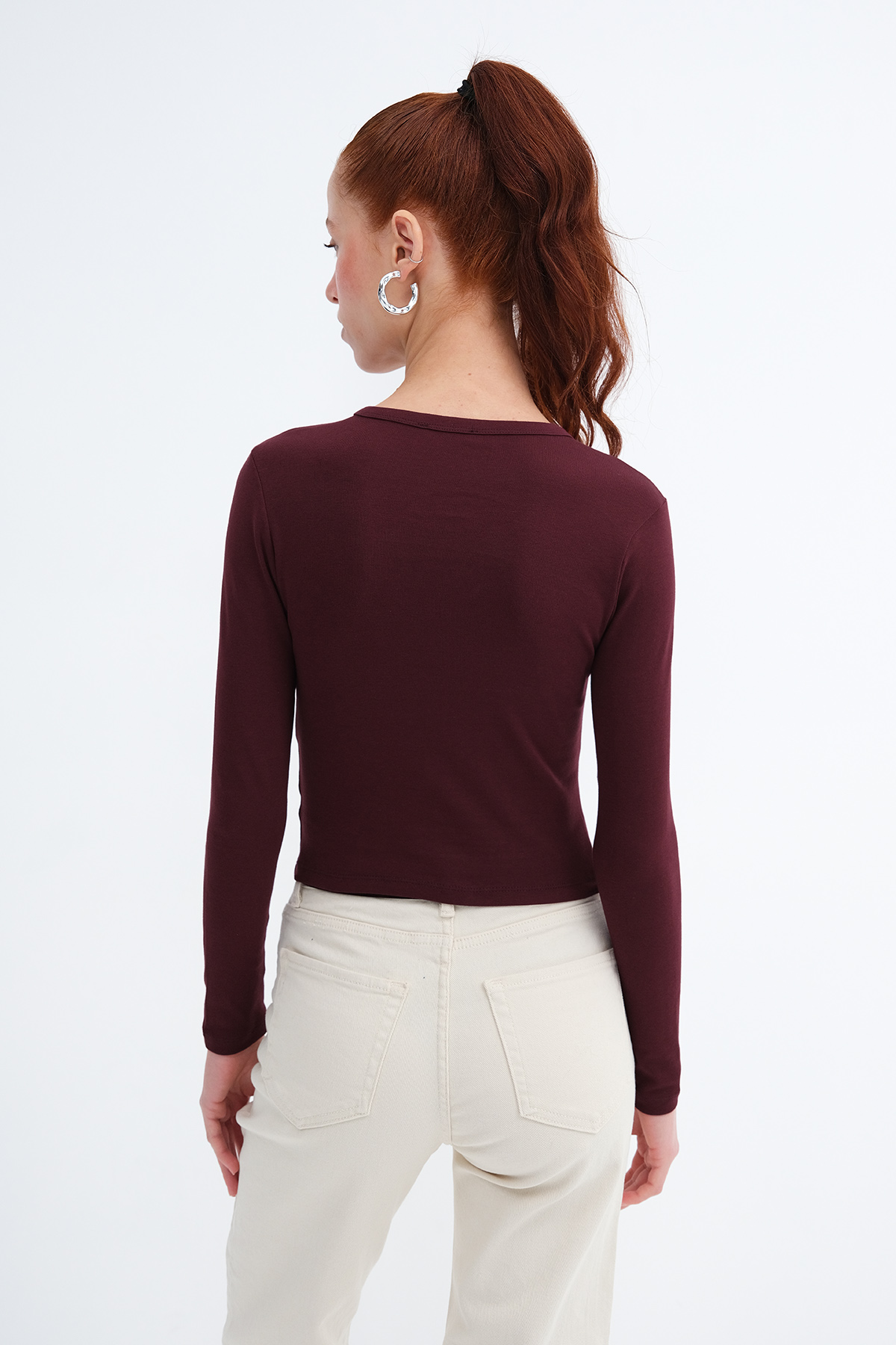 * Bisiklet yaka, uzun kollu,