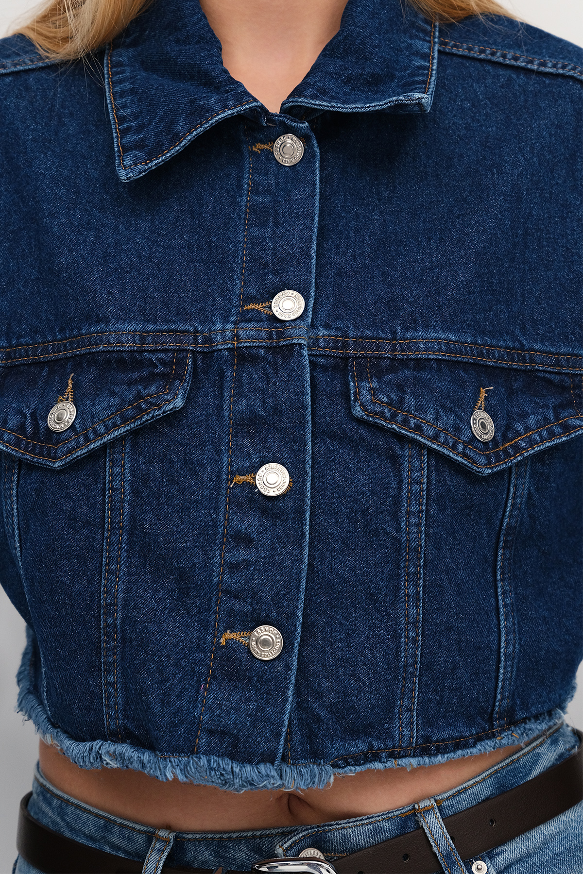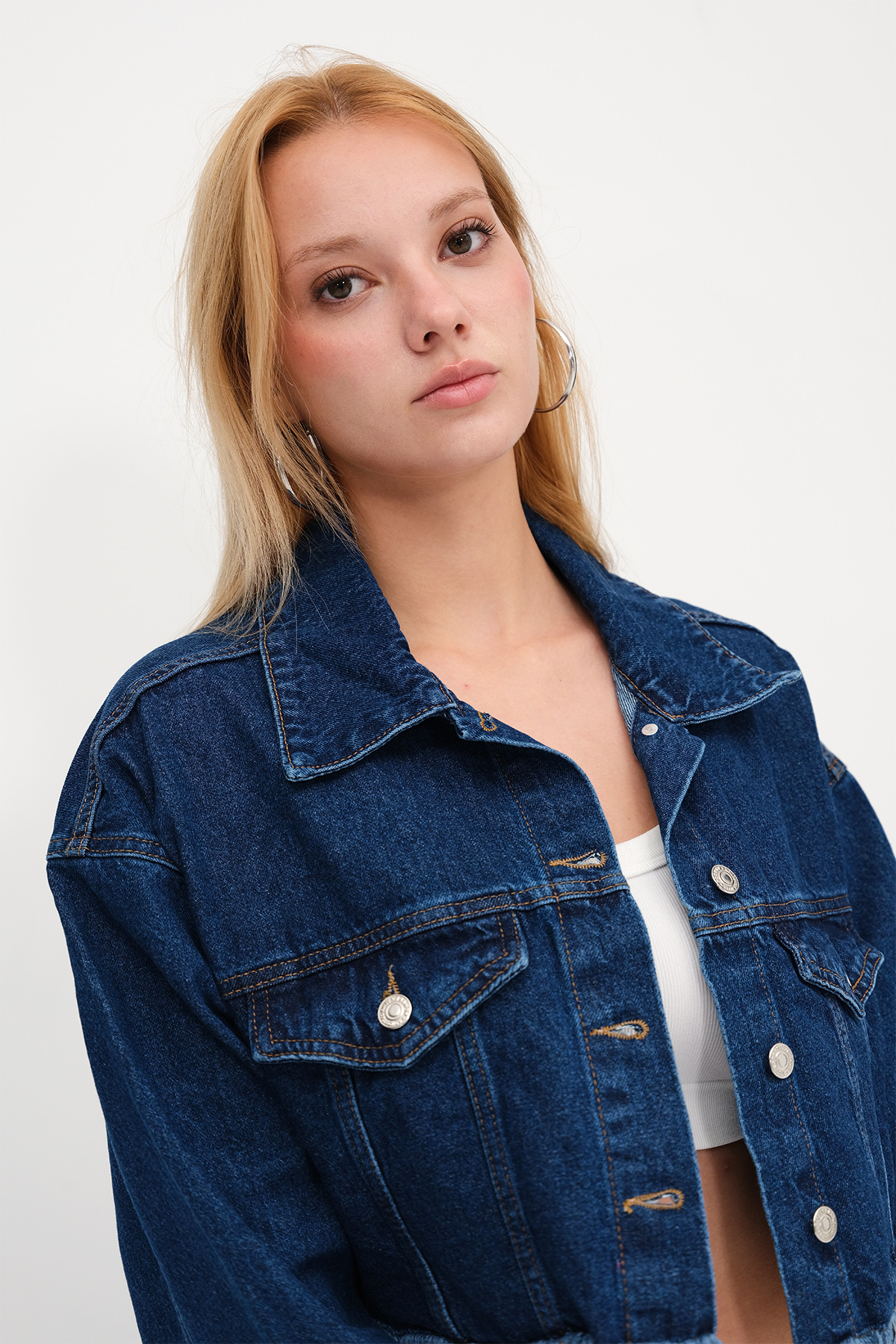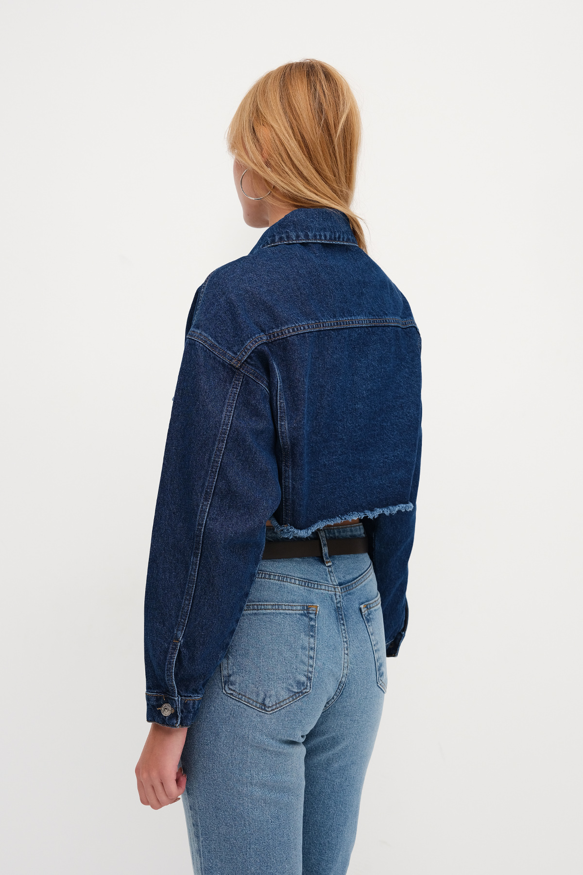 * Metal düğmeli, püsküllü, crop kot ceket,