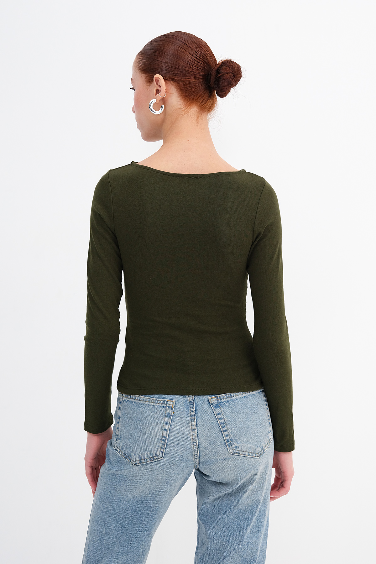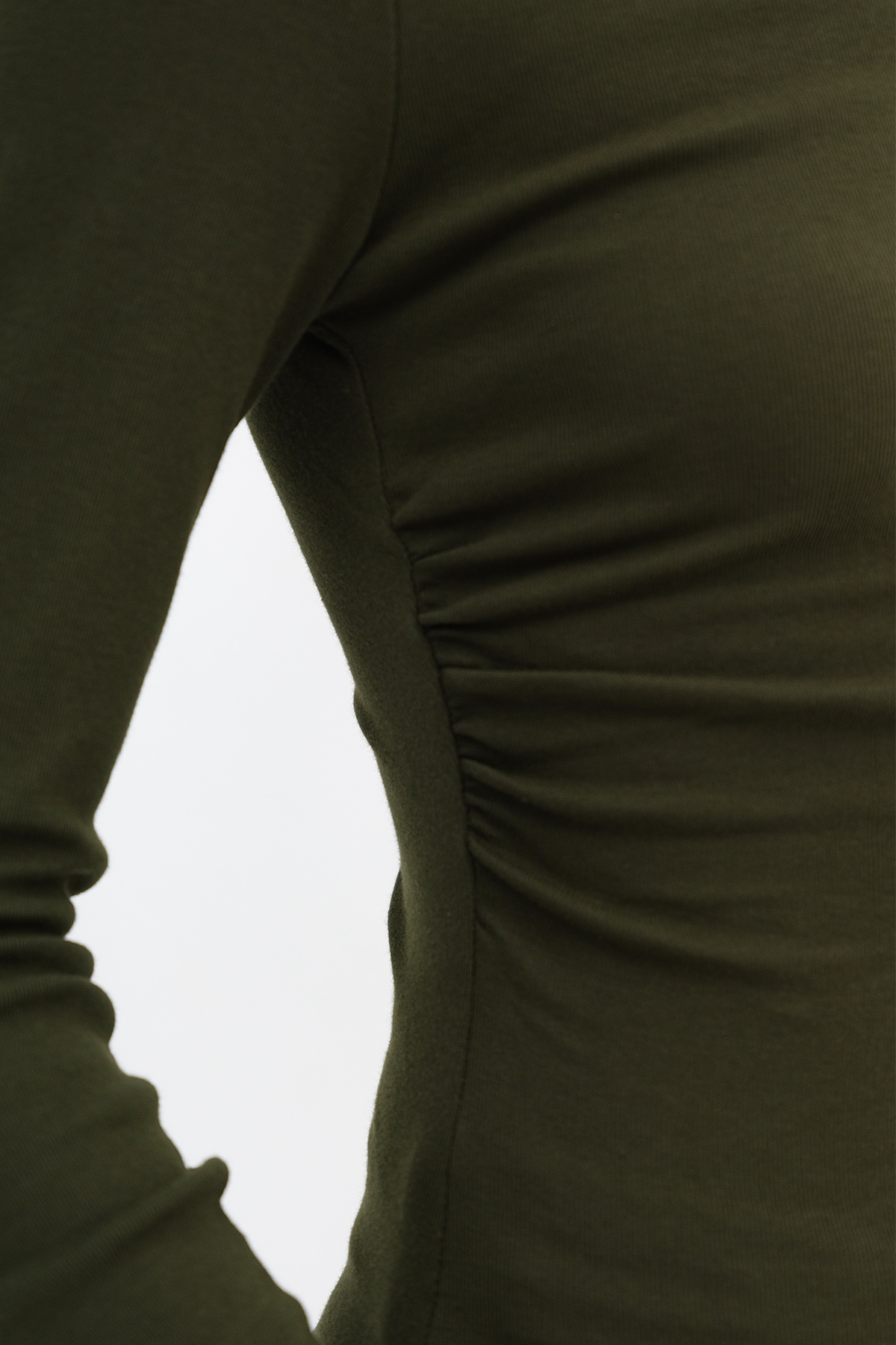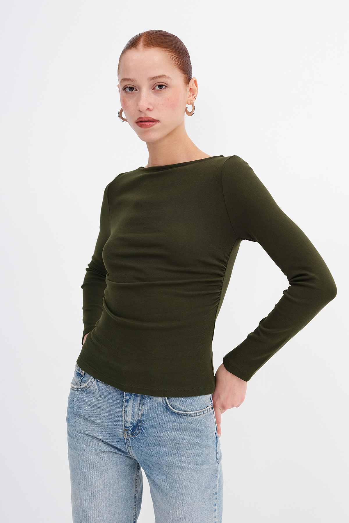 * Yanı büzgülü, düz renk, vücudu saran bluz,