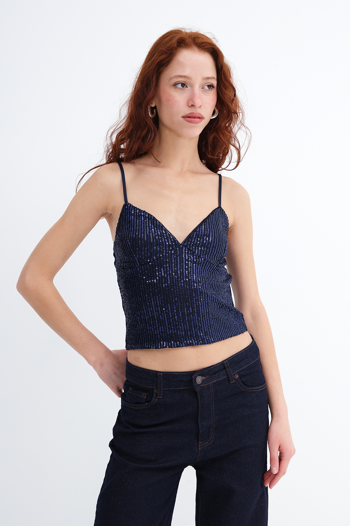 * Ayarlanabilir ince askılı, pullu,