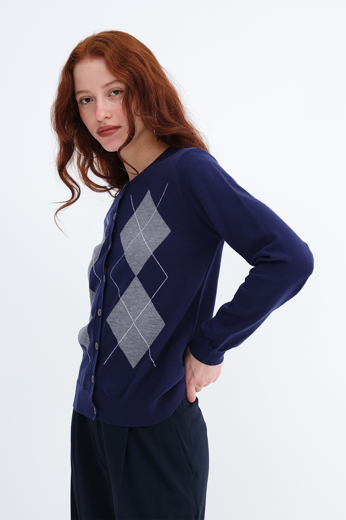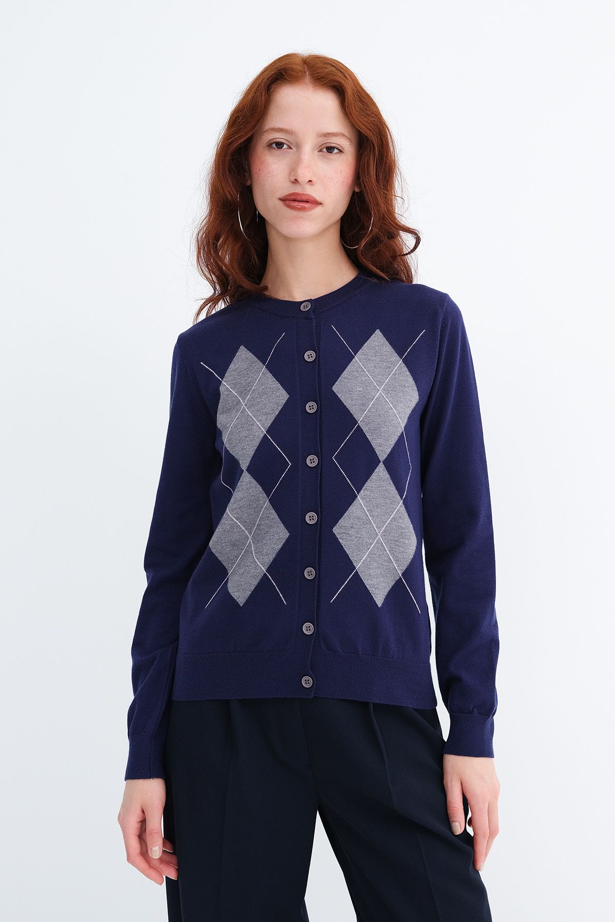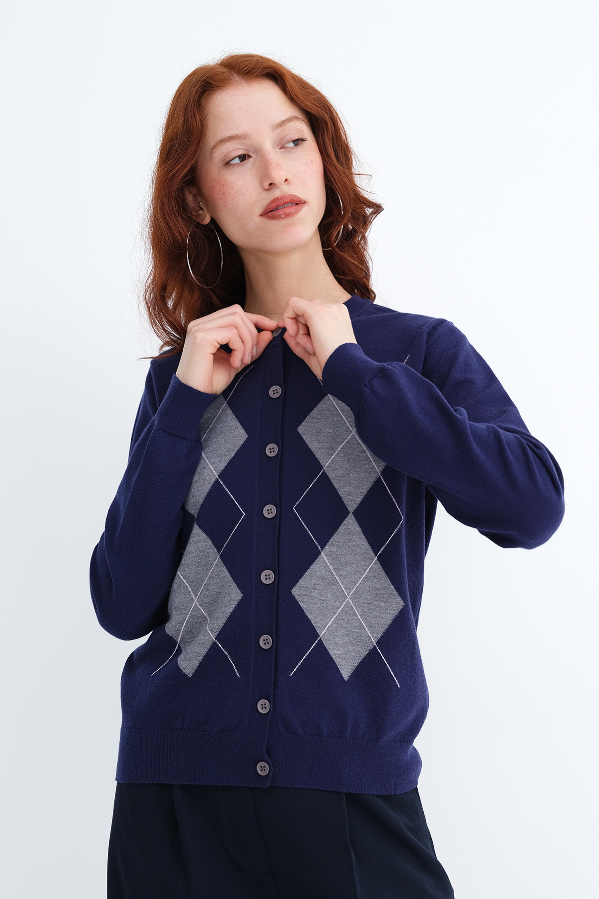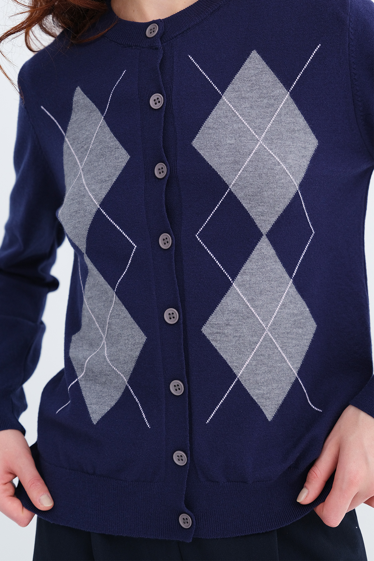* Baklava desenli, düğmeli triko hırka,
