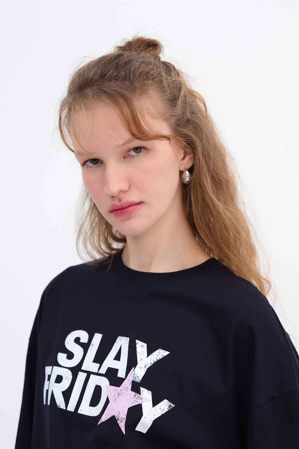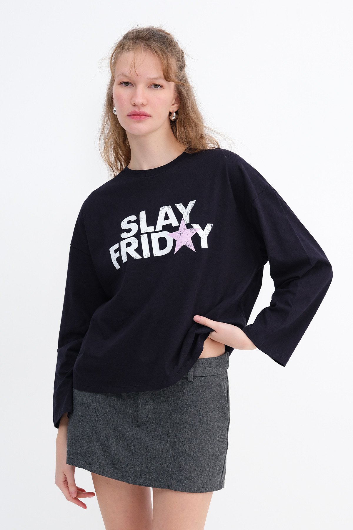 * Baskılı, rahat kalıp t-shirt,