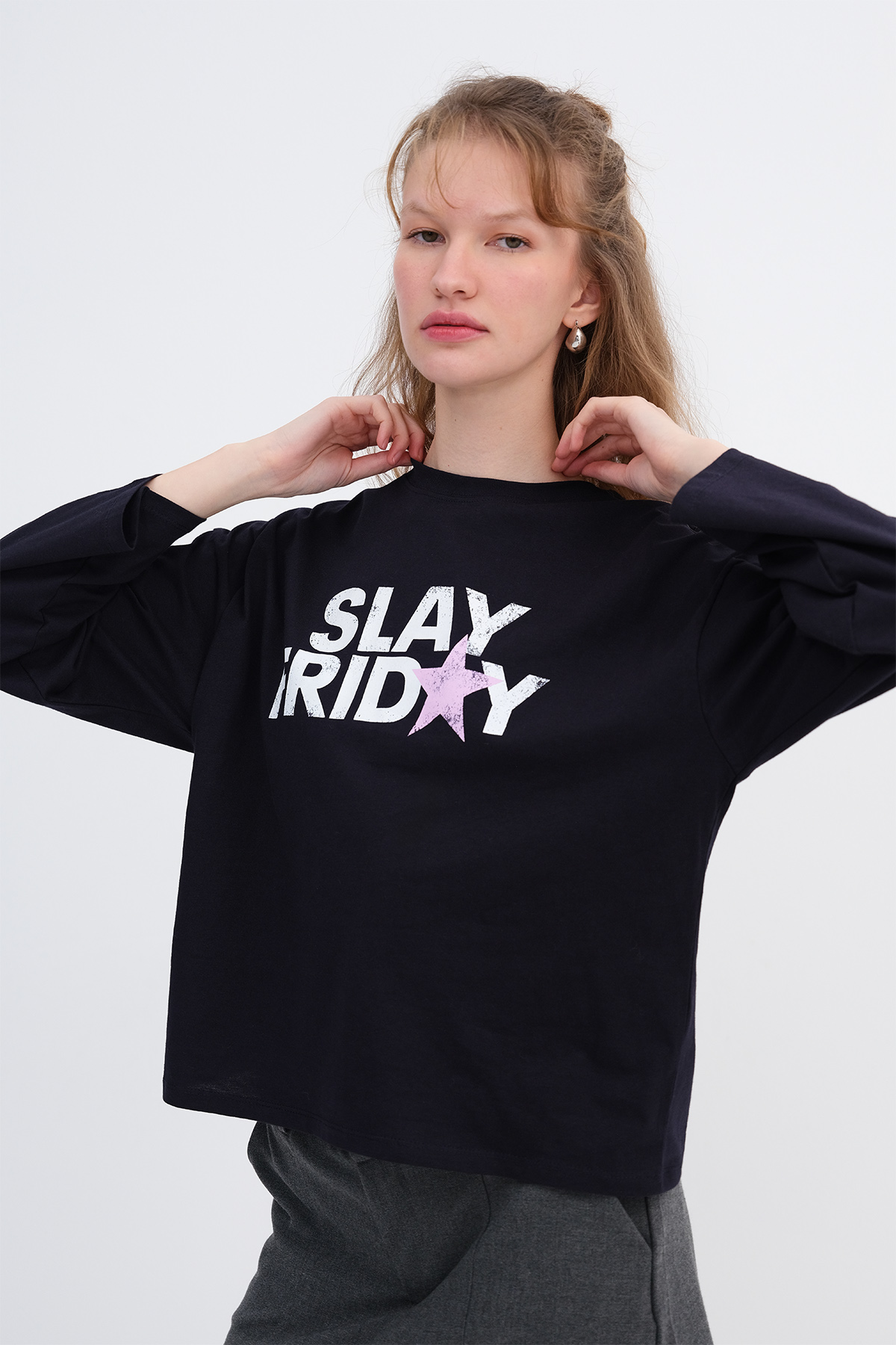 * Bisiklet yaka, uzun kollu,