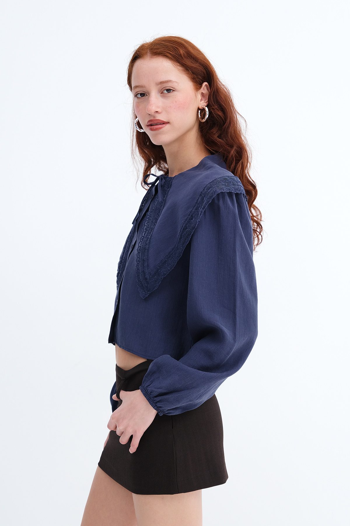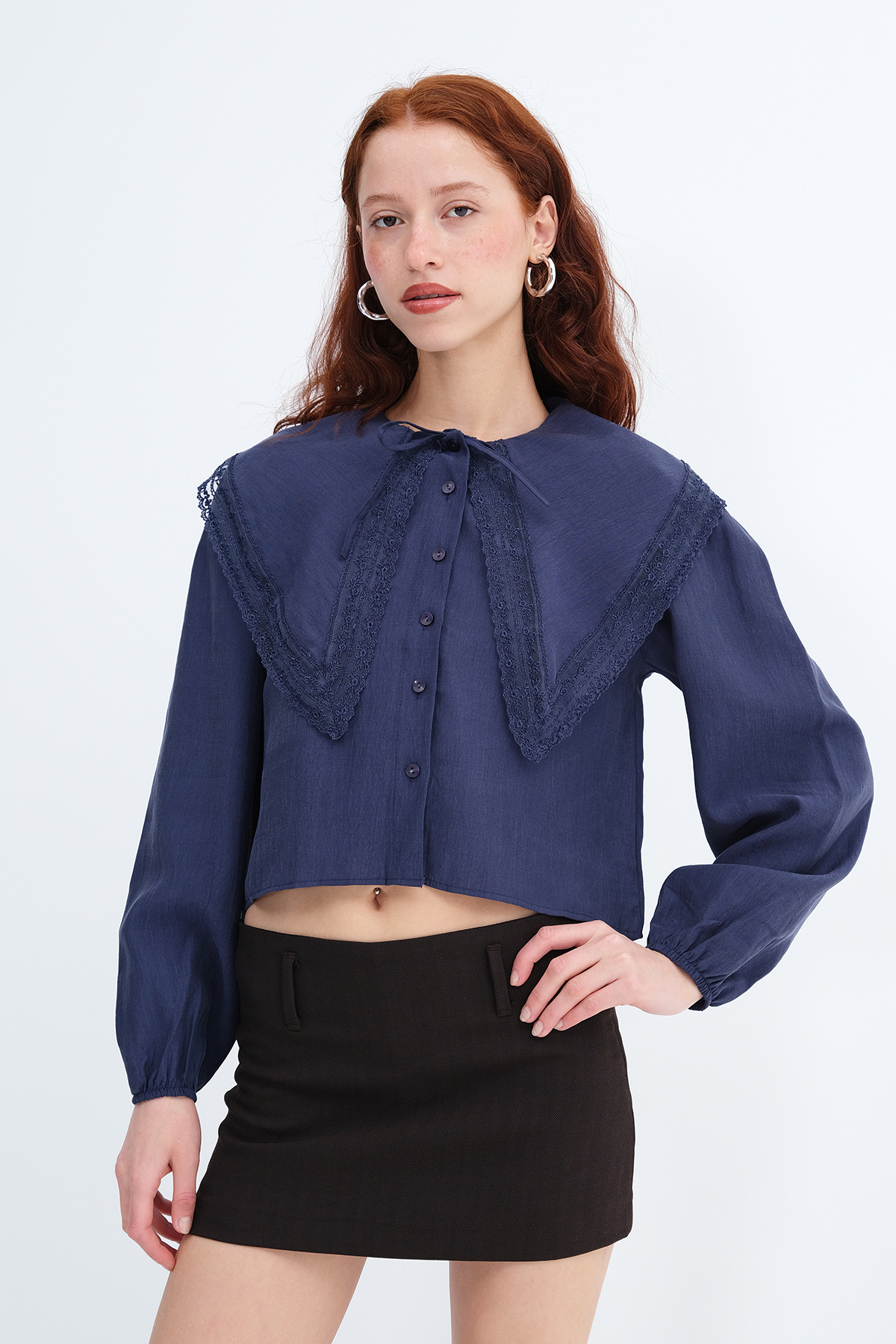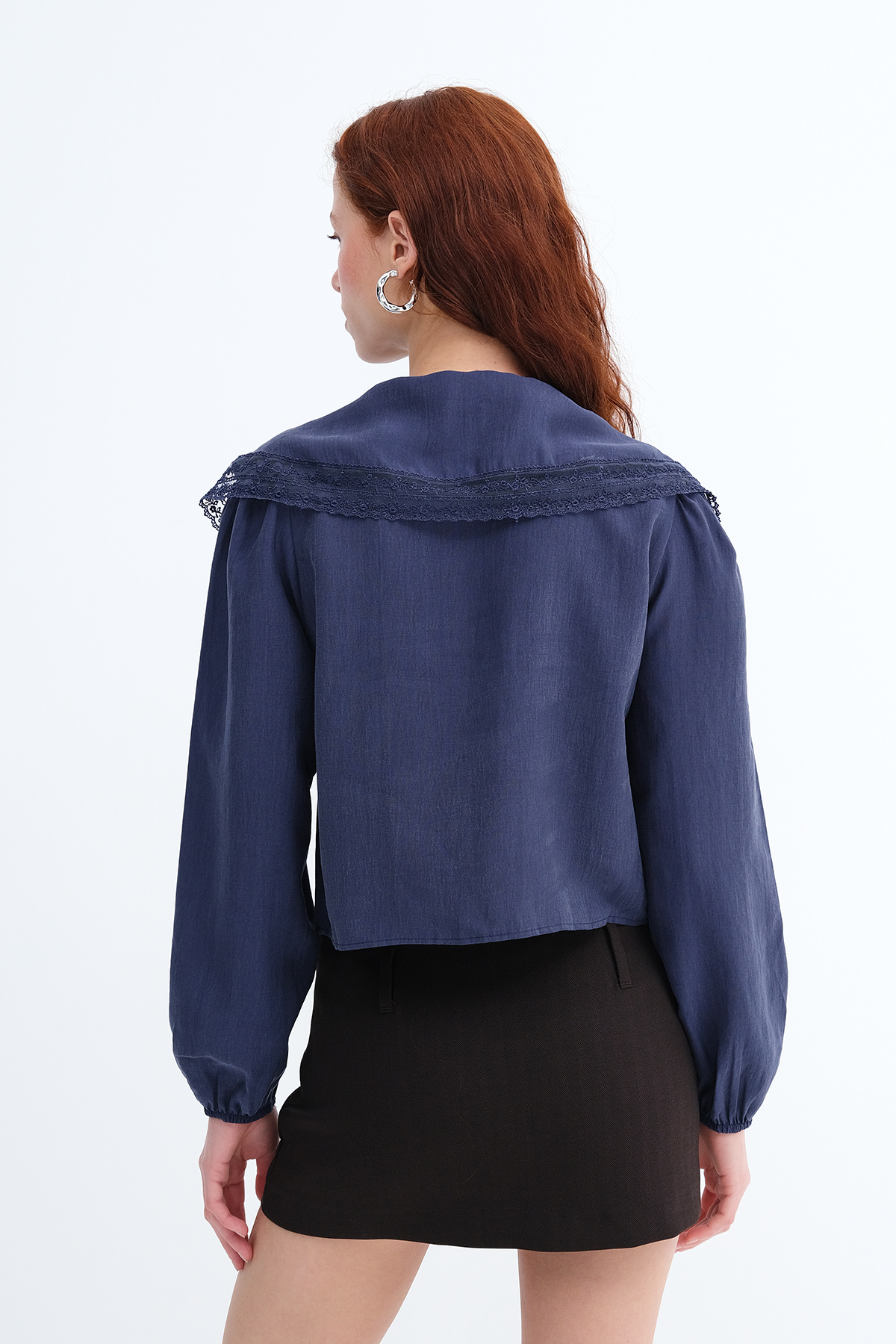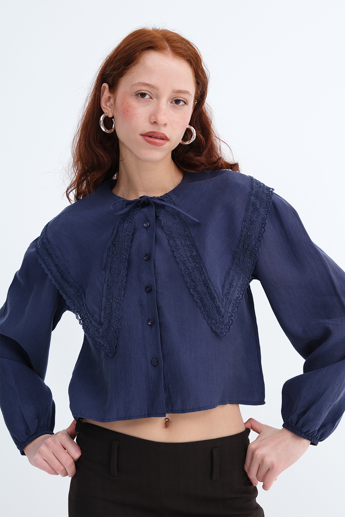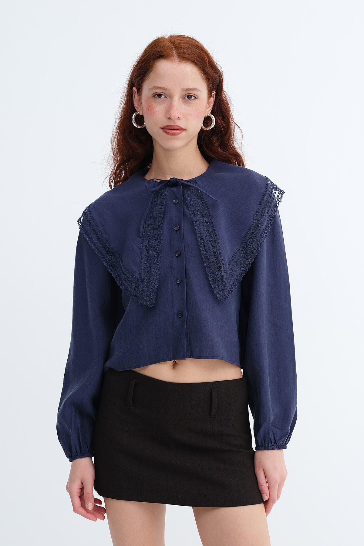 * Bebe yaka, uzun kollu, dantel detaylı,