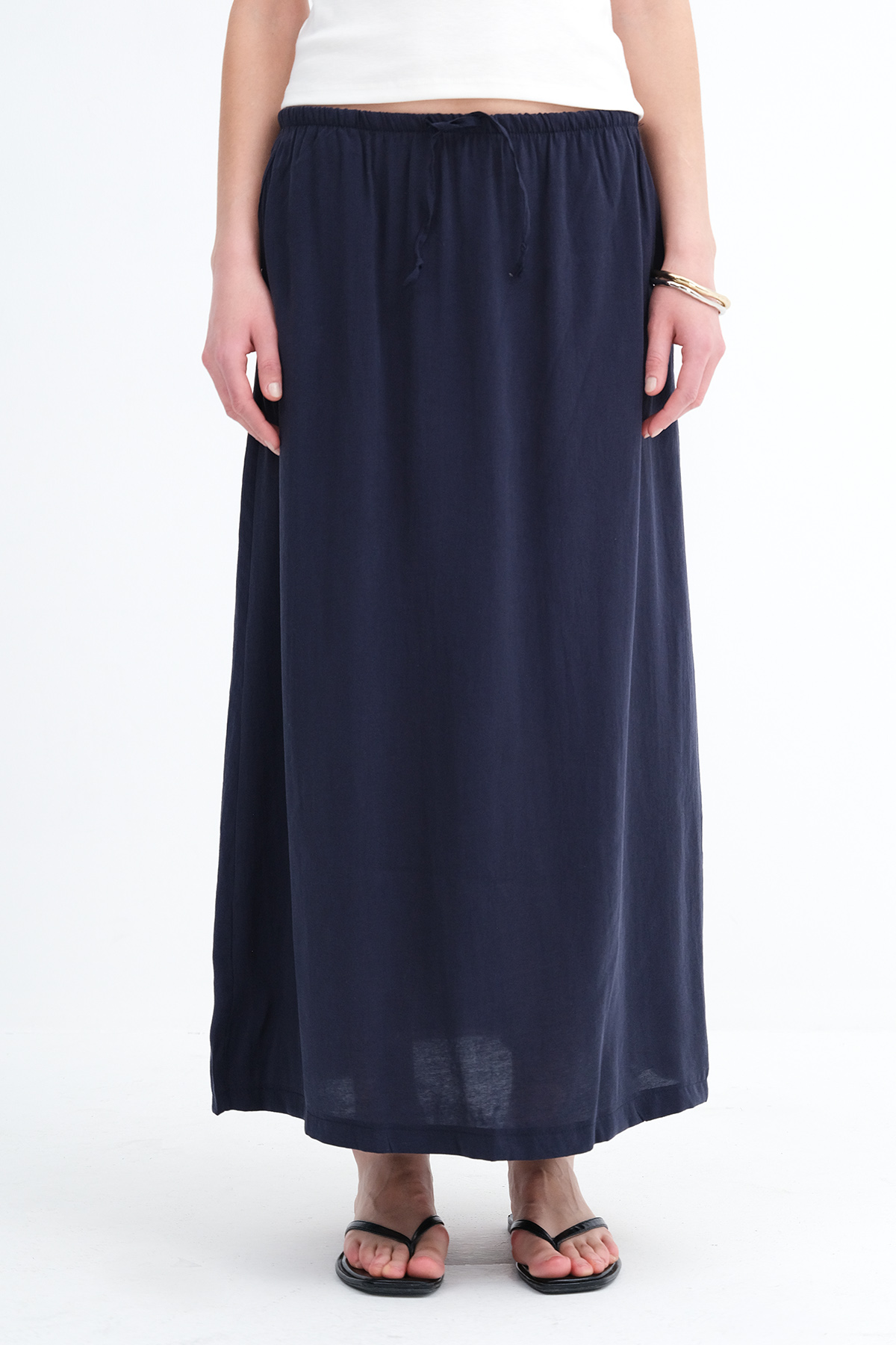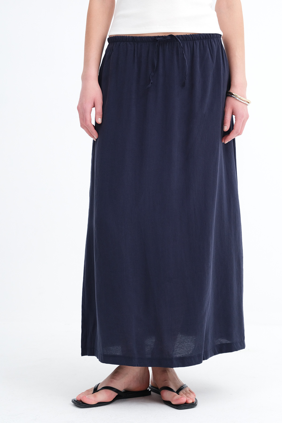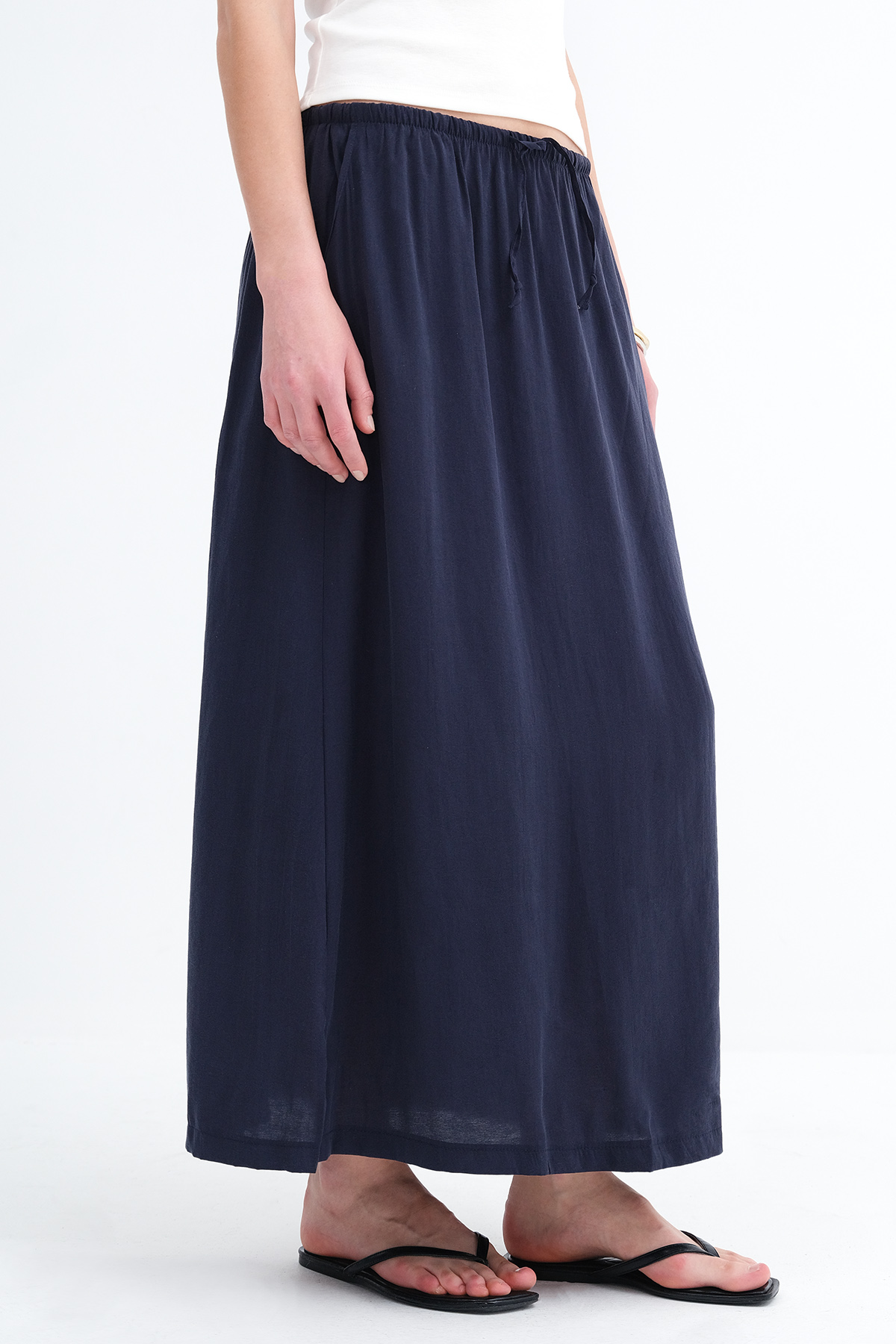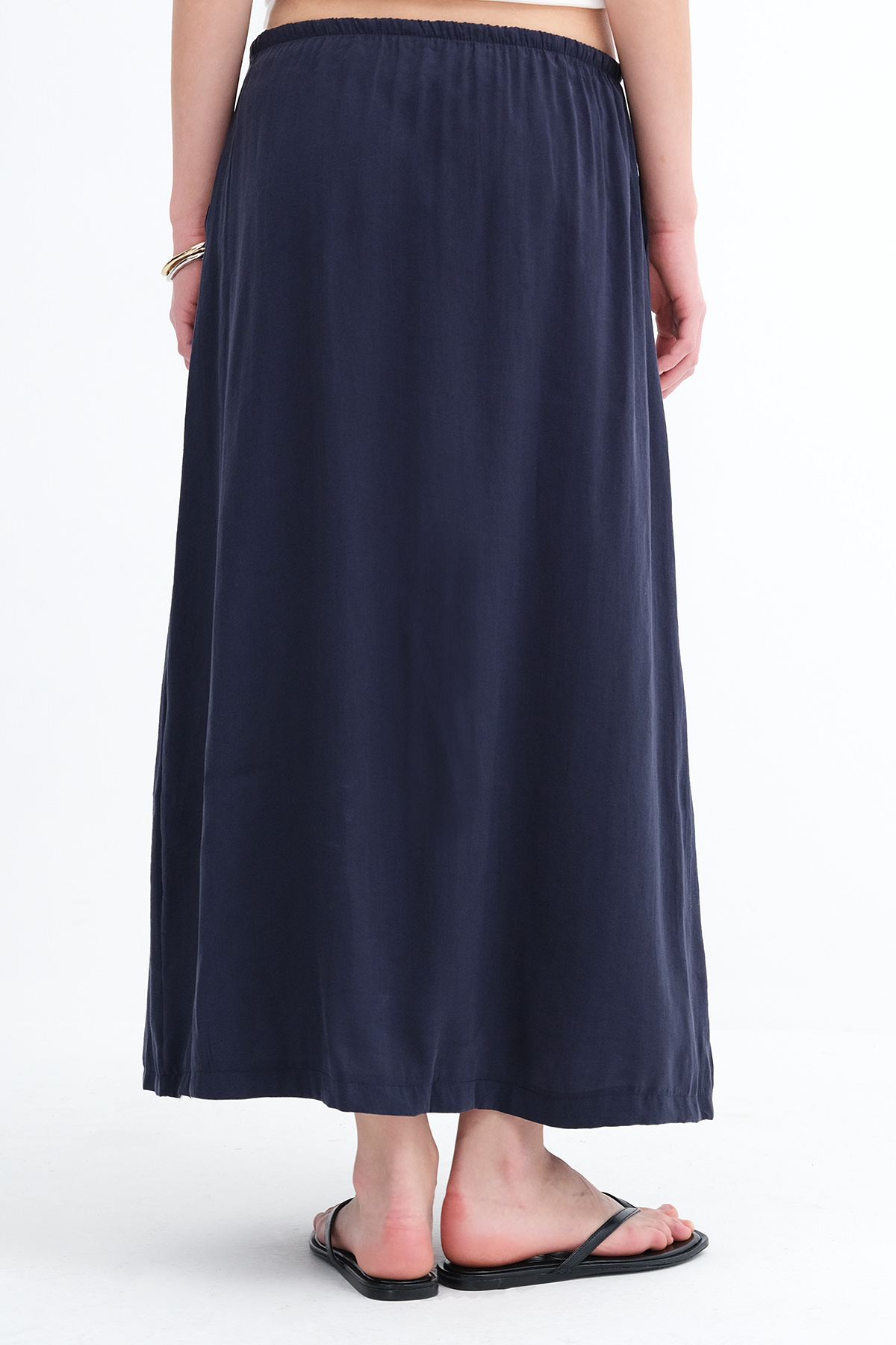 * Yandan cepli, düz renk, astarsız uzun etek,