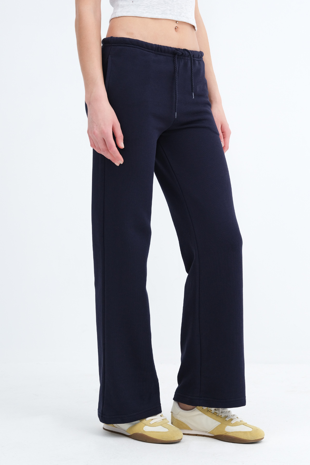 * Yandan cepli, şardonsuz wide leg eşofman,