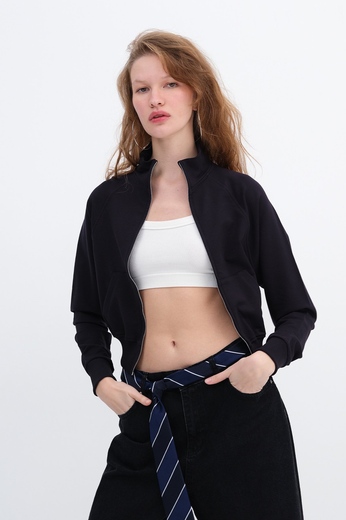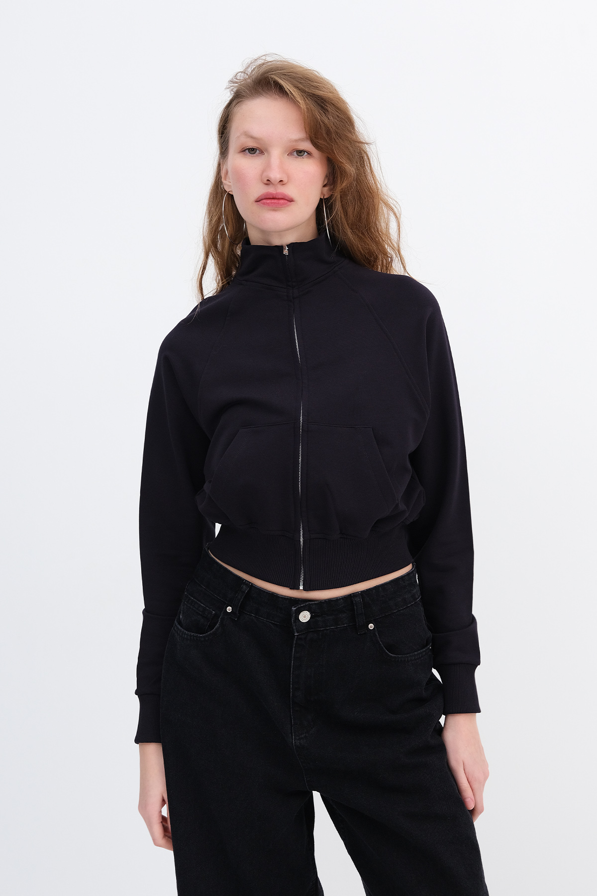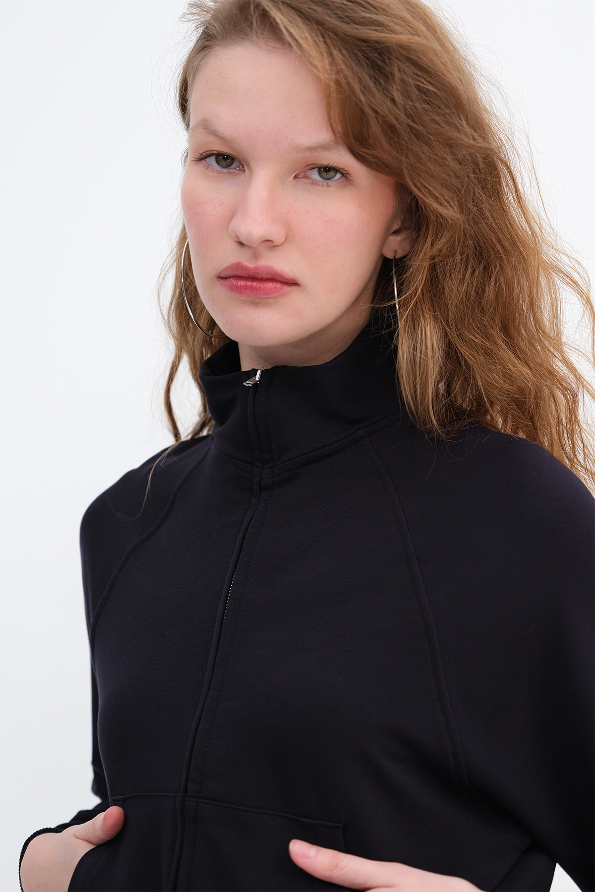 * Dik yaka, uzun kollu, fermuarlı, düz renk,