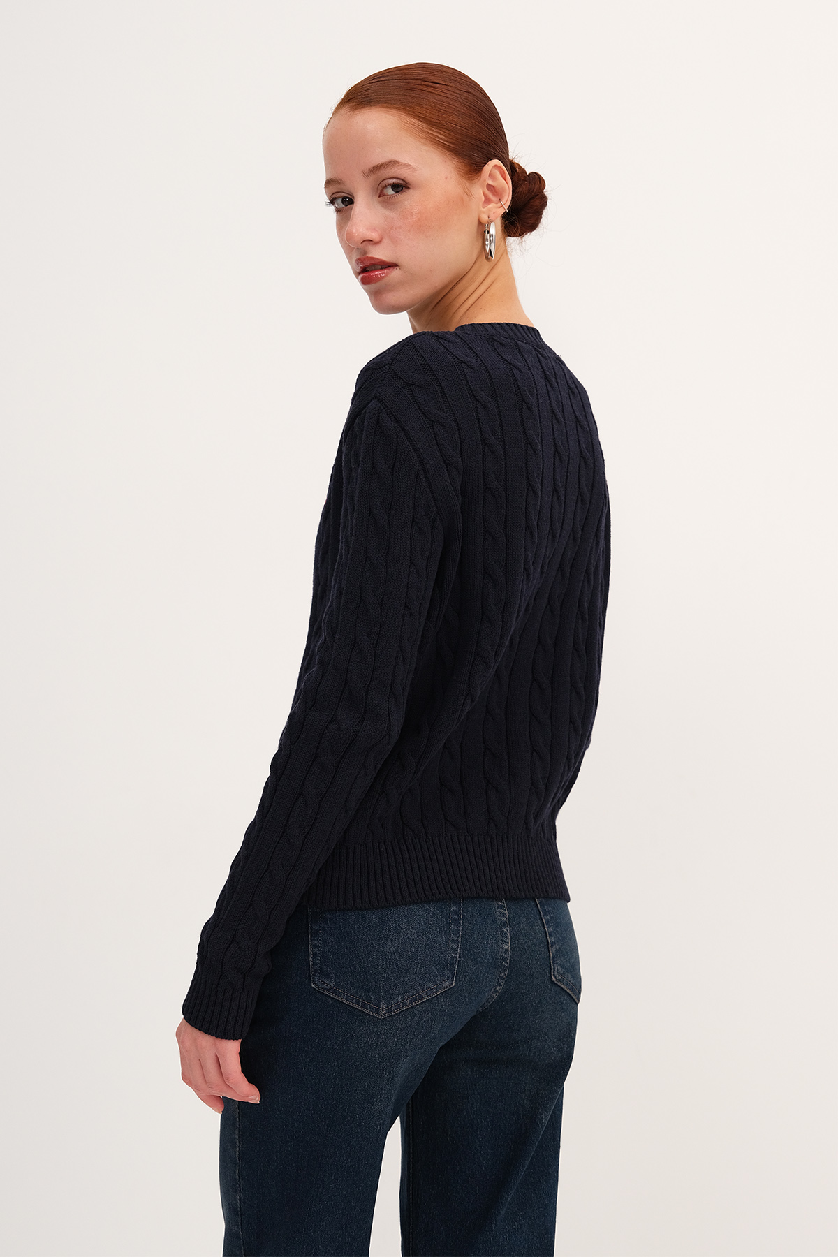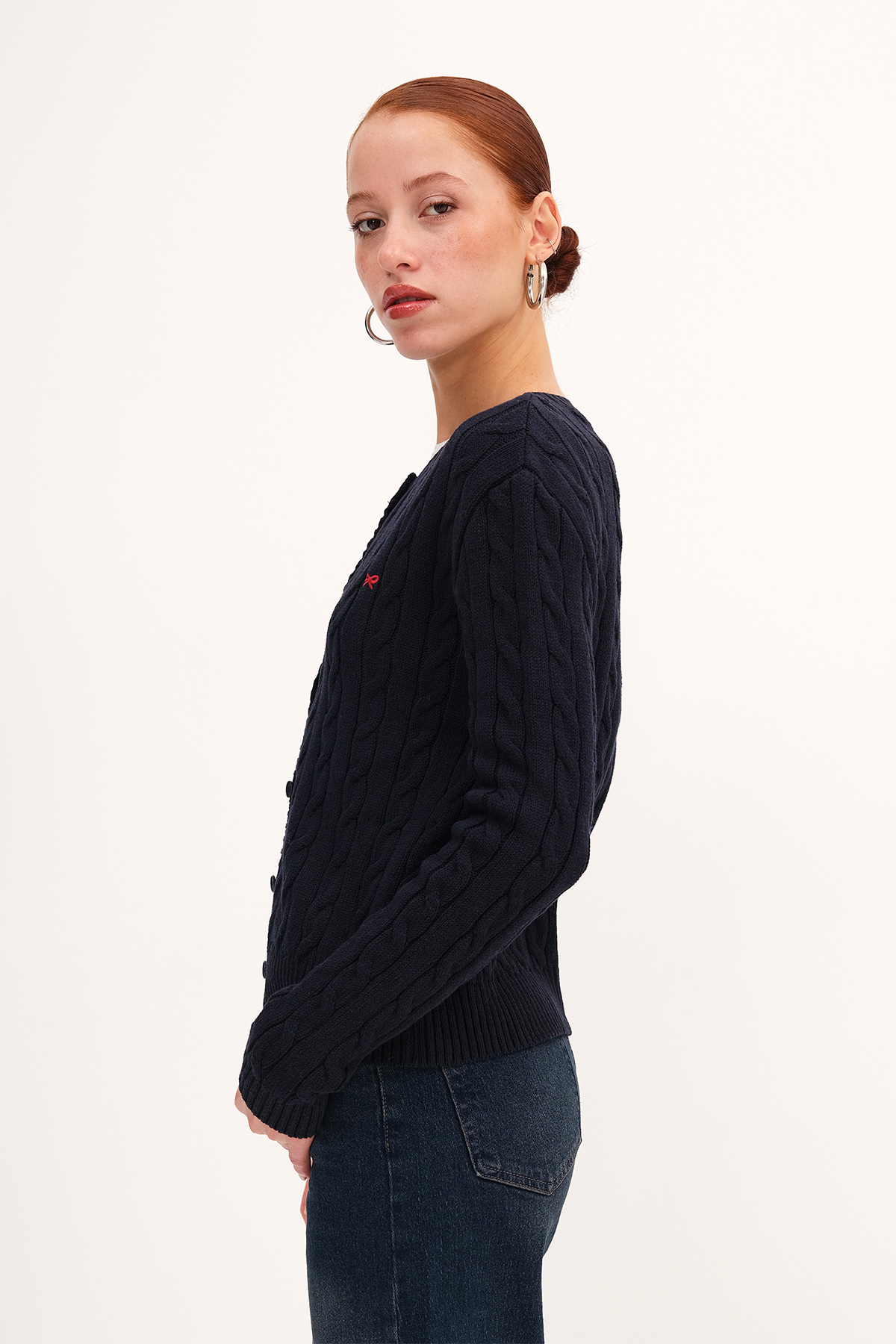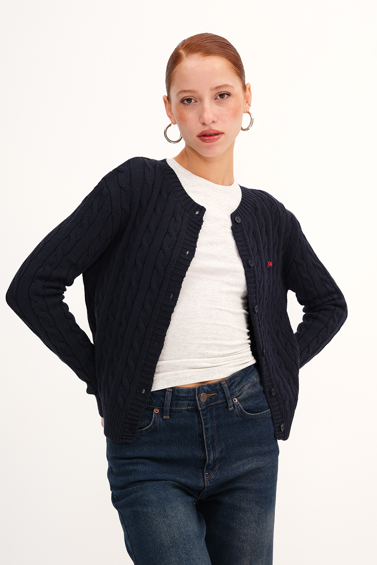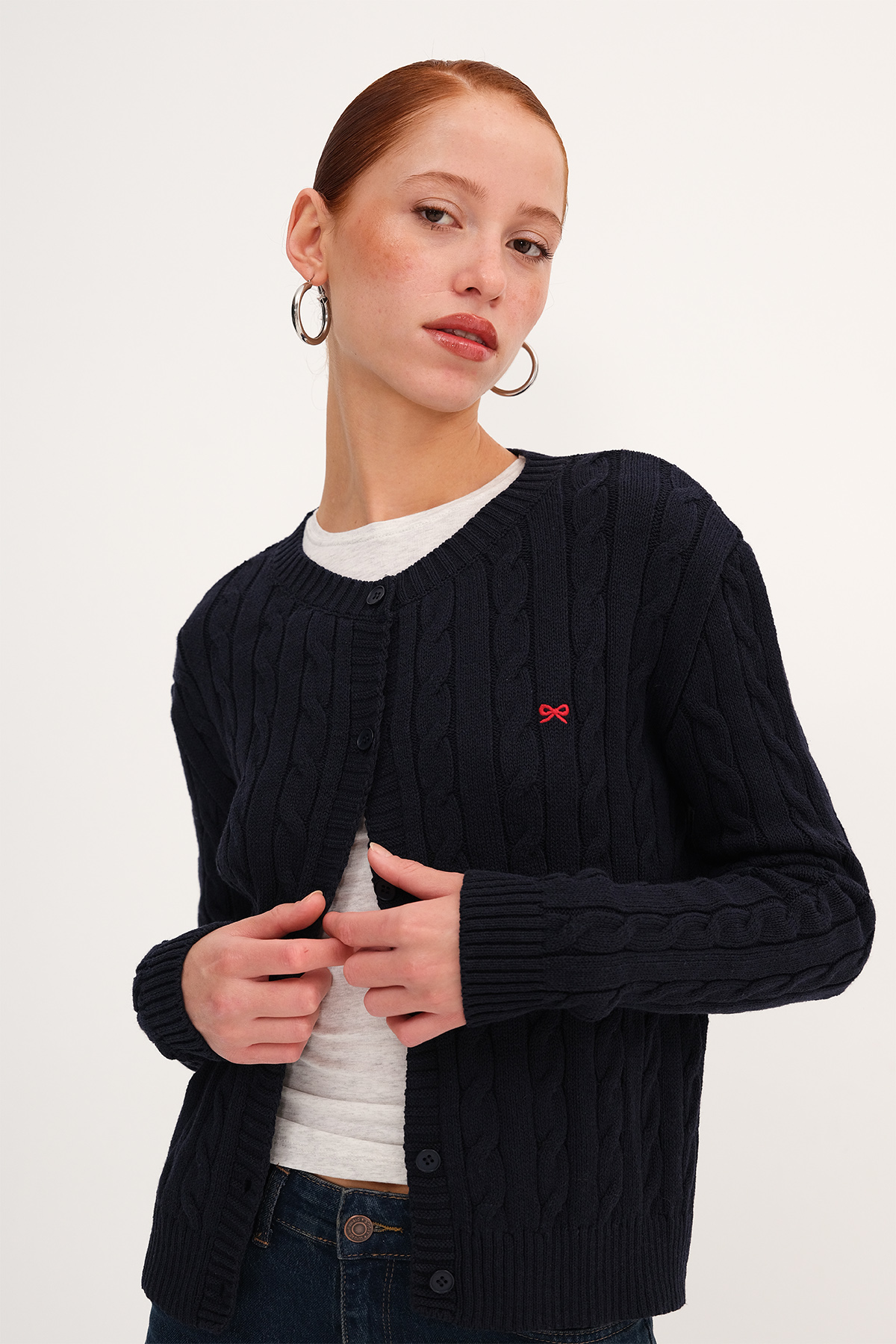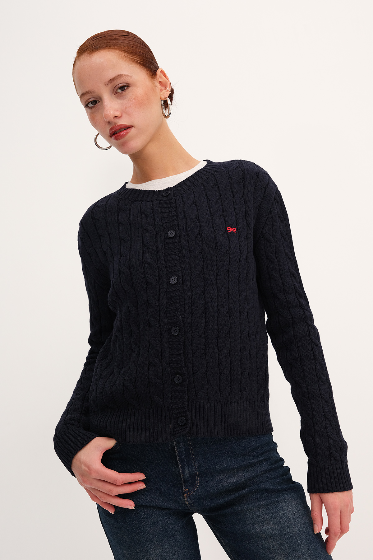 * Bisiklet yaka, uzun kollu,* Düşük omuz, düz renk,* Düğmeli, saç örgüsü hırka,* Ürün içeriği: %60 Pamuk %40 Polyester* Manken üzerindeki ürün standart bedendir.* Numune beden ölçüleri: Boy:55 cm Göğüs: 100 cm Kol boyu: 60 cm (1-3 cm değişiklik gösterebilir)* Ürün çekimlerinde renkler, ışık farklılığından dolayı değişkenlik gösterebilir.