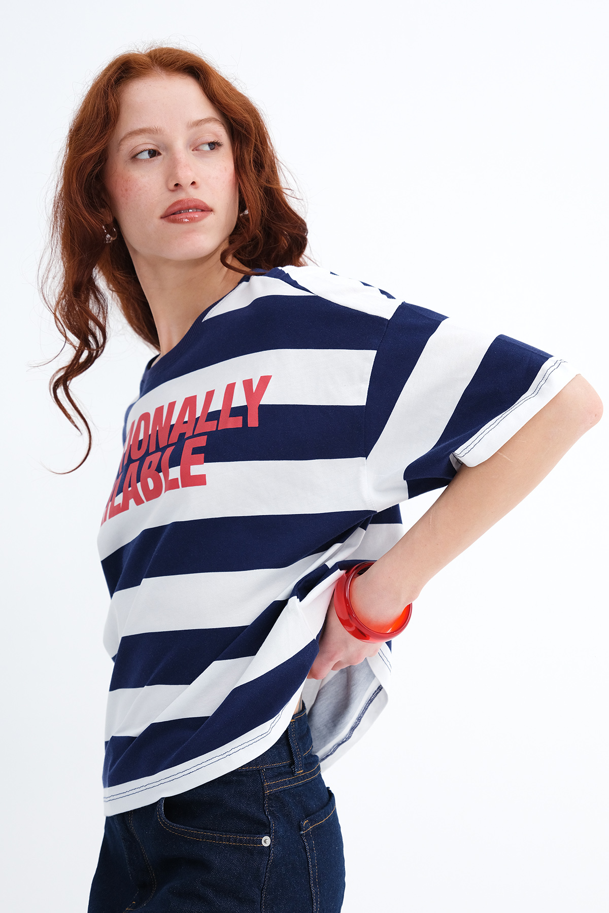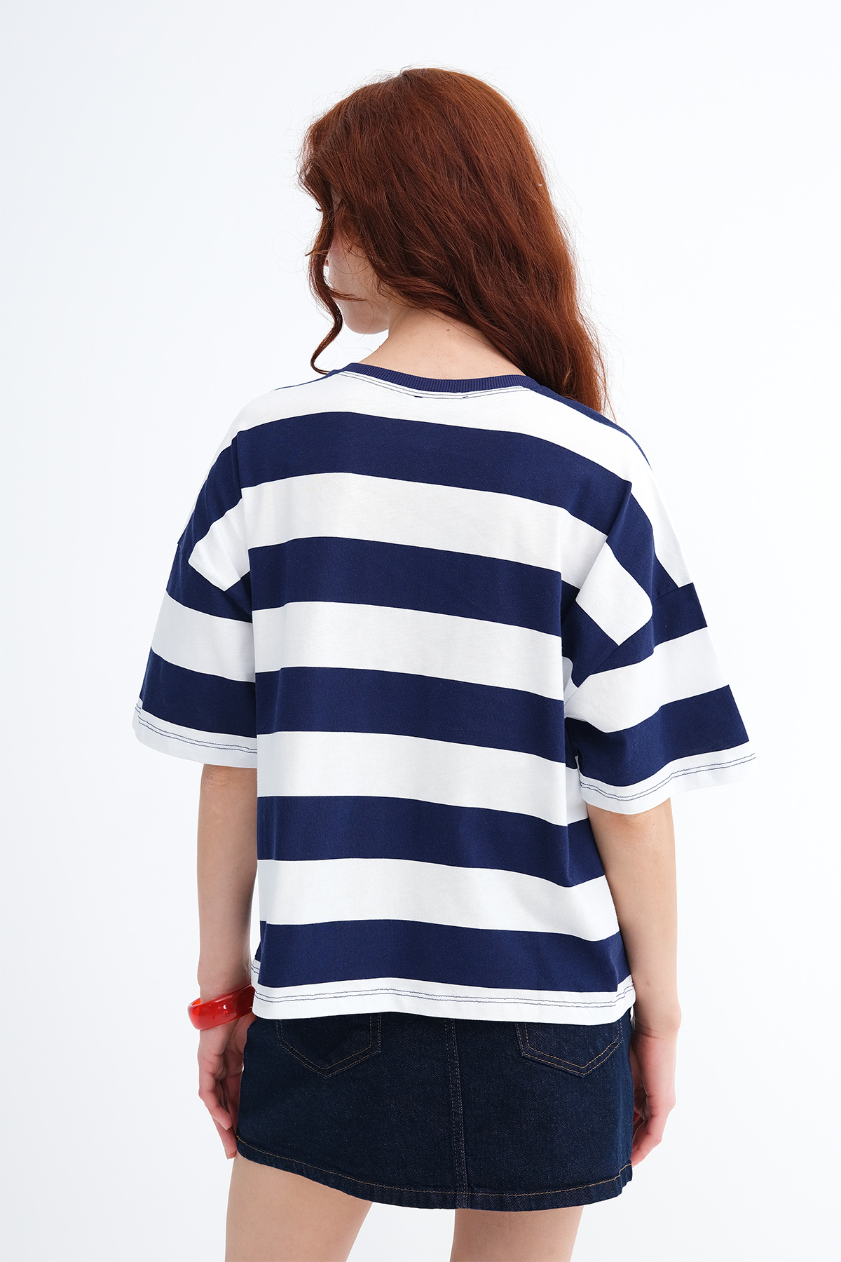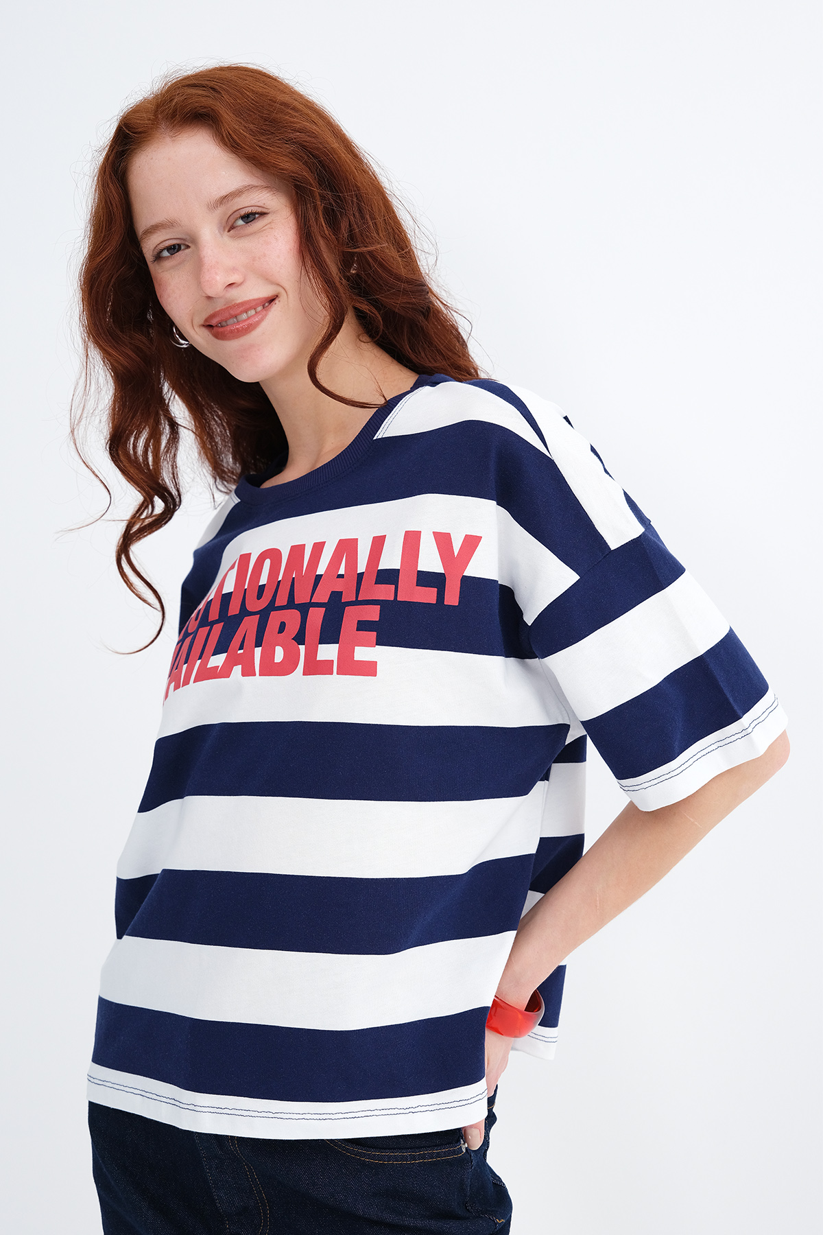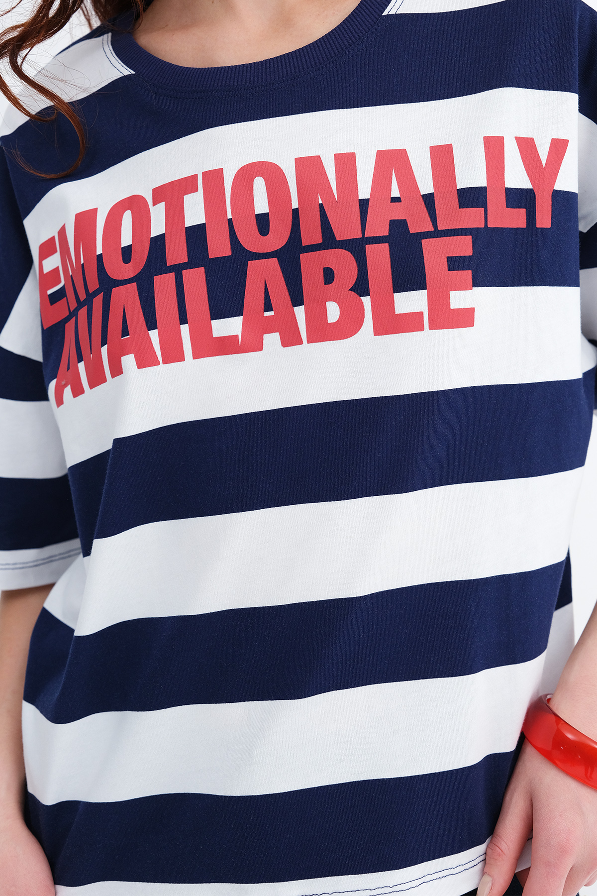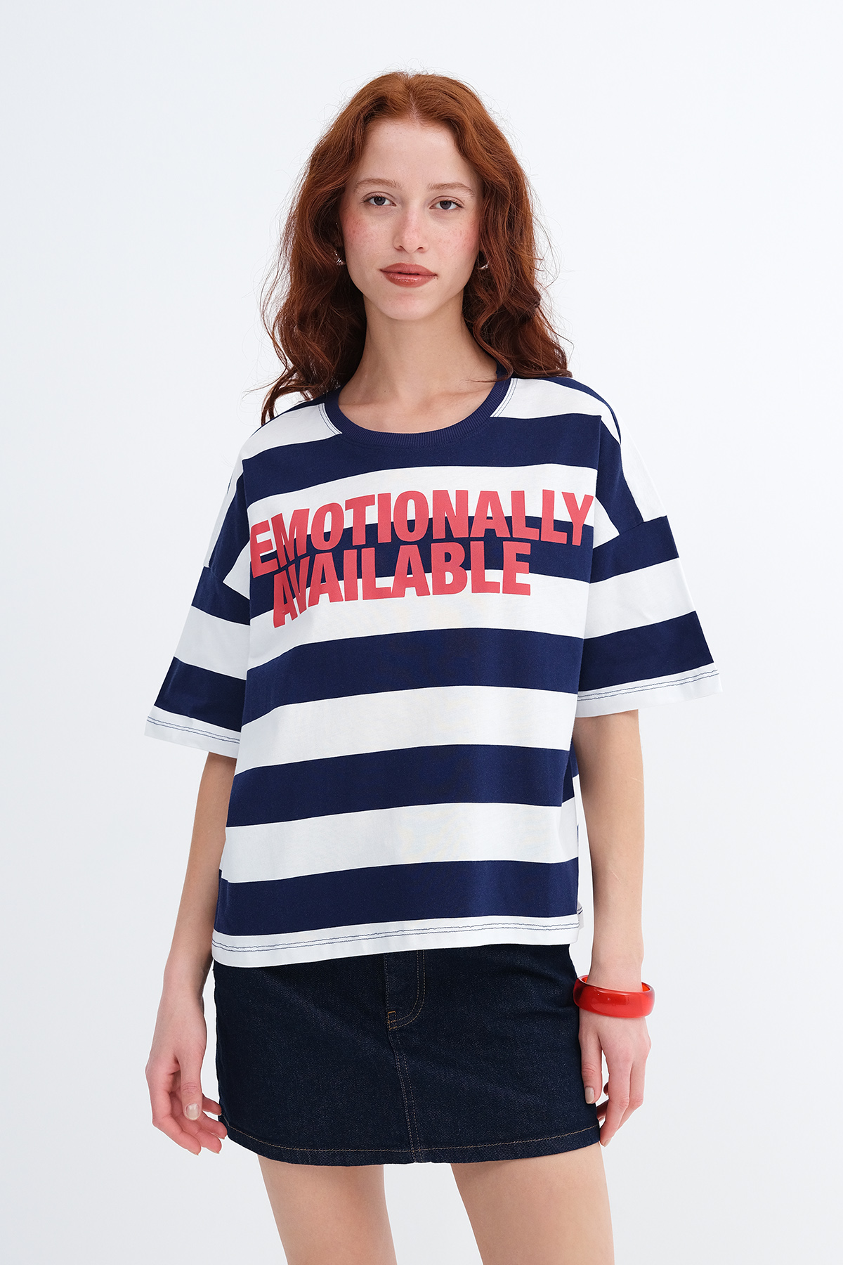 * Çizgili, baskılı t-shirt,