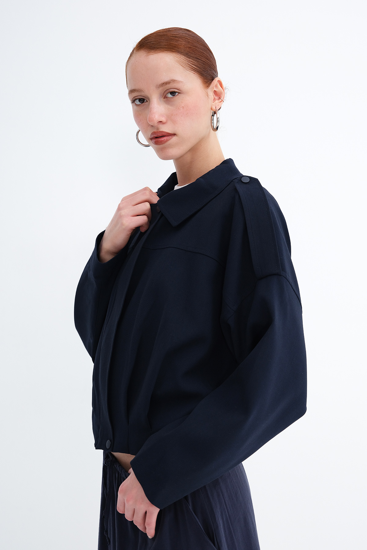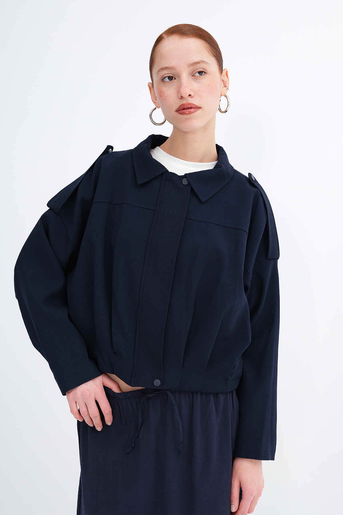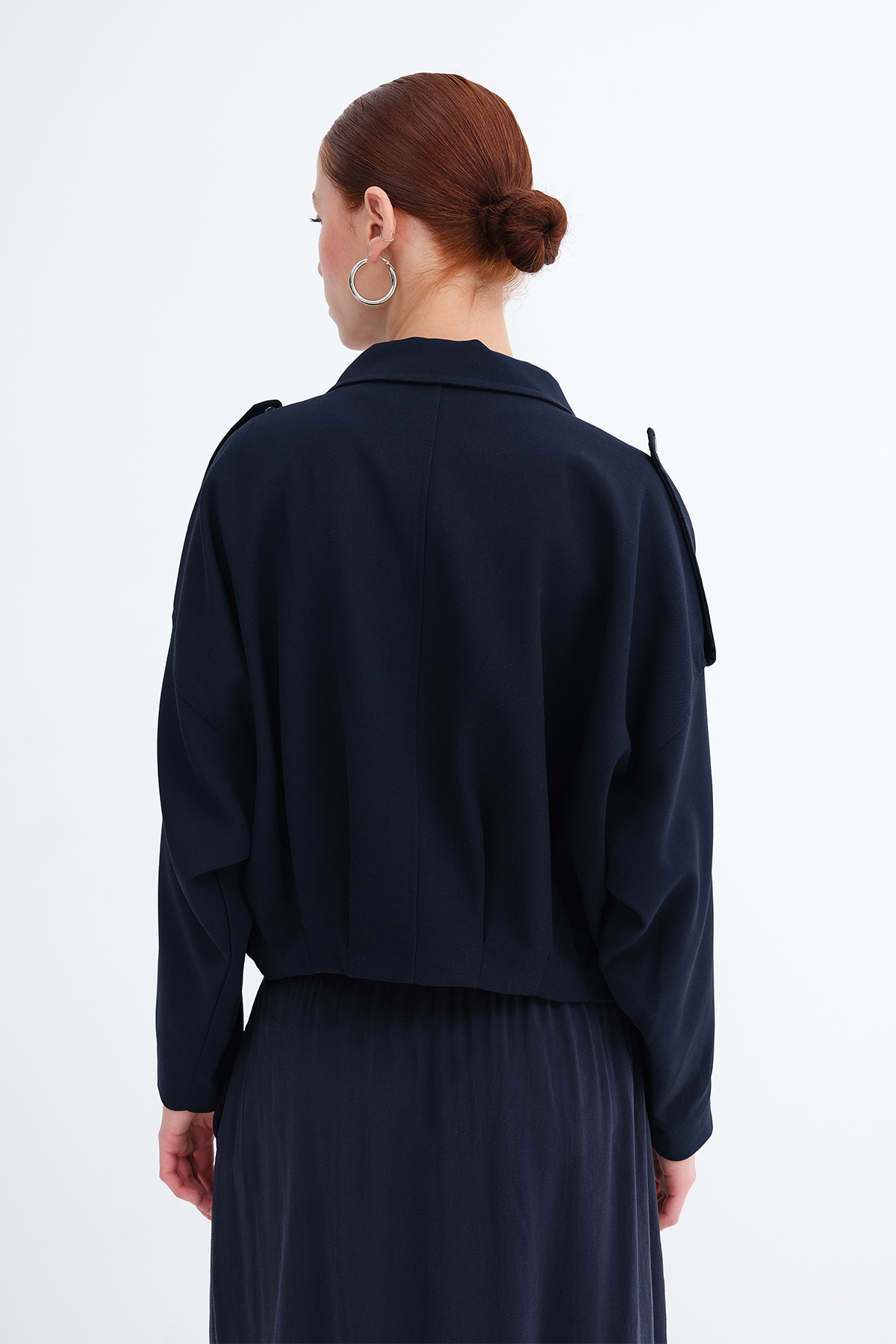 * Ceket yaka, uzun kollu, düşük omuz,