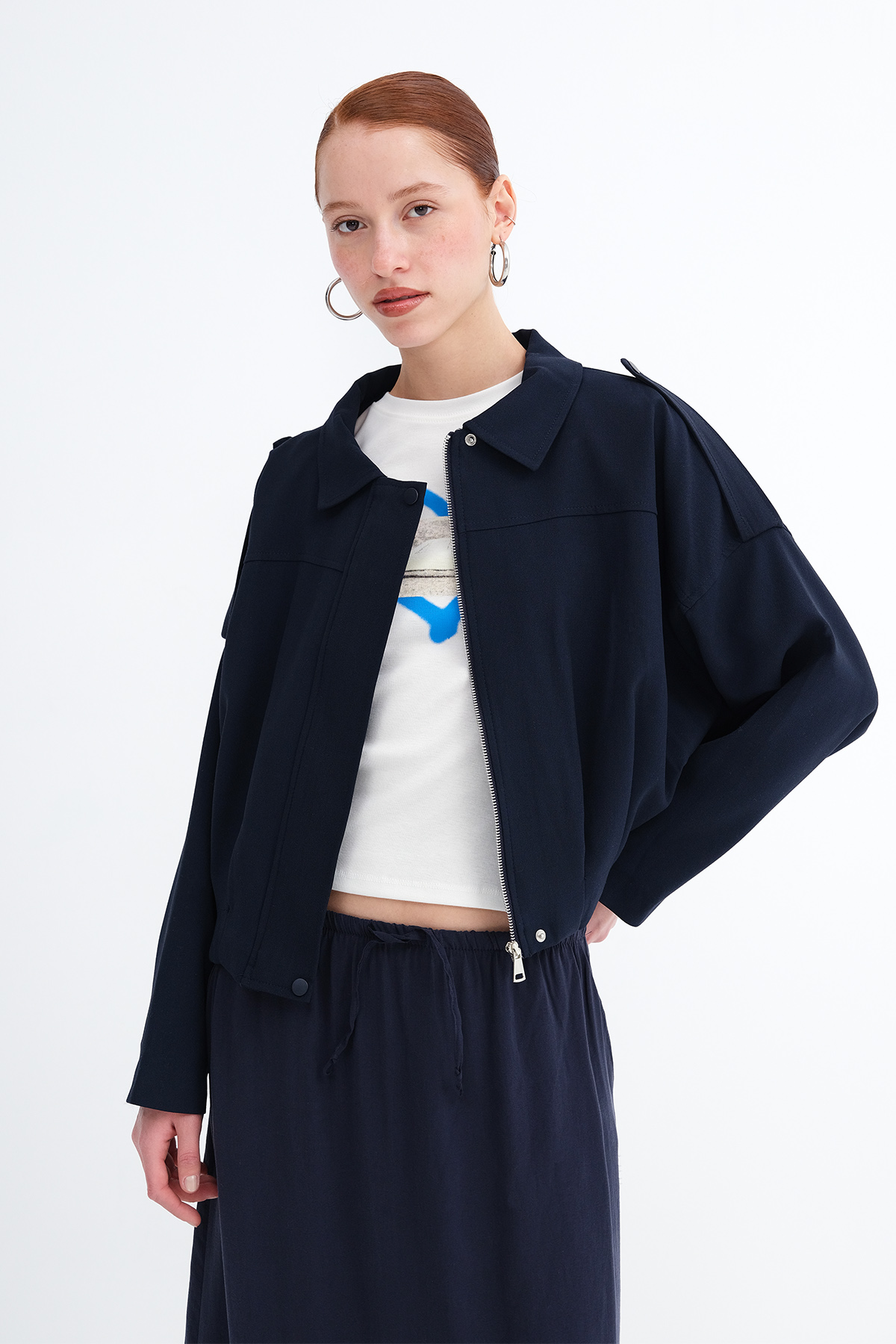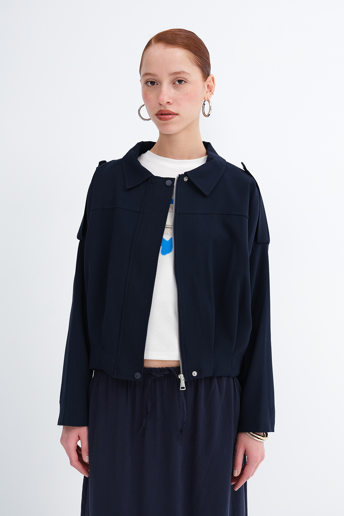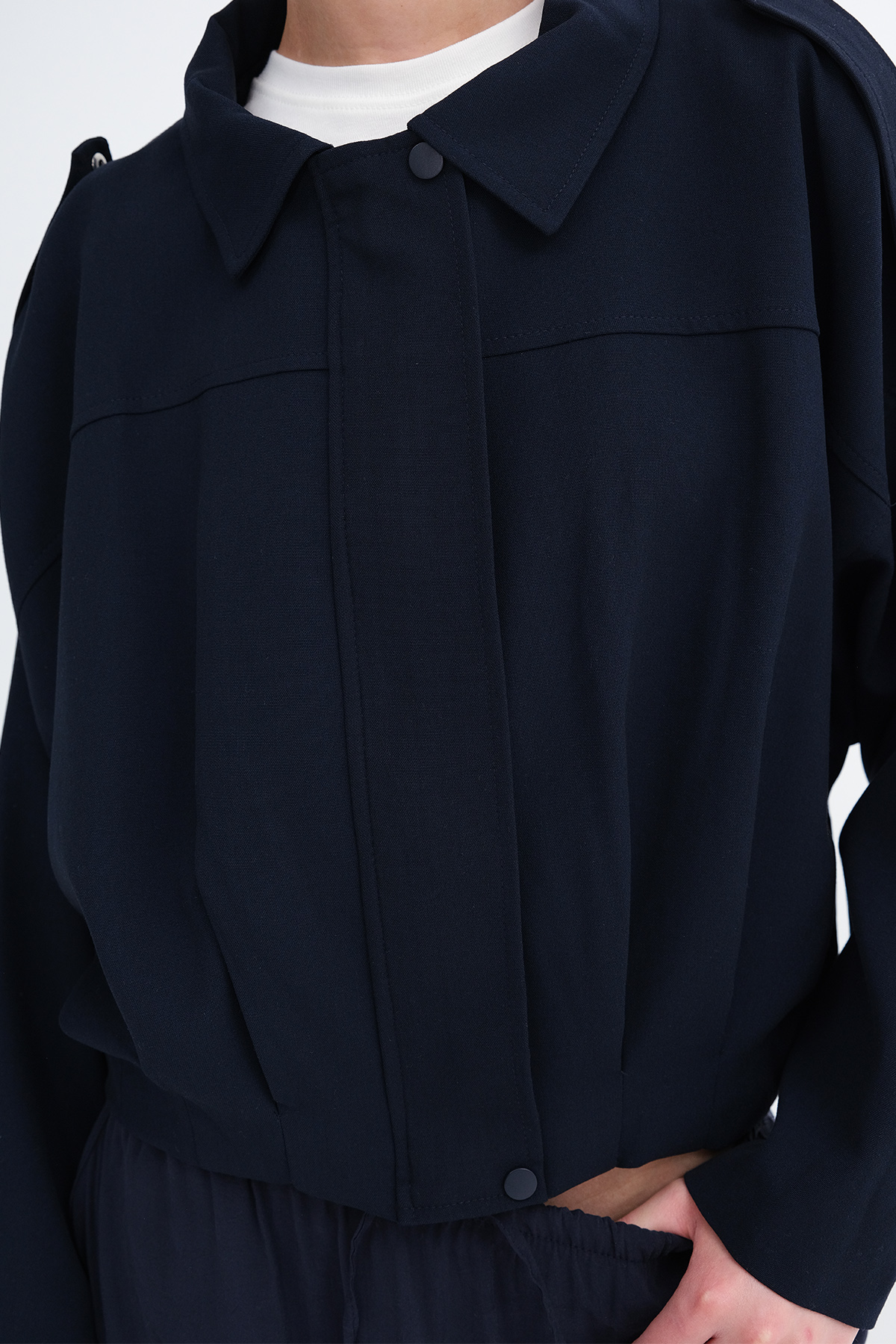 * Ceket yaka, uzun kollu, düşük omuz,