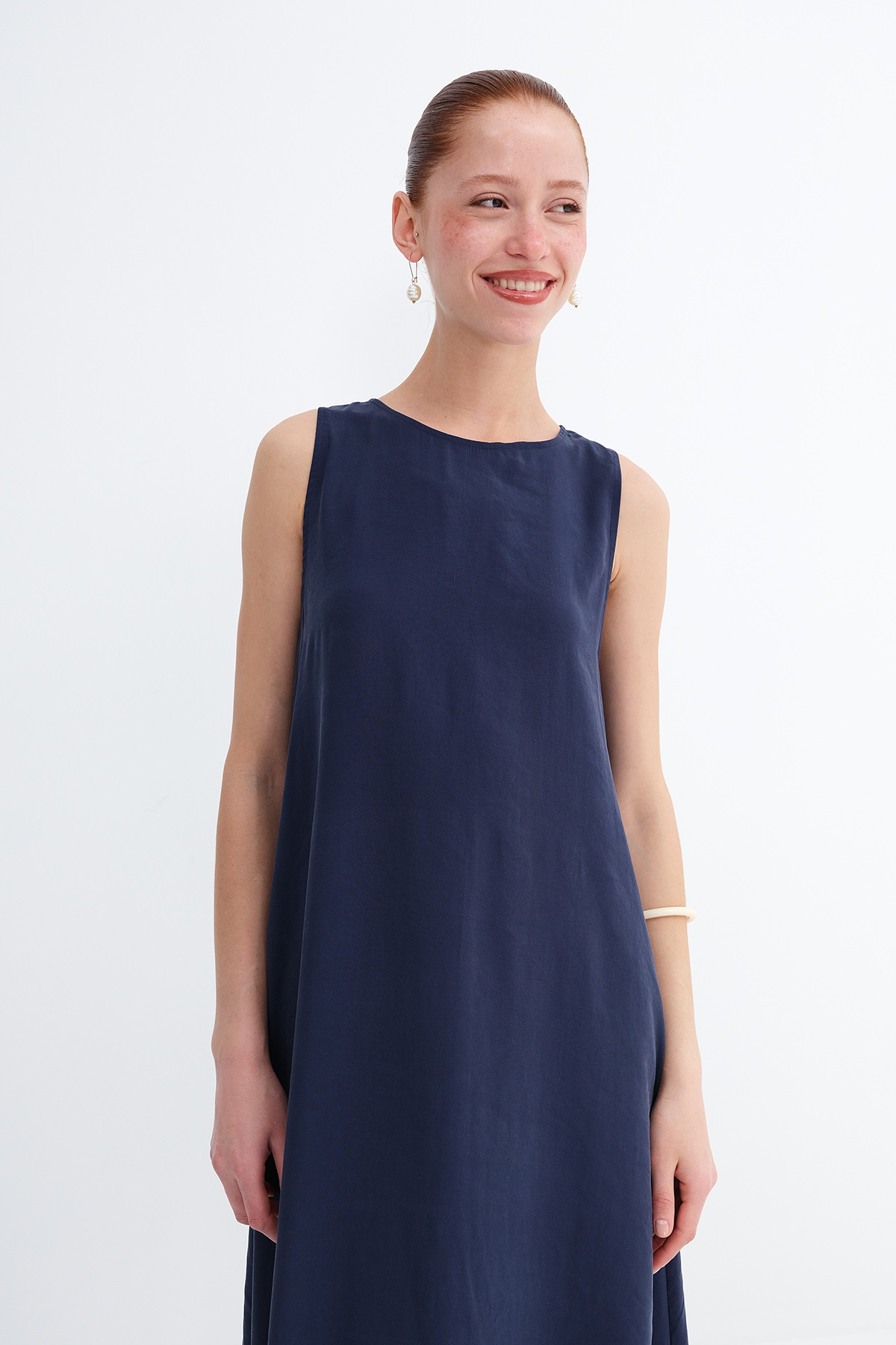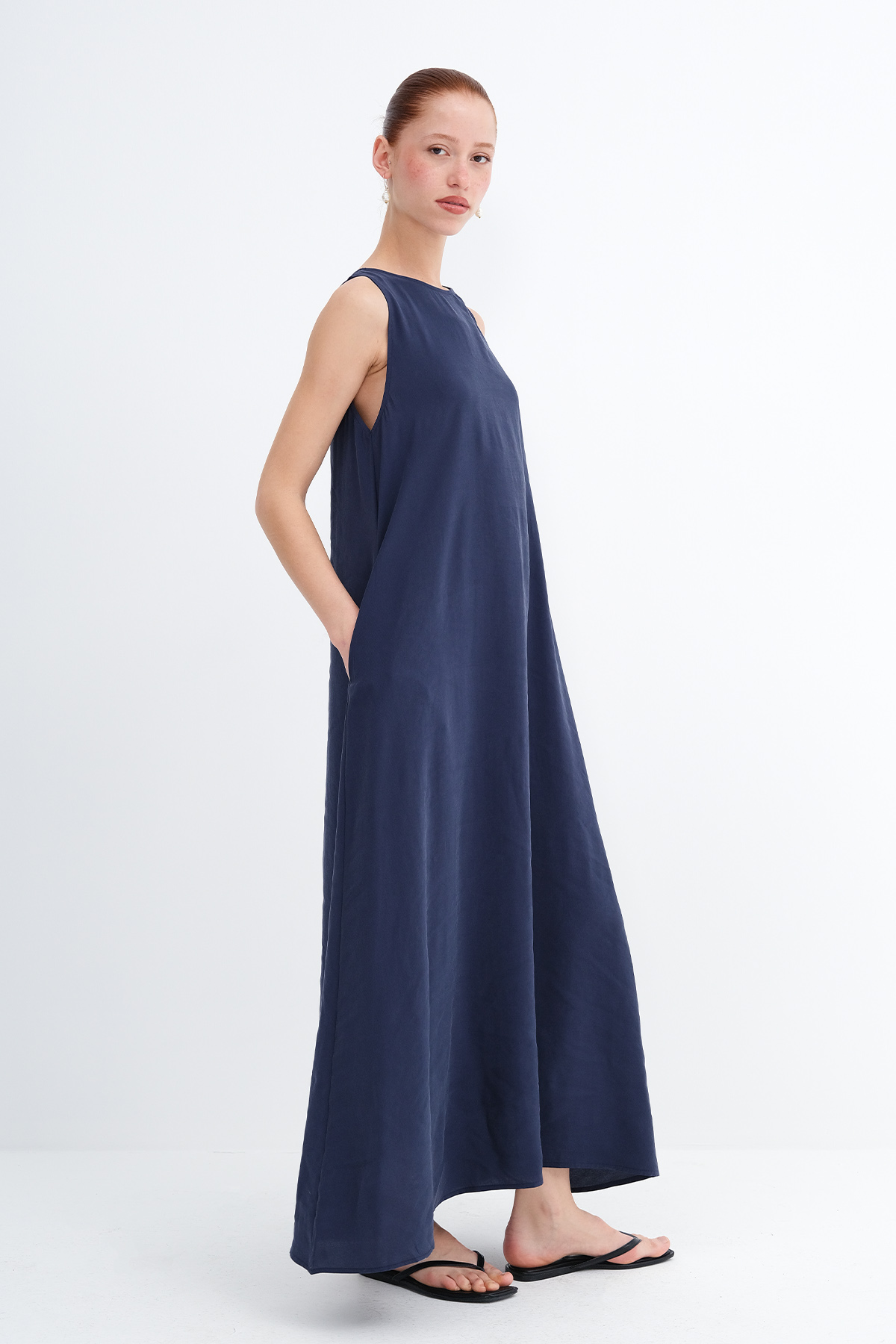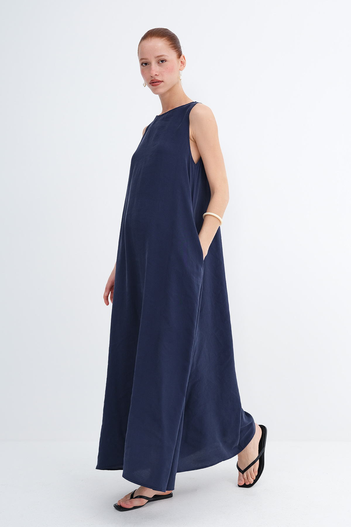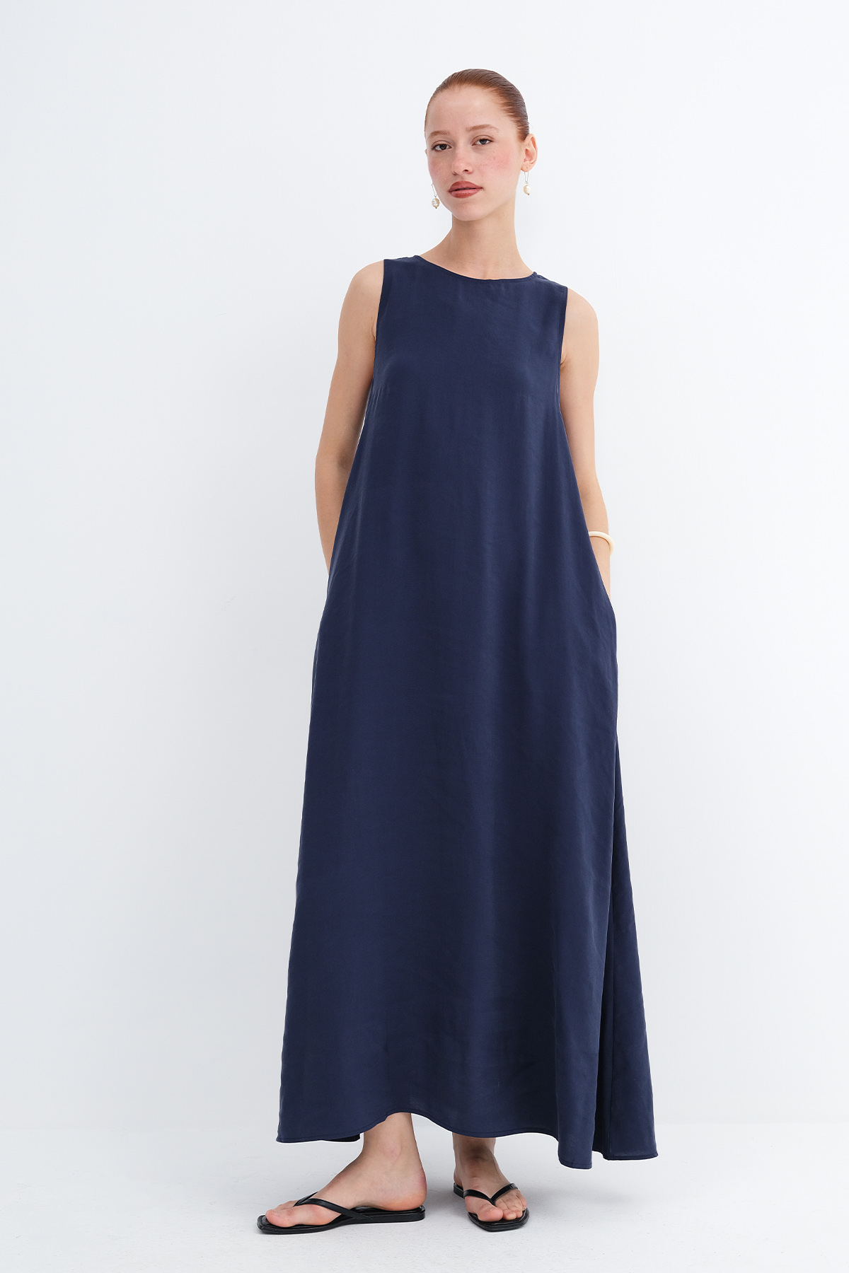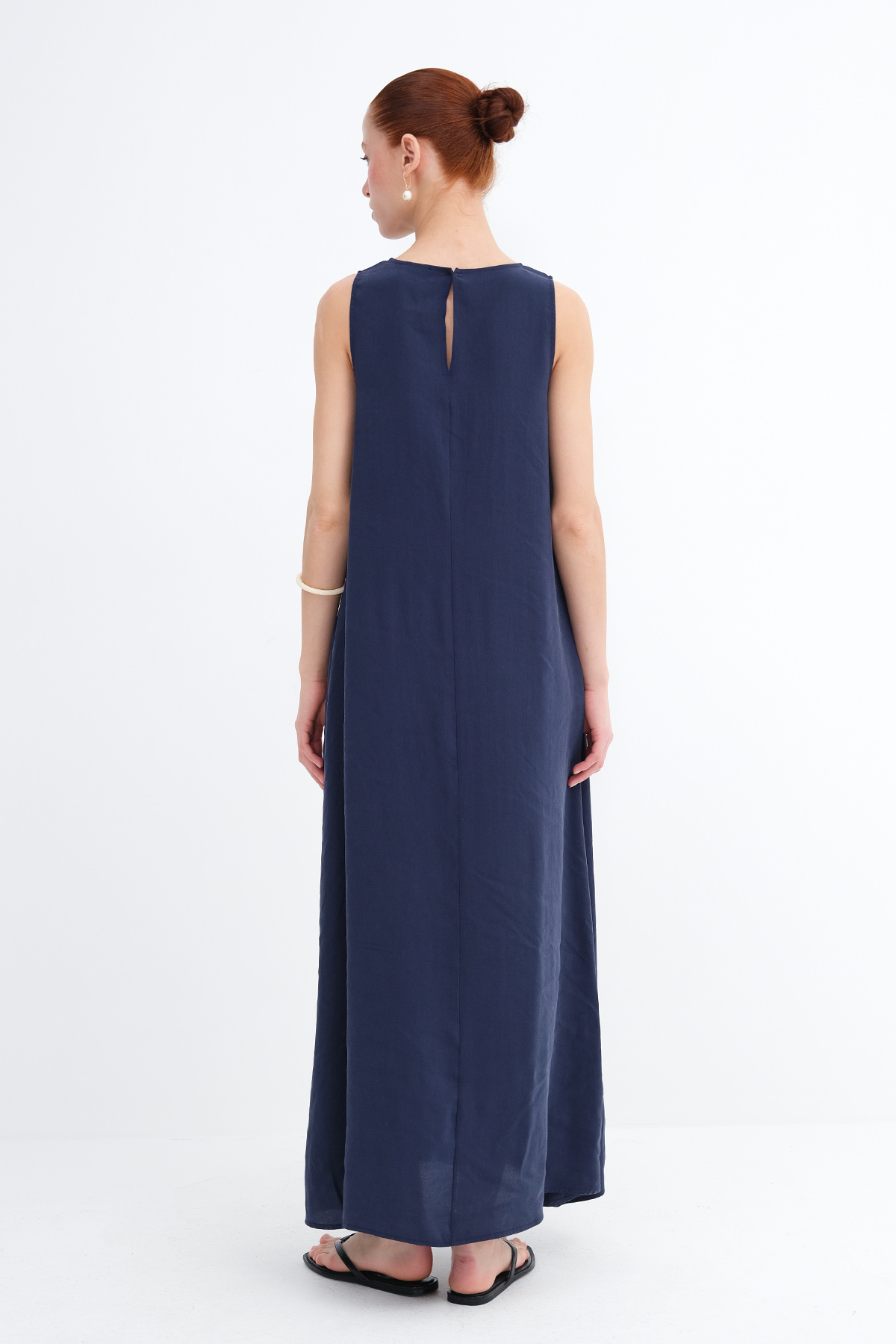 * Düz renk, astarsız uzun elbise,