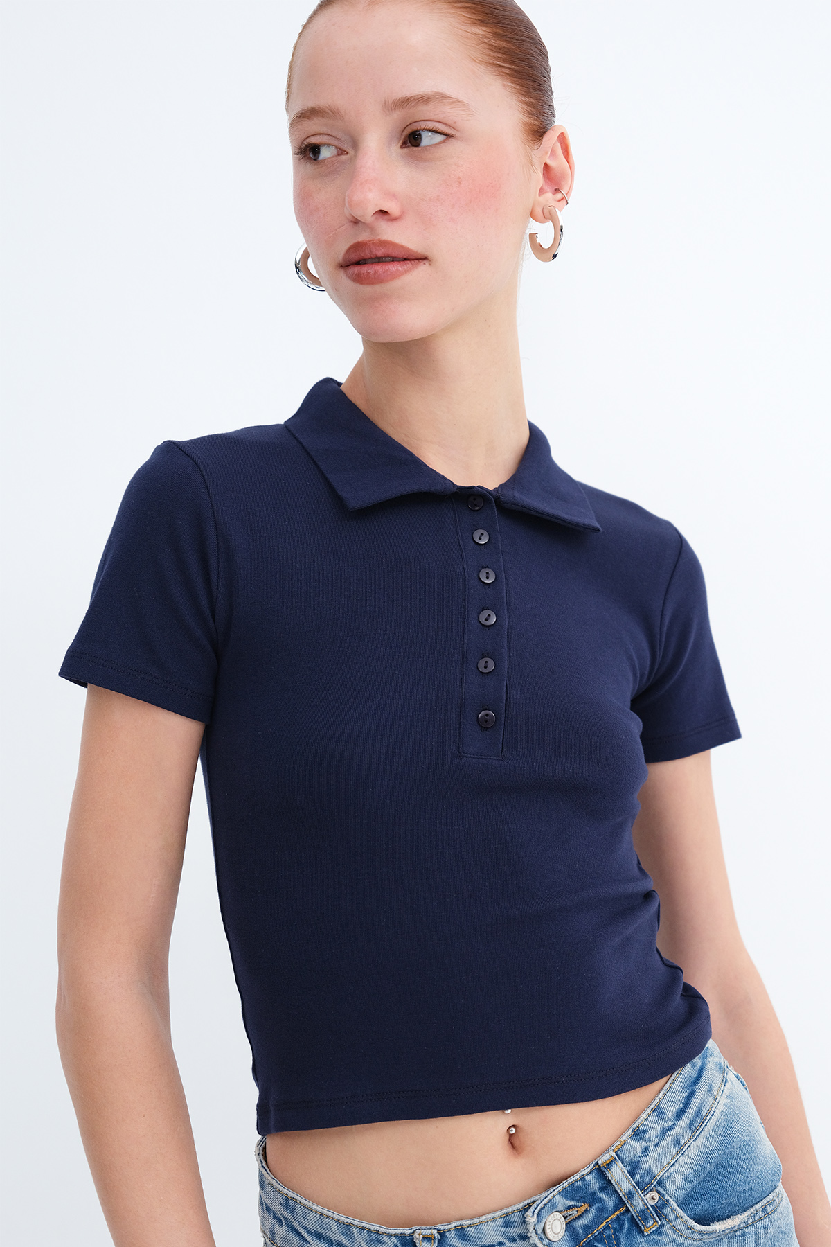 * Düğmeli, rahat kalıp t-shirt,