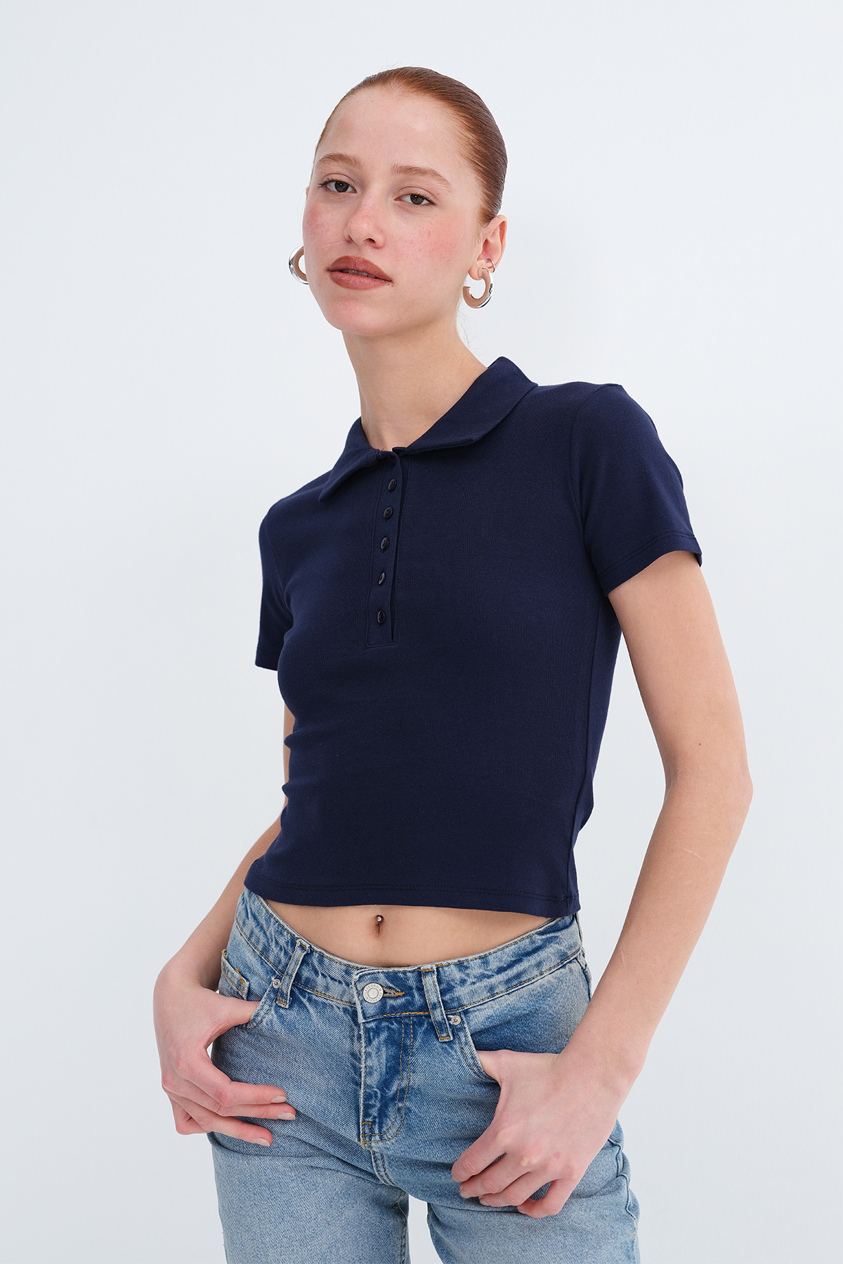 * Polo yaka, kısa kollu,