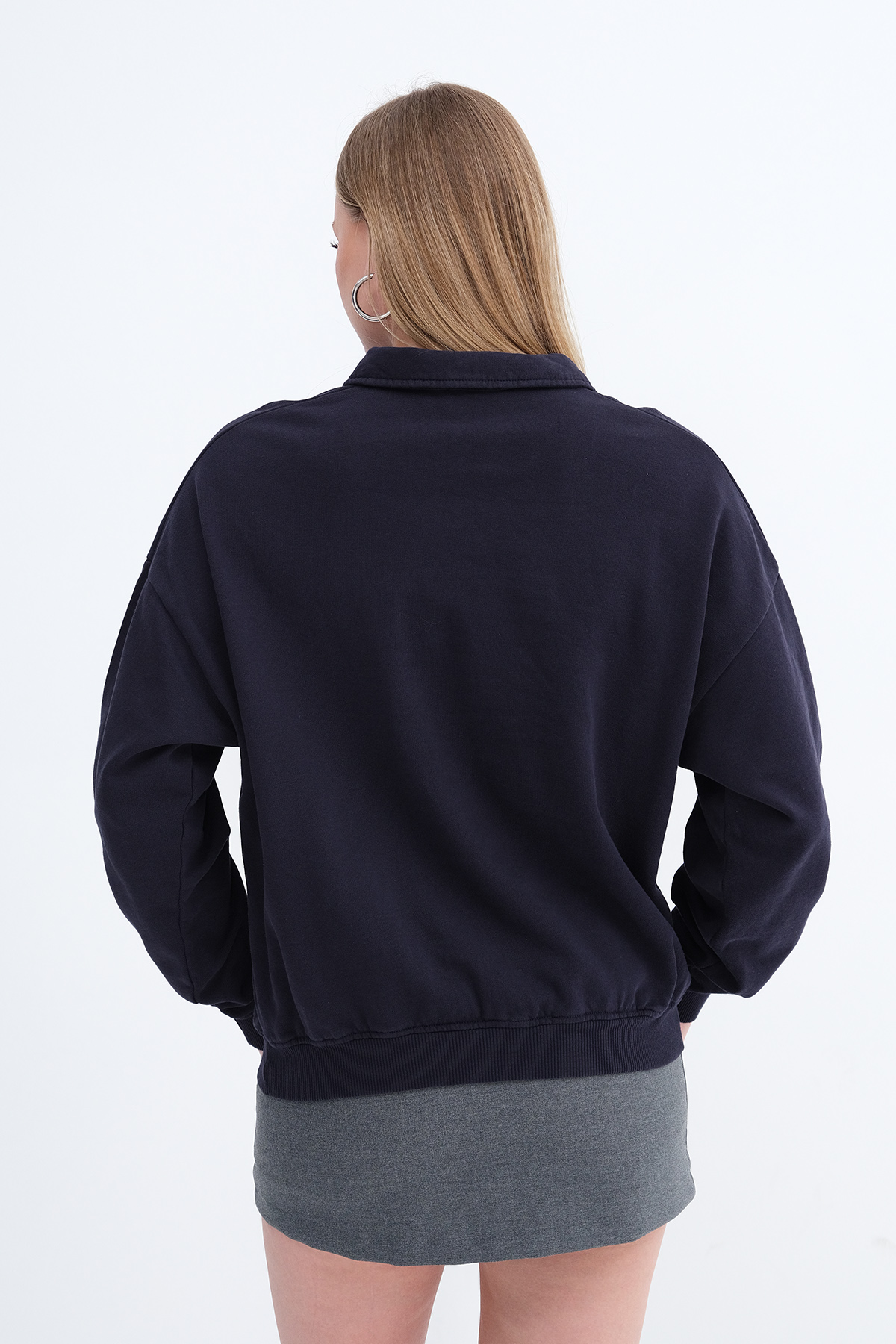 * Yakası düğmeli,şardonlu, içi yumuşak tüylü sweatshirt,