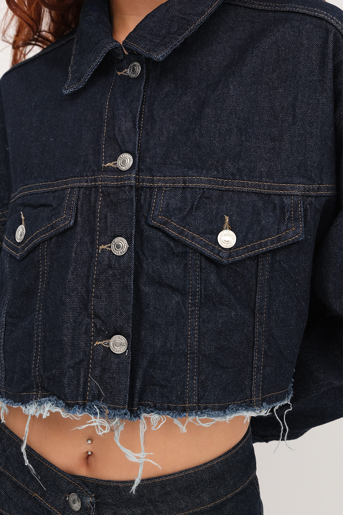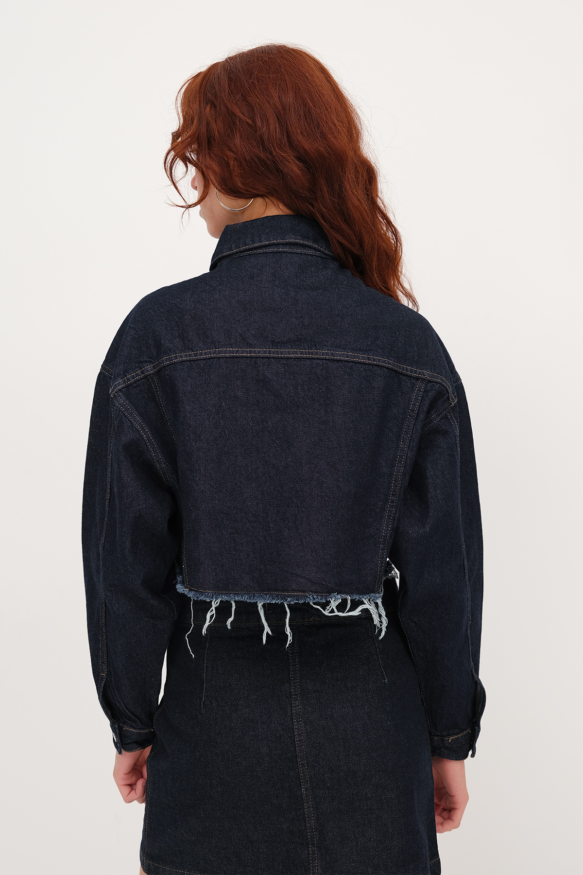 * Metal düğmeli, püsküllü, crop kot ceket,
