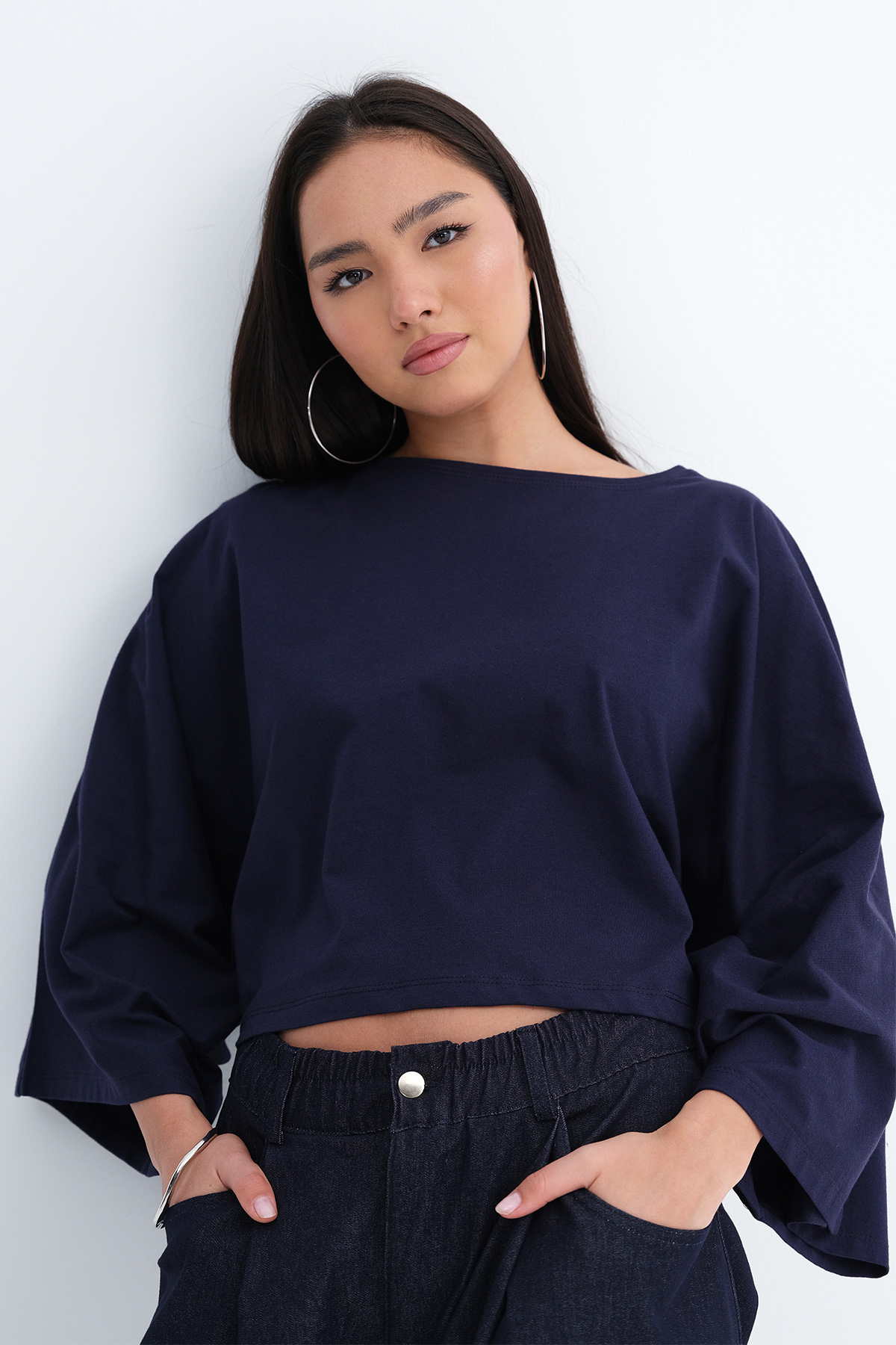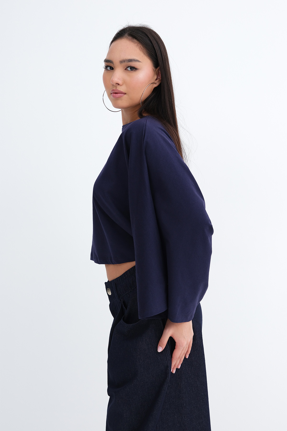 * Bisiklet yaka, uzun kollu, düşük omuz,