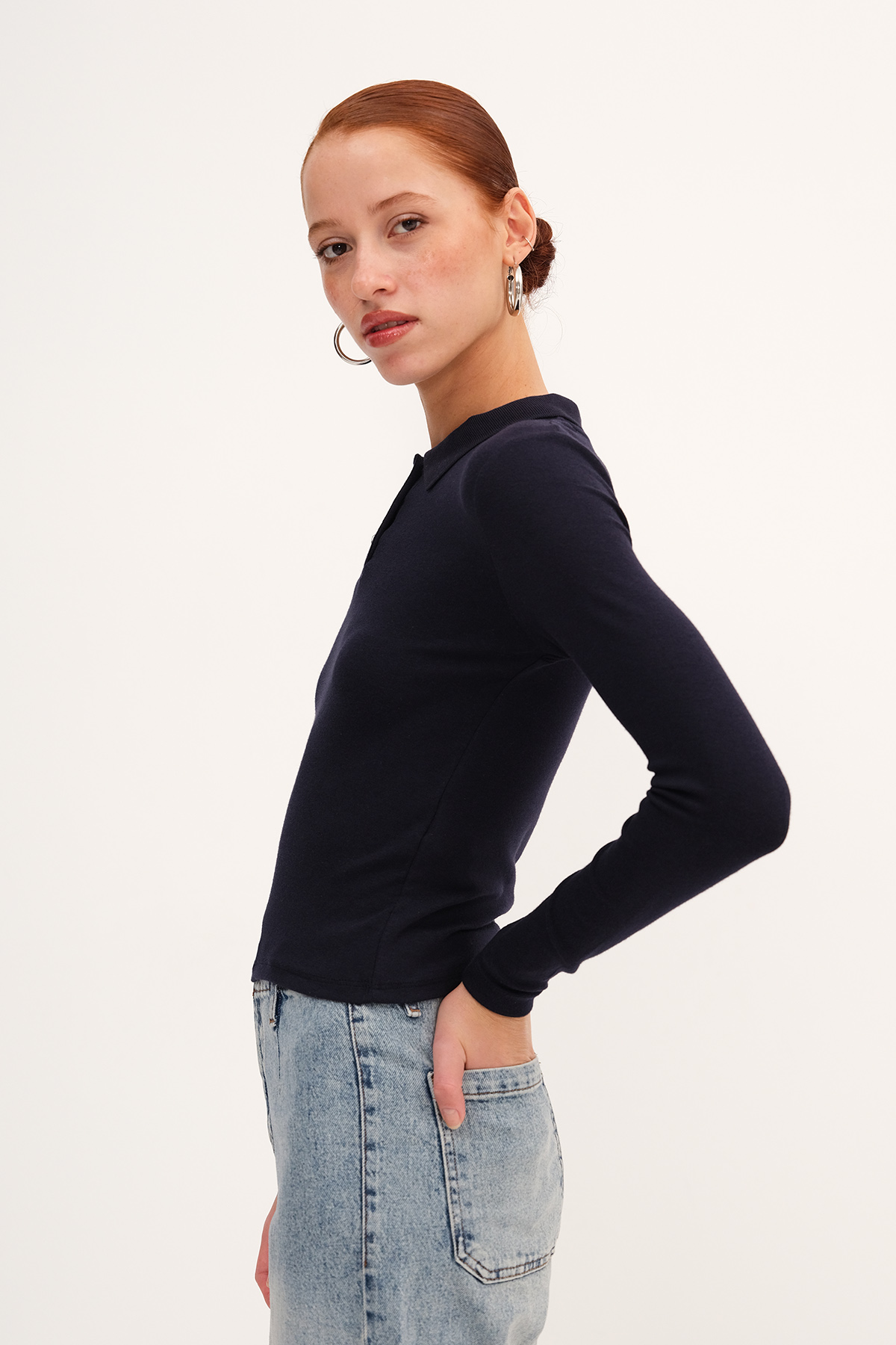 * Düz renk, vücudu saran, uzun kollu bluz,