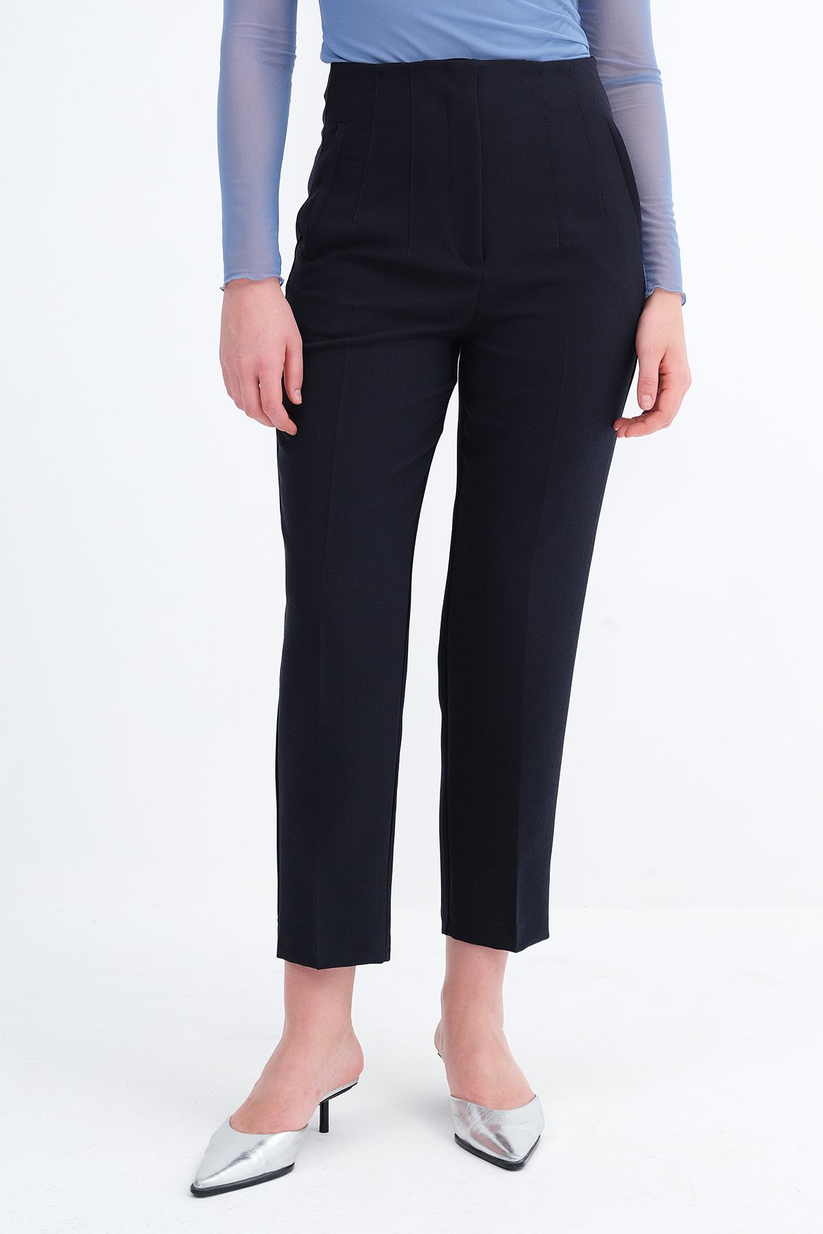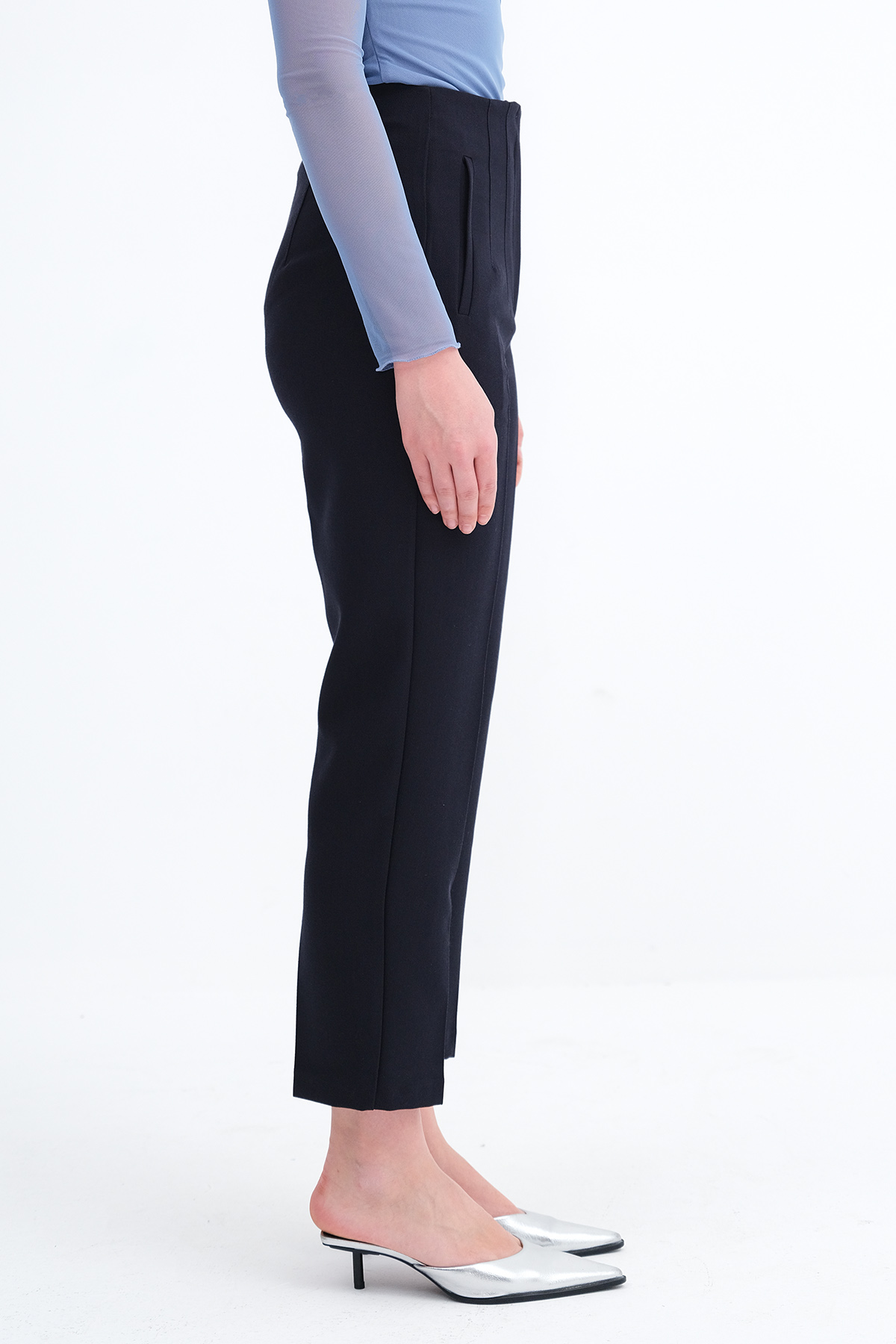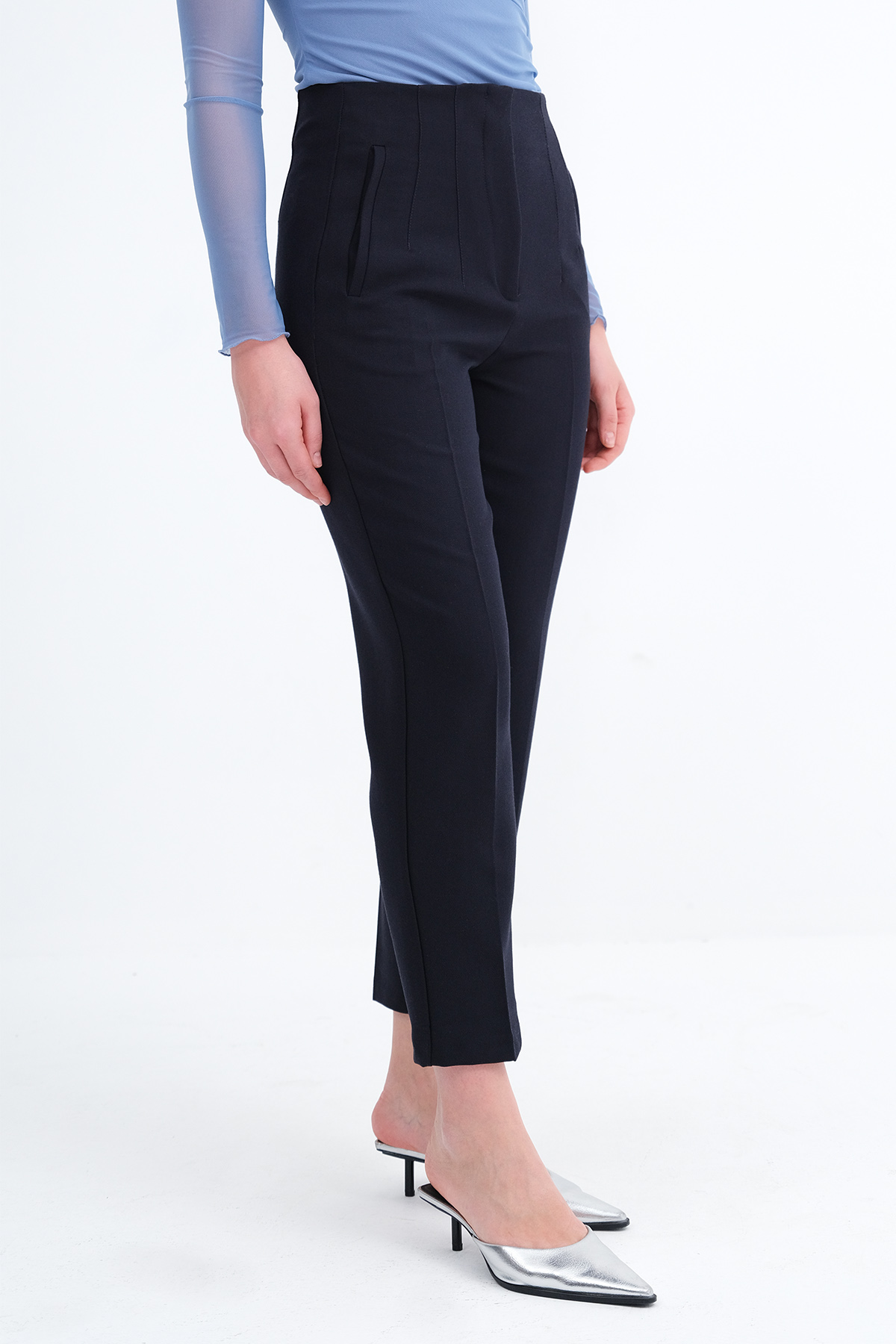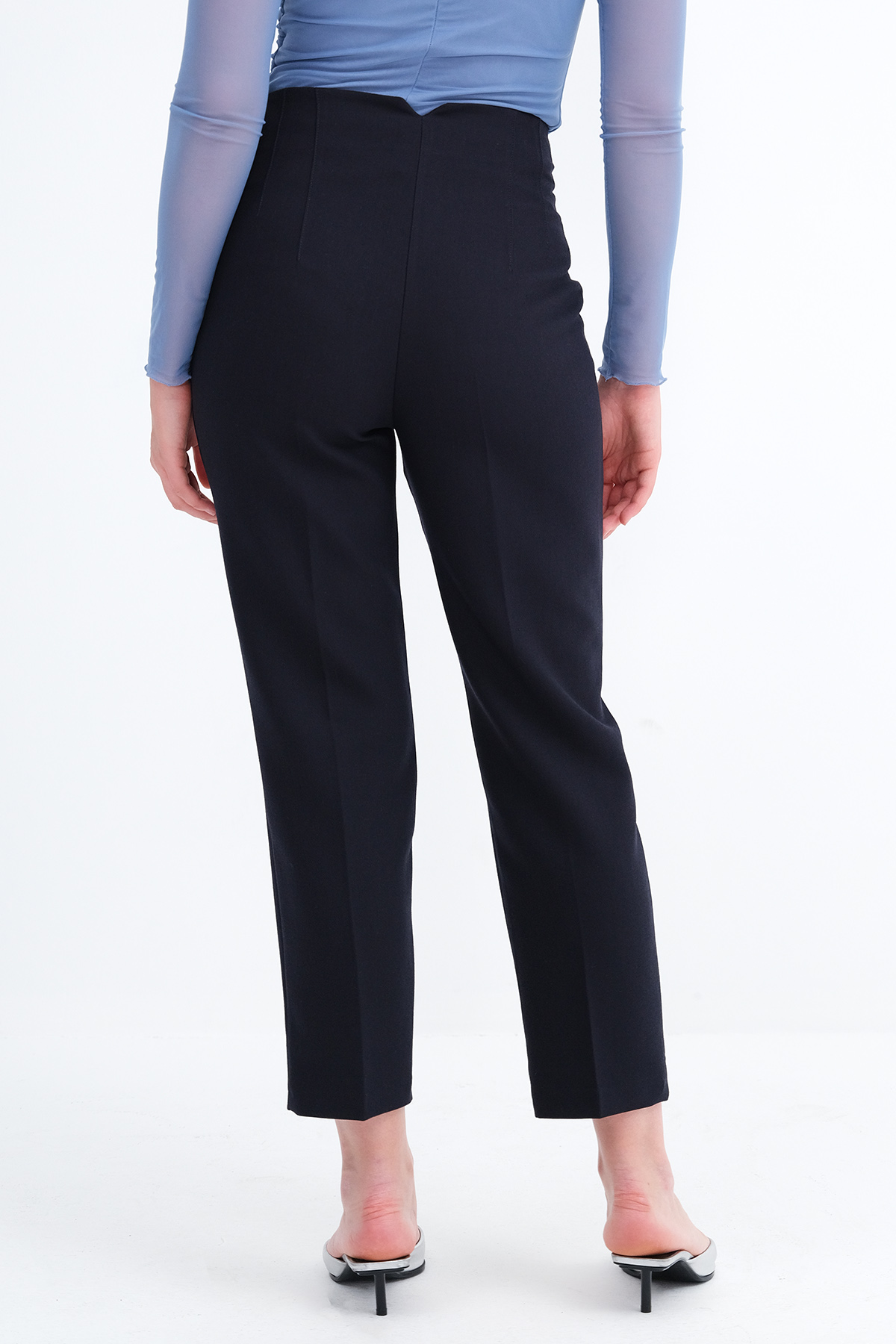 * Yüksek bel, gizli kopçalı, fermuarlı,