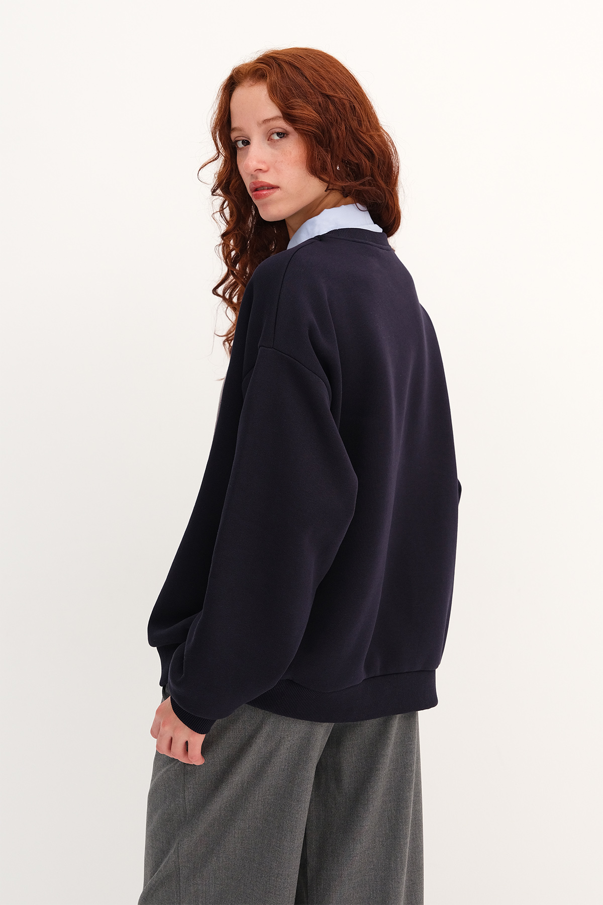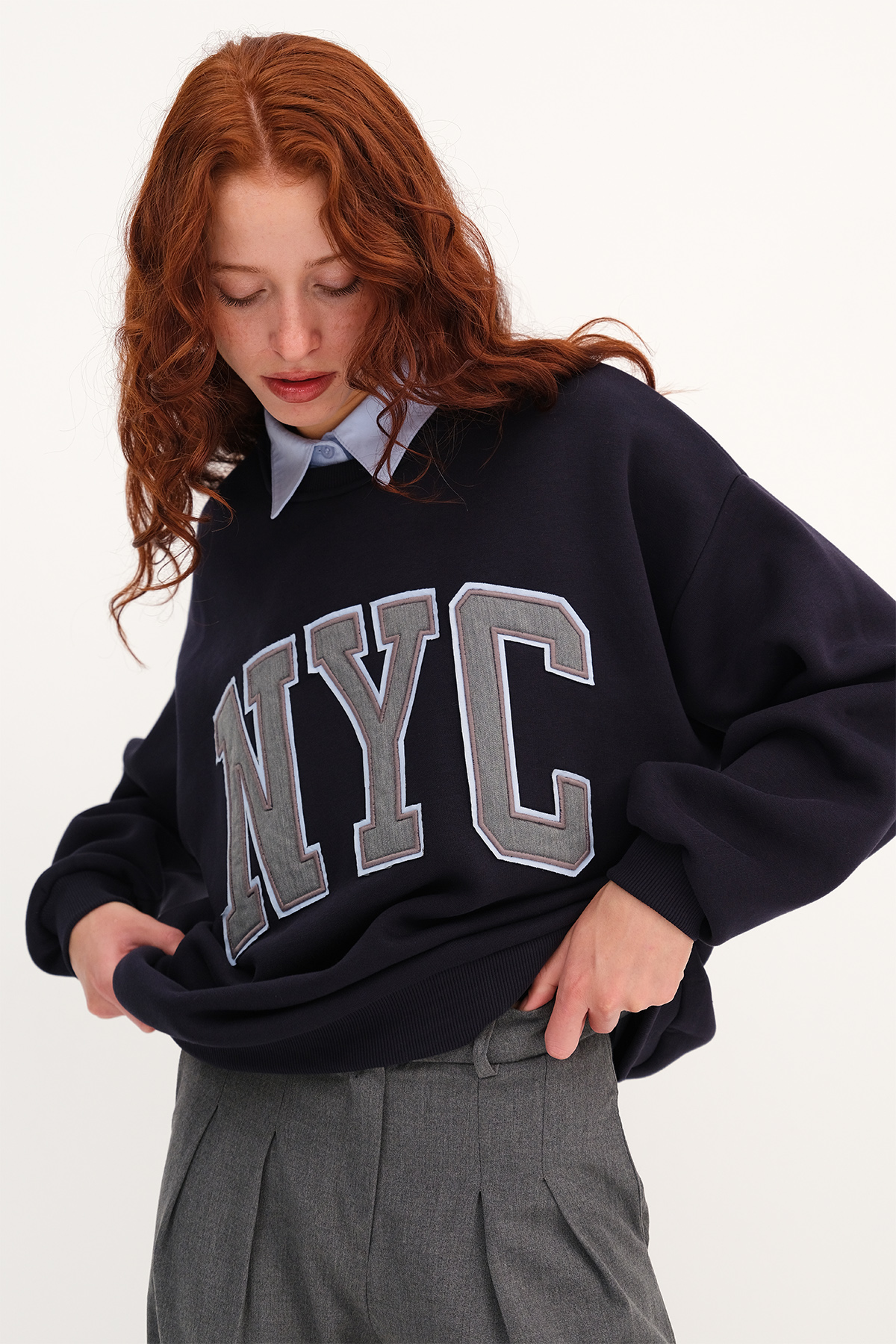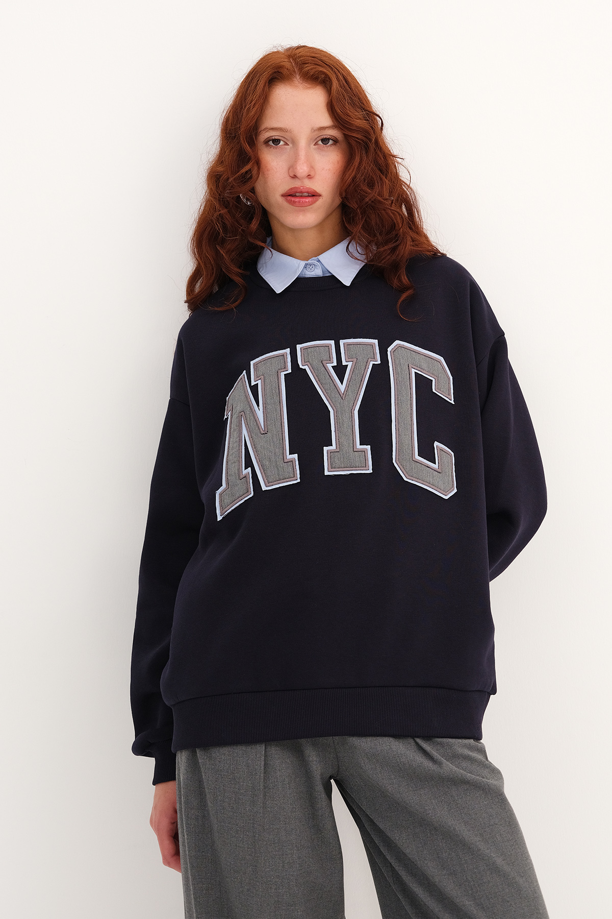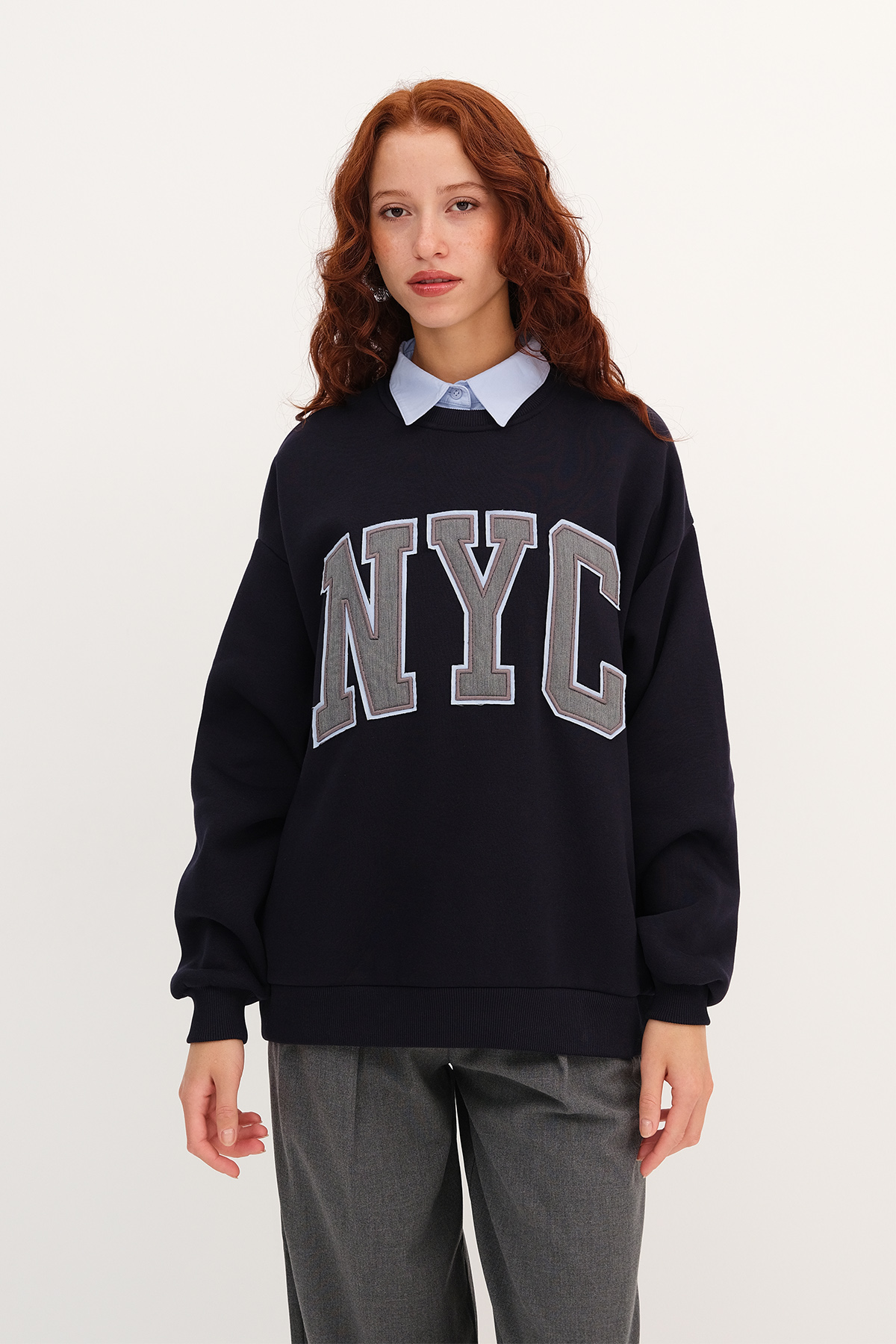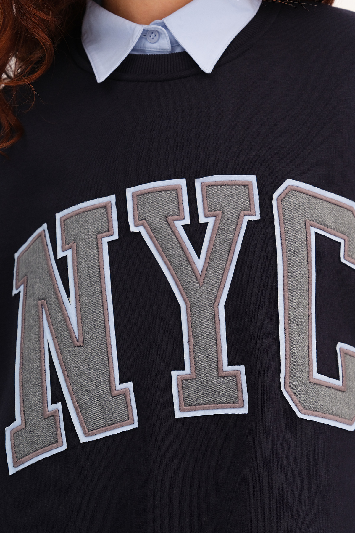 * Gömlek yaka, uzun kollu,* Yakası çıkarılabilir.* NYC nakışlı, rahat kalıp,* Şardonlu sweatshirt,* Ürün içeriği: %100 Pamuk,* Manken üzerindeki ürün 36/S bedendir.* Numune Beden Ölçüleri: Boy: 70 cm Göğüs: 120 cm Kol Boyu: 55 cm (1-3 cm arasında değişiklik gösterebilir)* Ürün çekimlerinde renkler, ışık farklılığından dolayı değişkenlik gösterebilir.