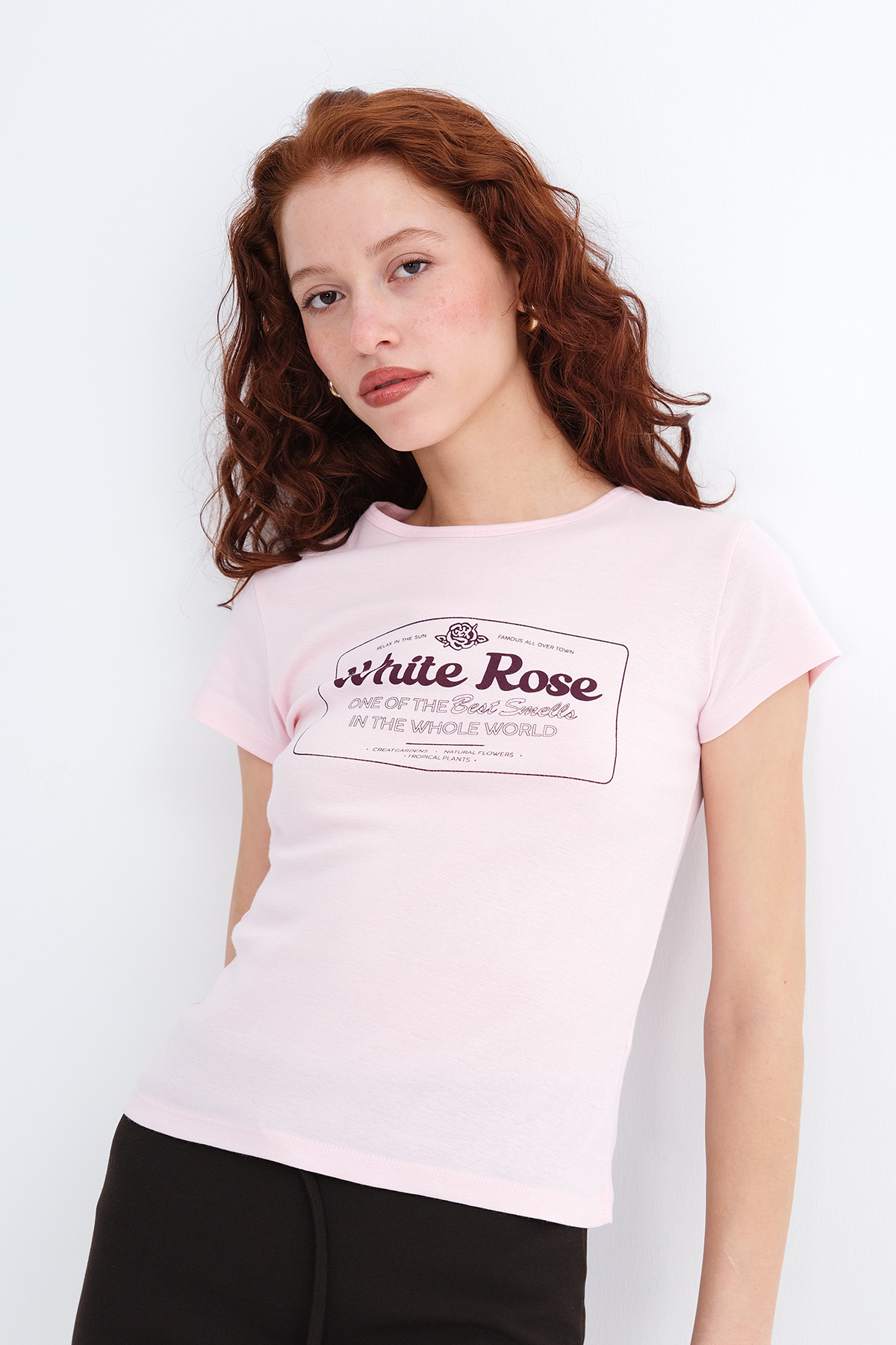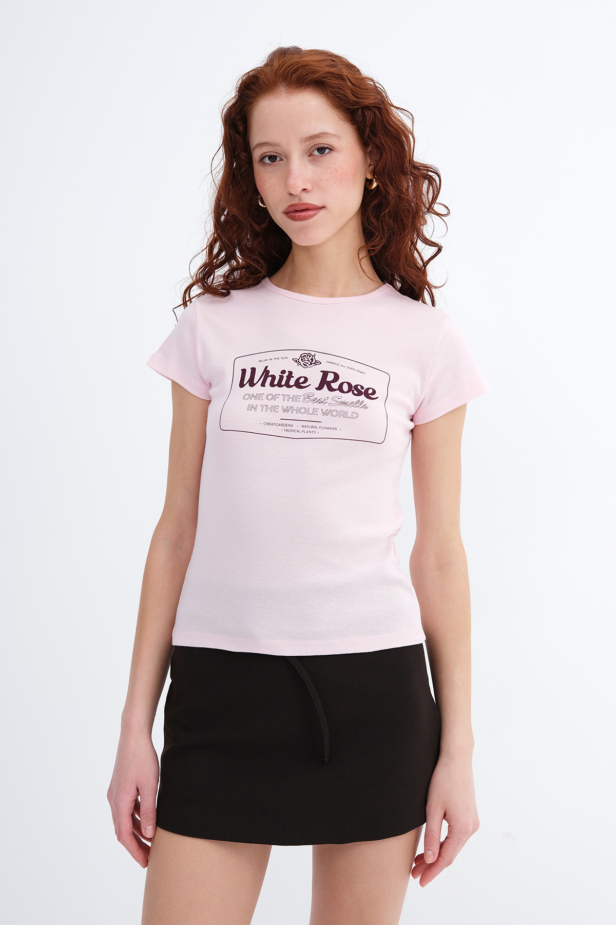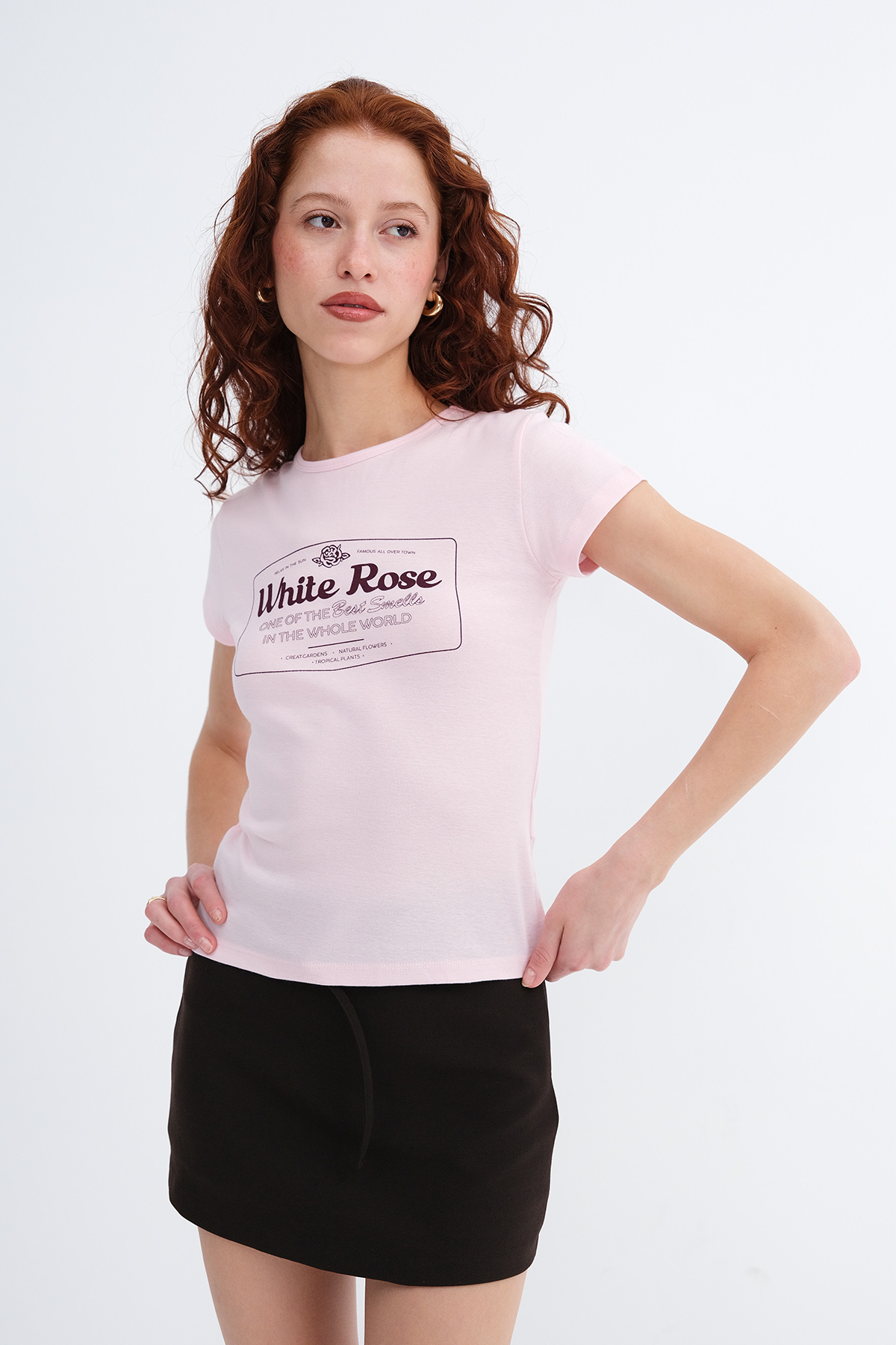 * Baskılı, vücudu saran t-shirt,