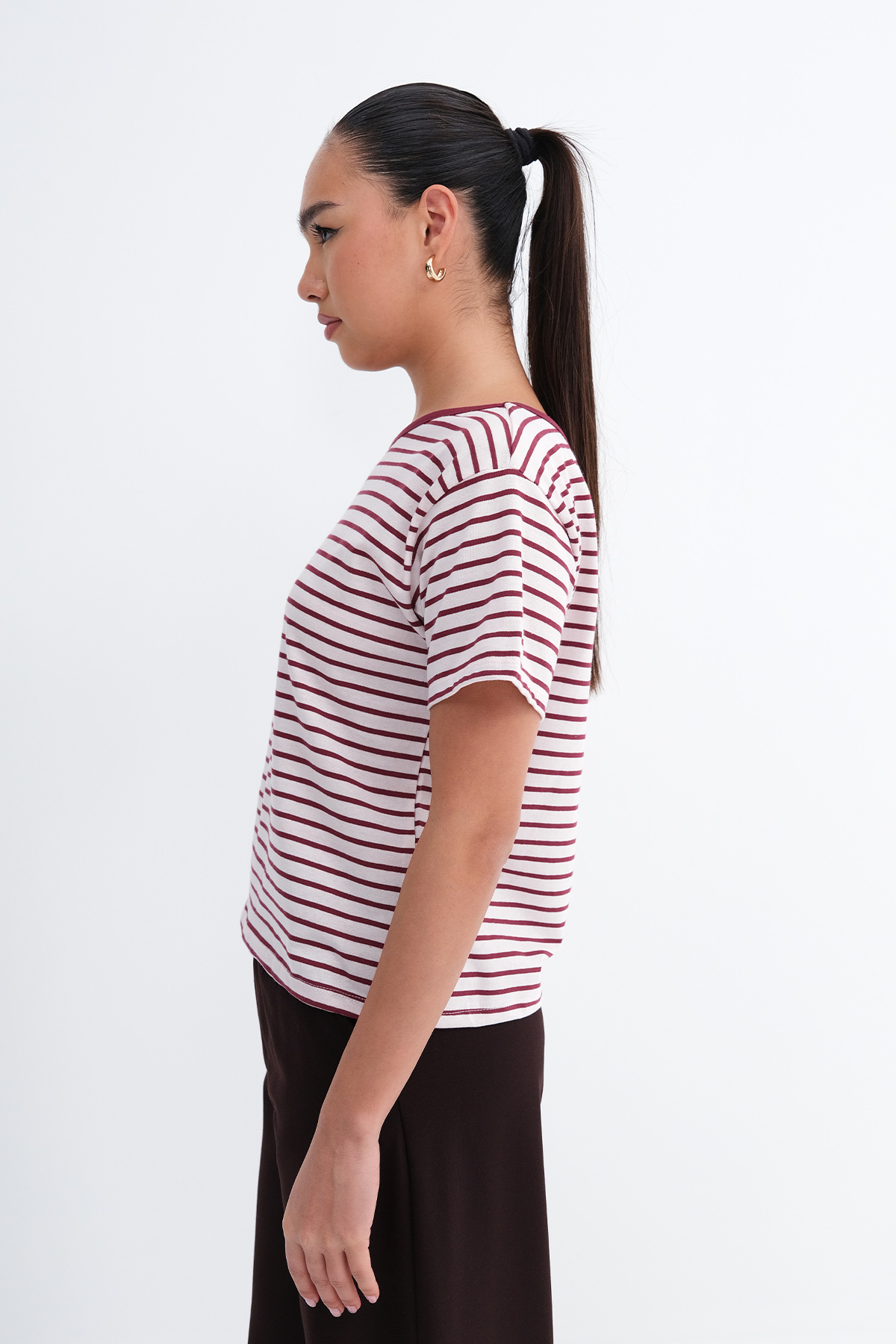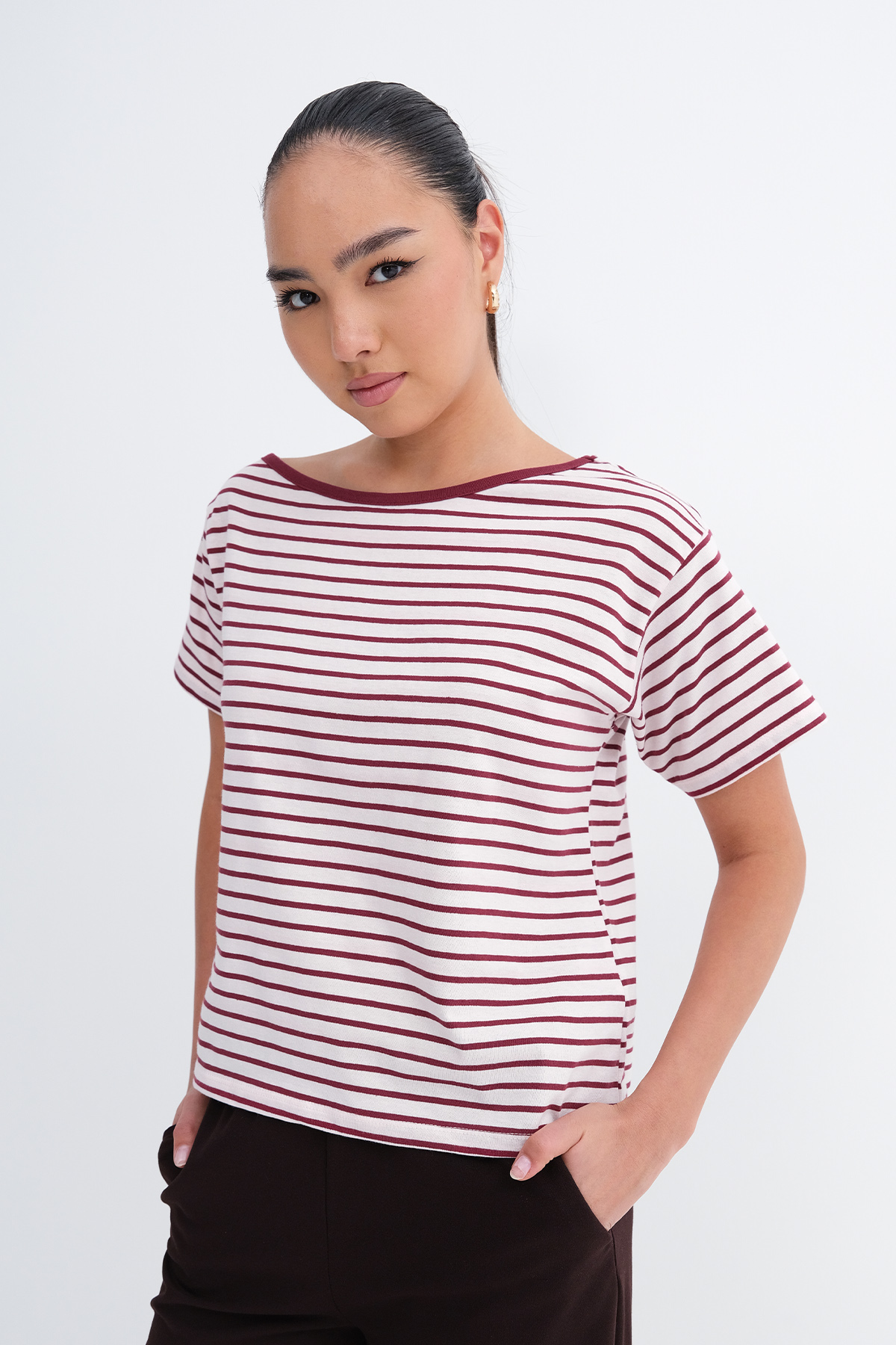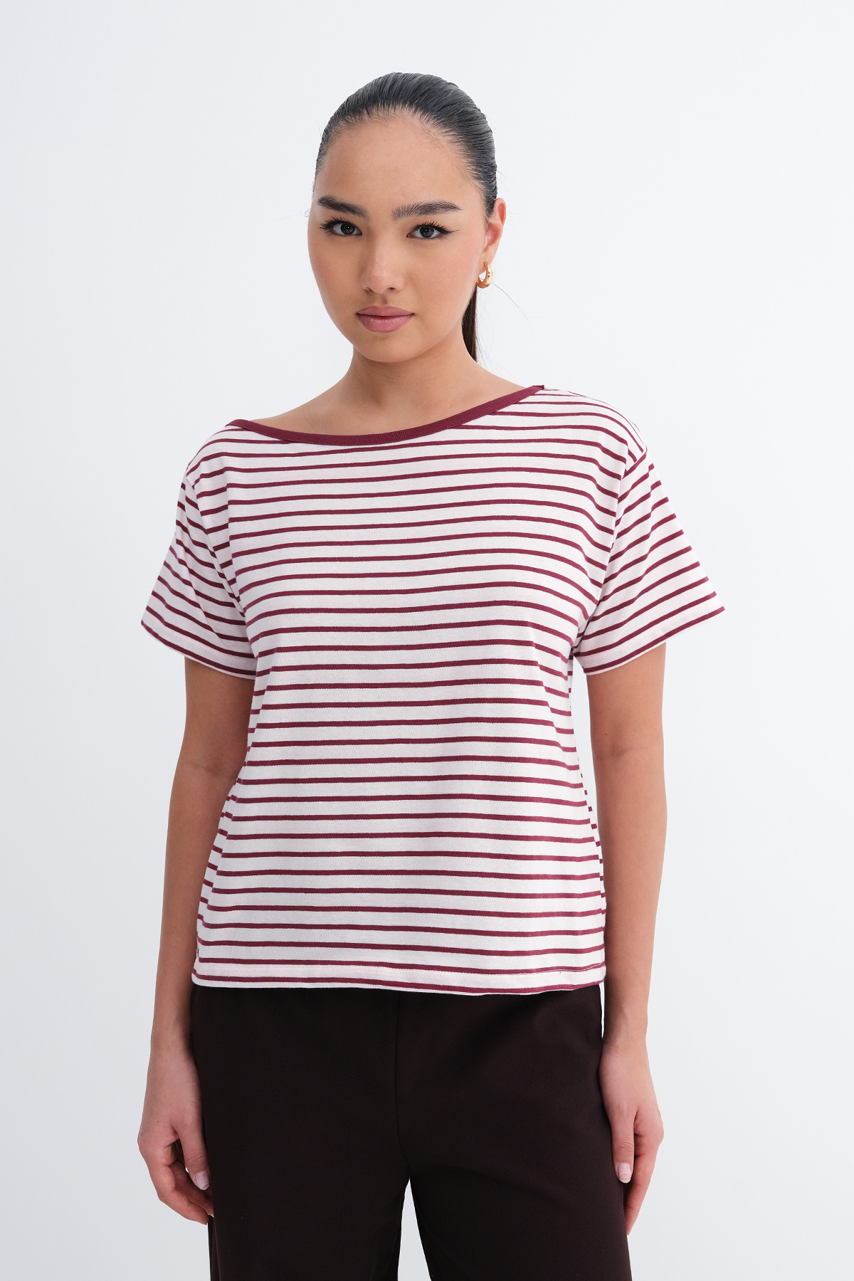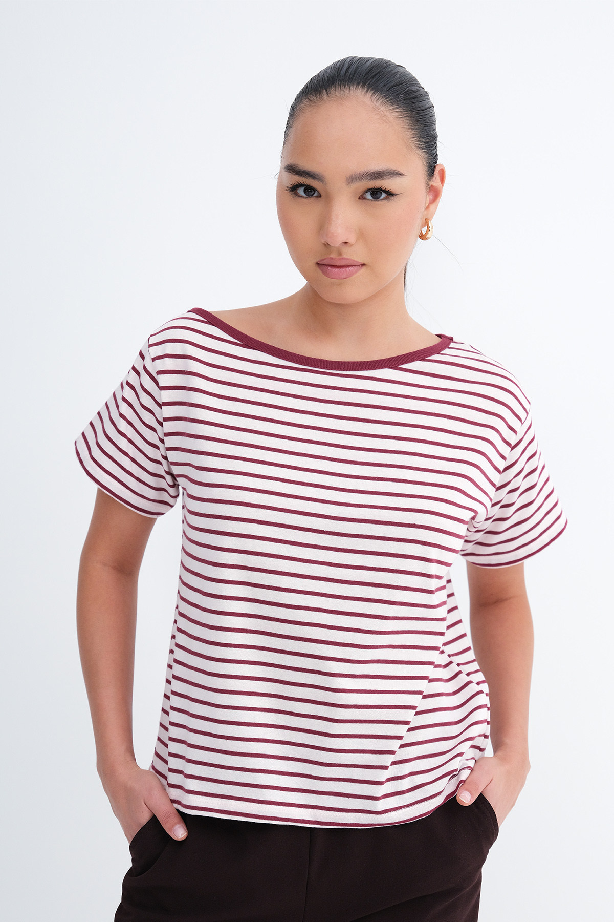 * Rahat kalıp, çizgili t-shirt,